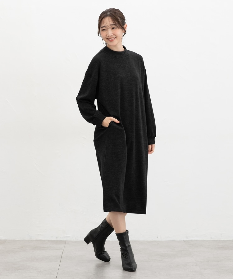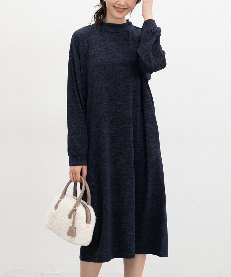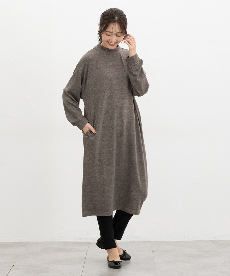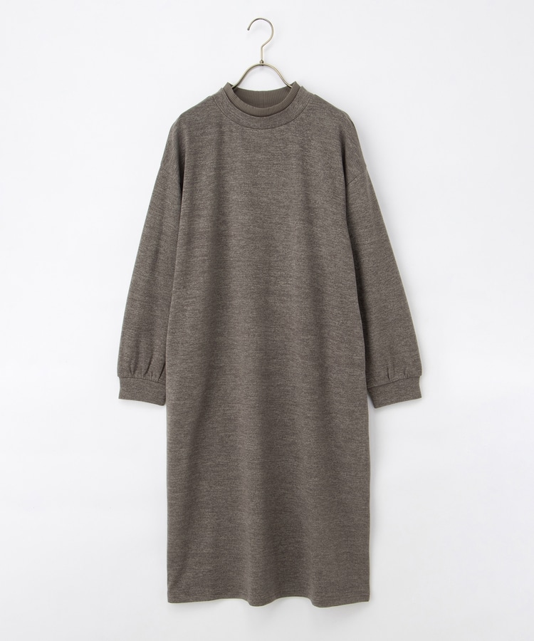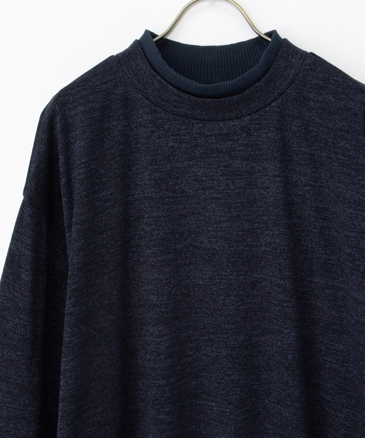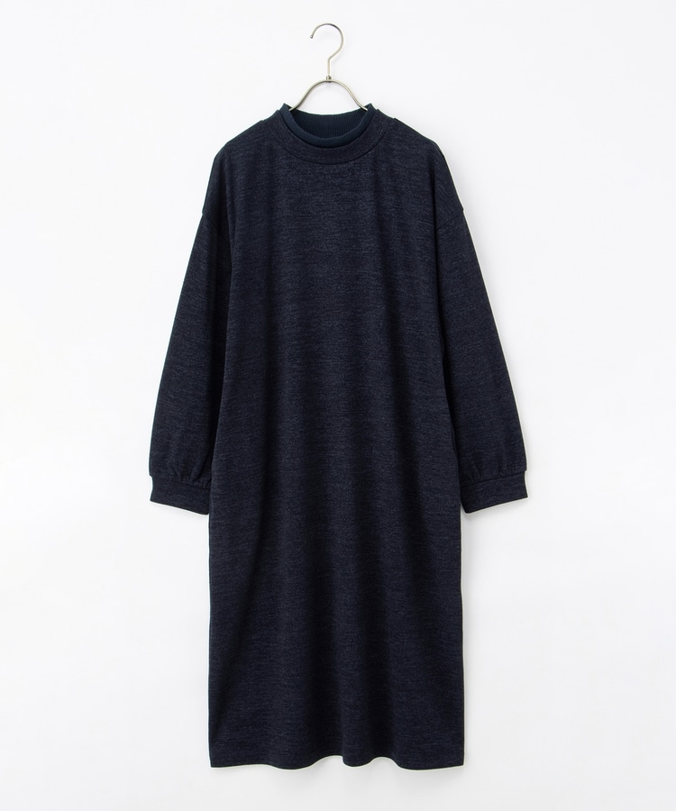 レイヤード風のハイネックがさりげなくお洒落なシンプルデザイン。