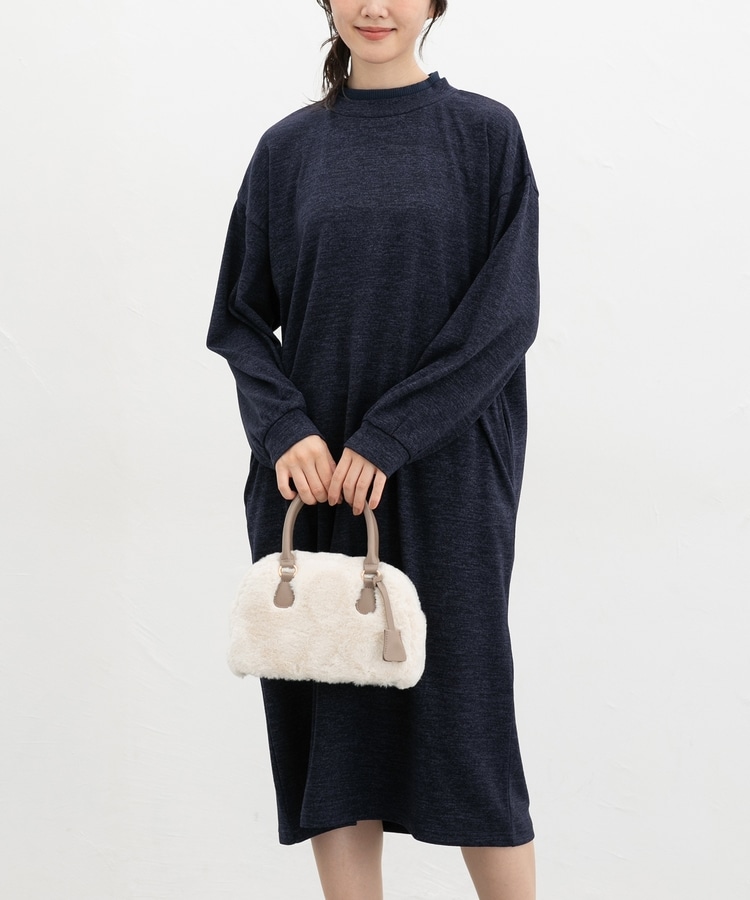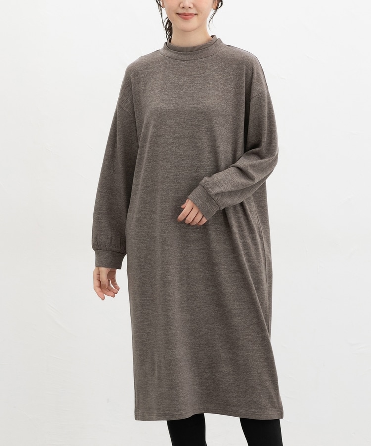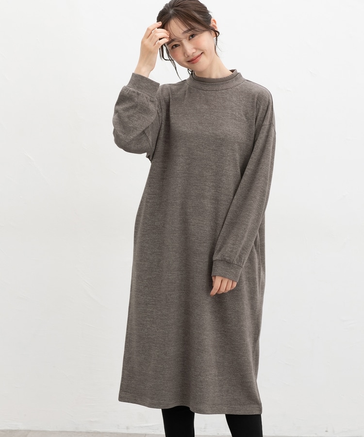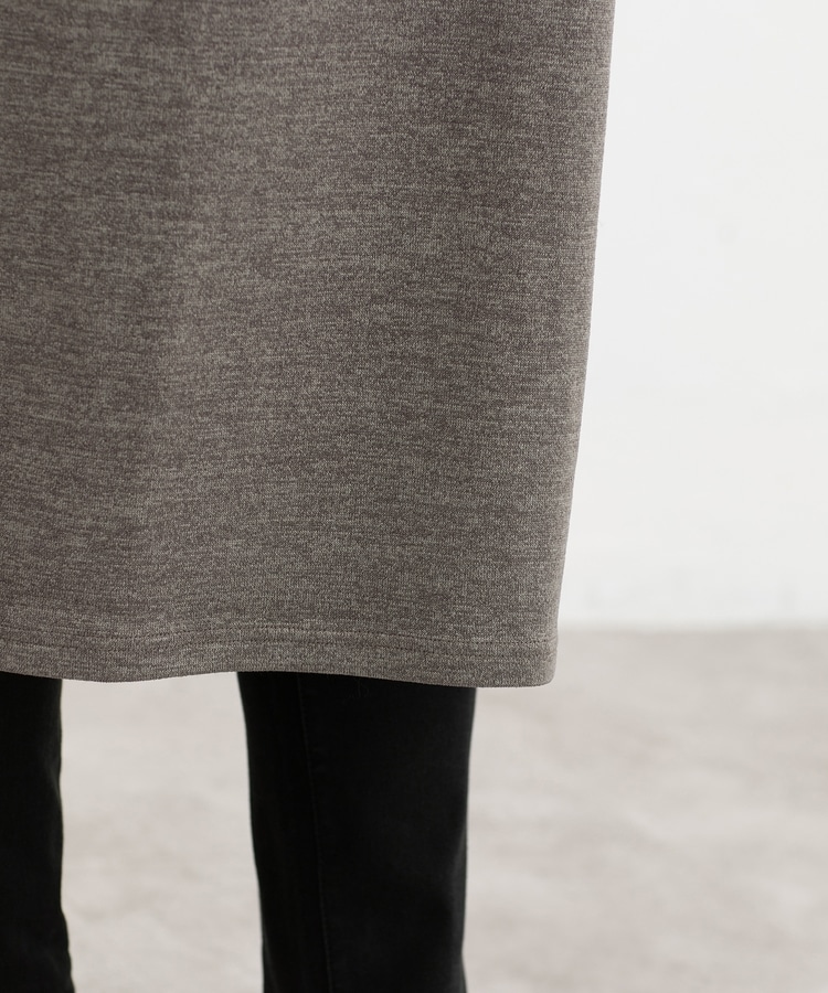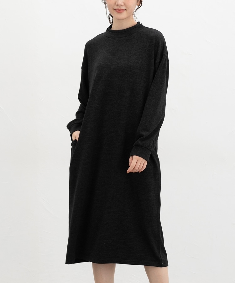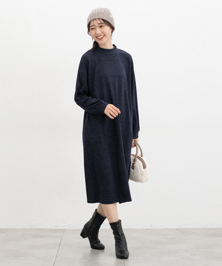 レイヤード風のハイネックがさりげなくお洒落なシンプルデザイン。