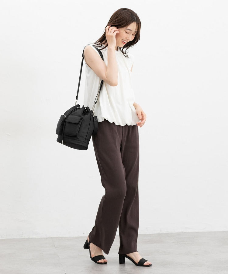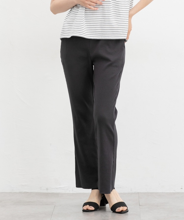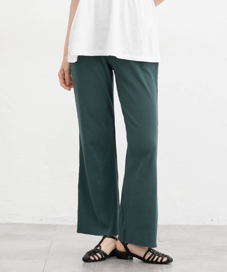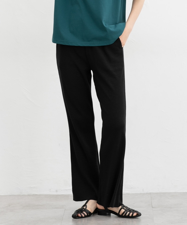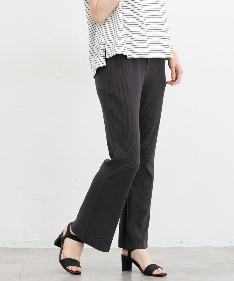 伸縮性のある綿混リブ素材とウエストゴムで、ストレスフリーなはき心地。