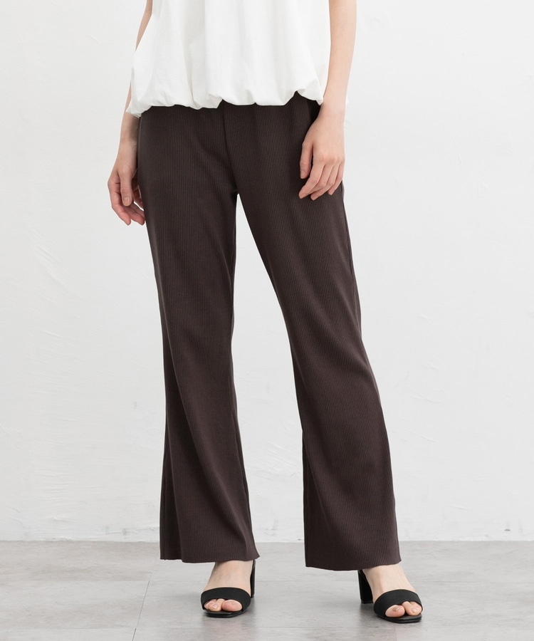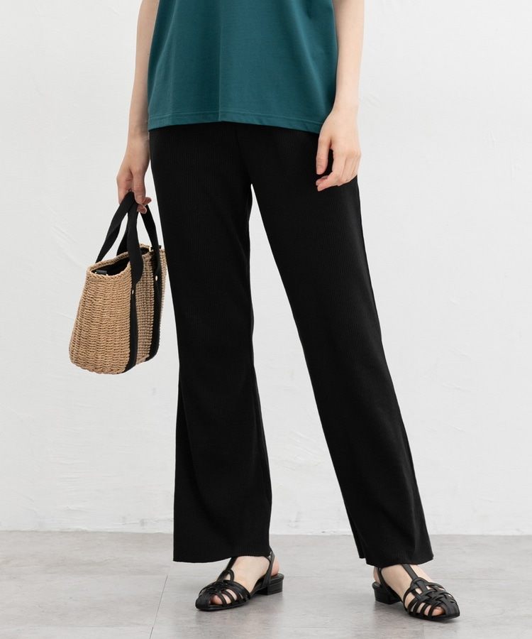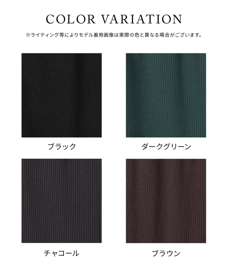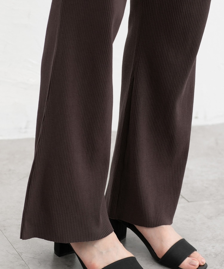 縦の編み目とほんのり広がるフレアシルエットがスッキリ美脚にみせてくれるシンプルデザイン。