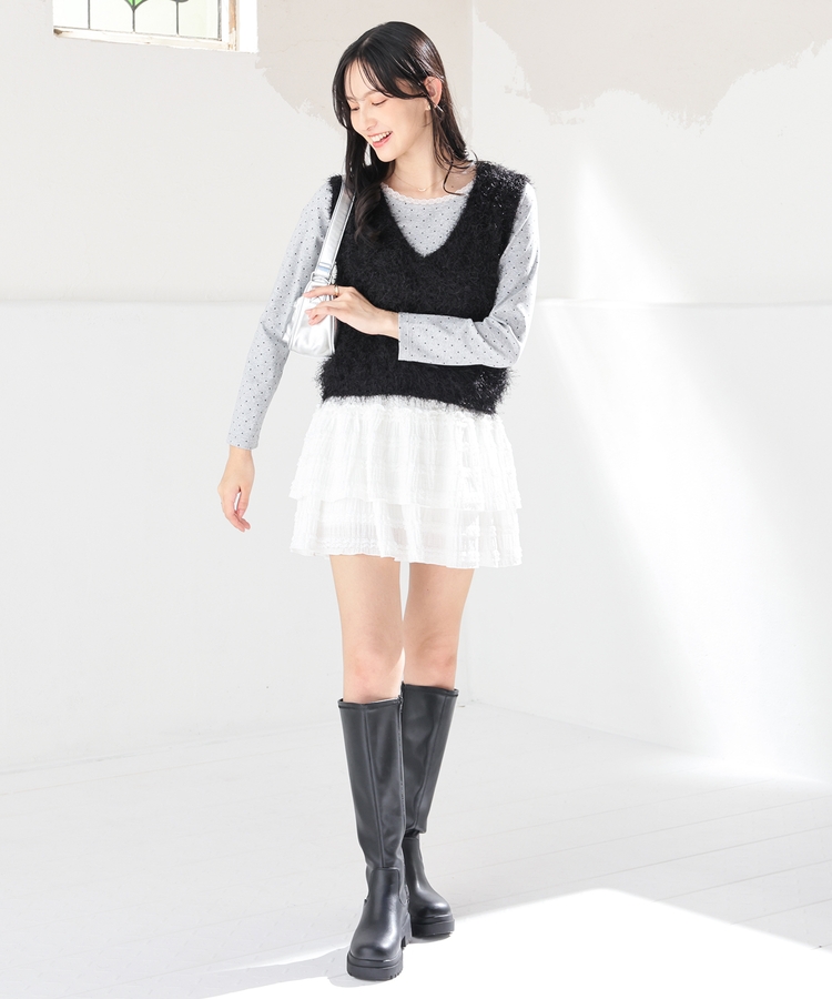 ミニスカート合わせのフェミニンスタイルはもちろん、デニムと合わせてカジュアルダウンさせるのもおすすめ。