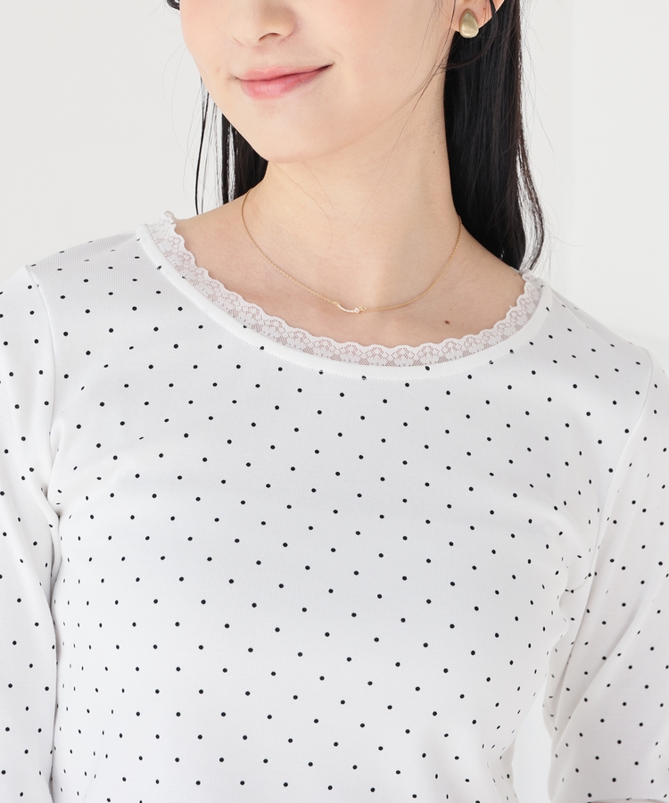 衿ぐりの繊細なレースがフェミニンなアクセント。