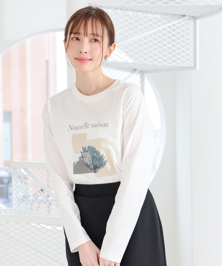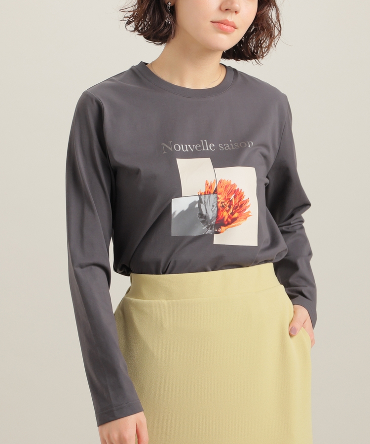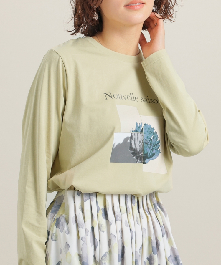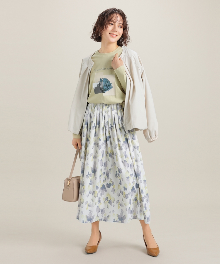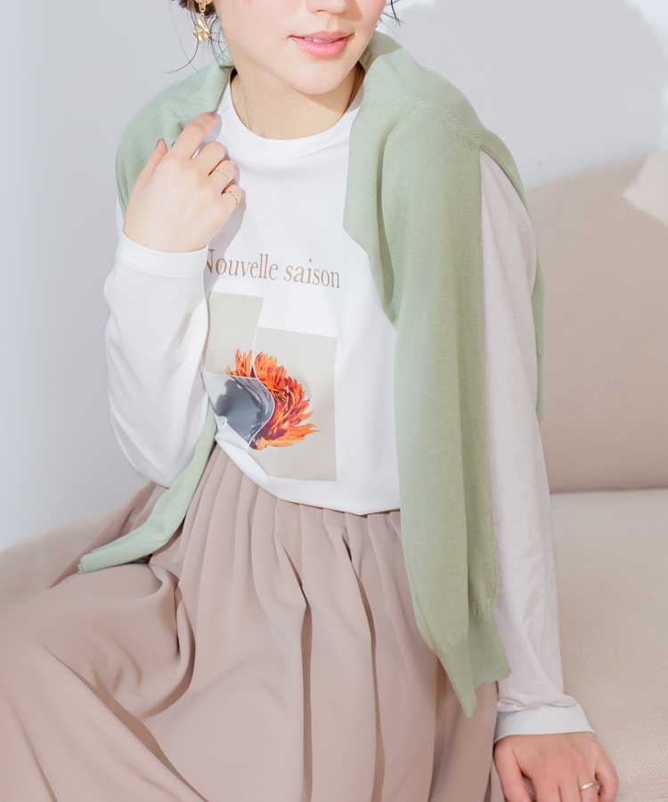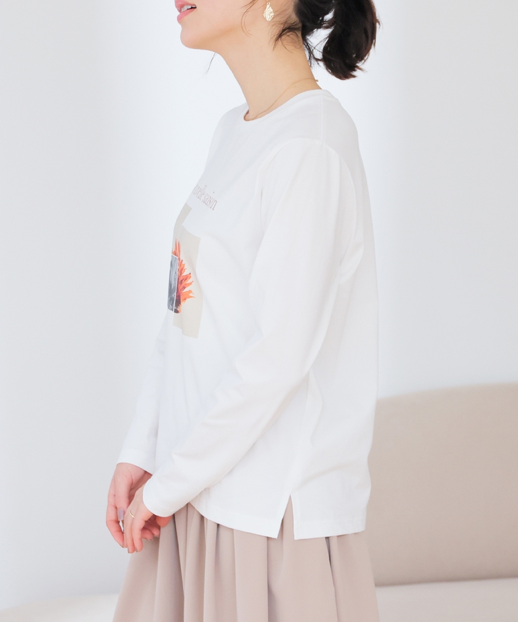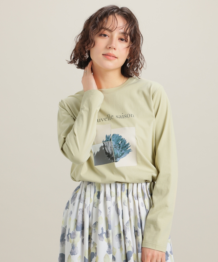 こなれ感のあるアート風フォトプリントがお洒落な、1枚で着映えするデザイン。