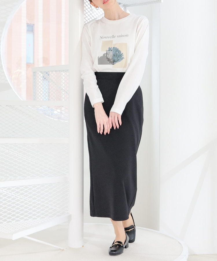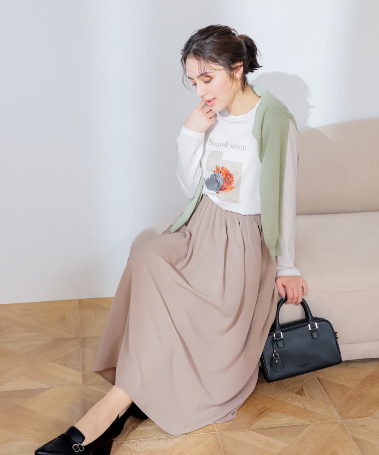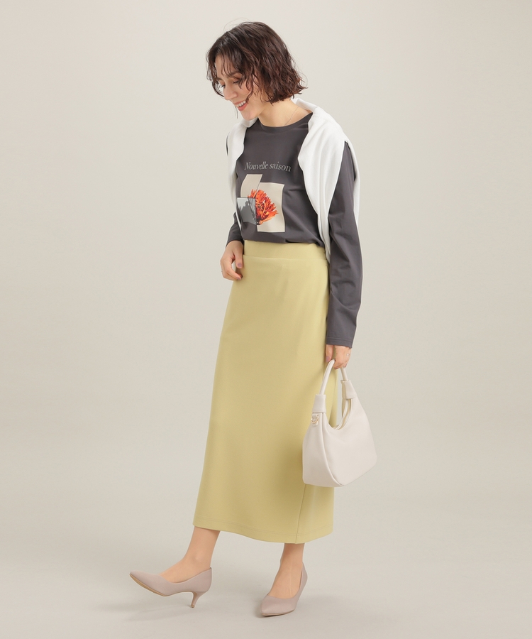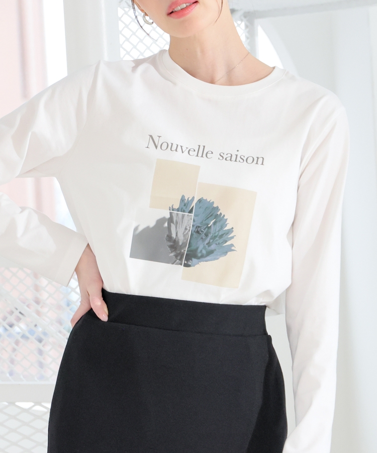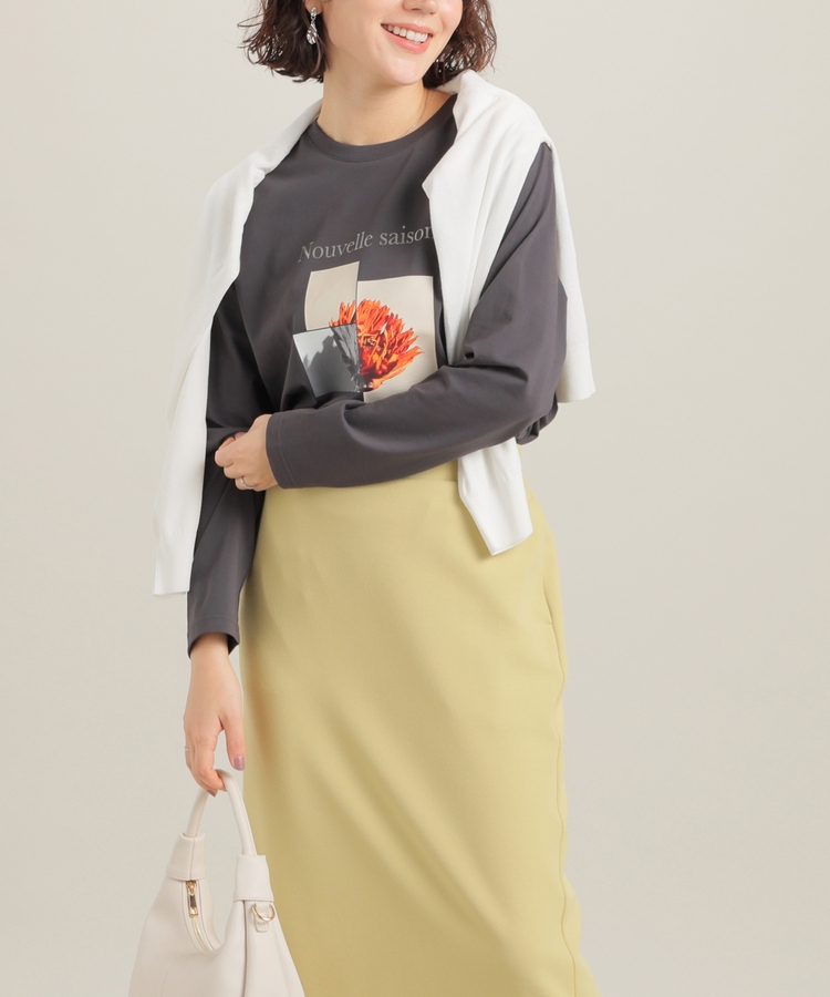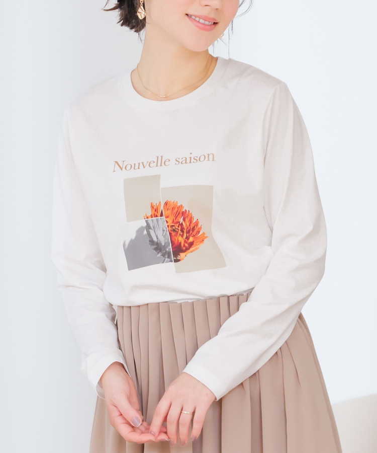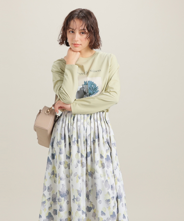 こなれ感のあるアート風フォトプリントがお洒落な、1枚で着映えするデザイン。