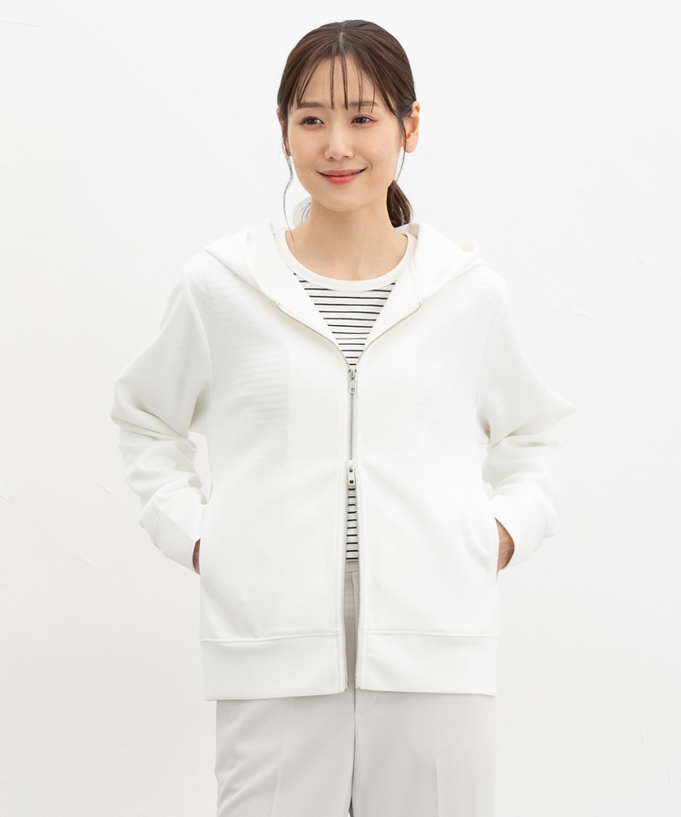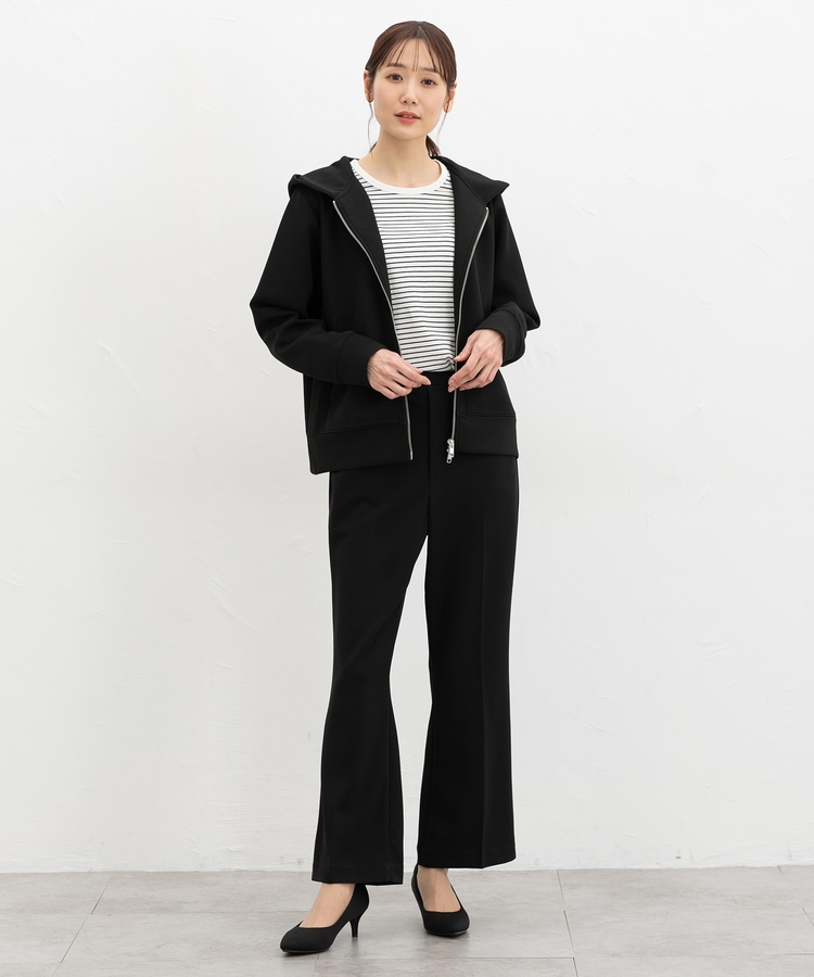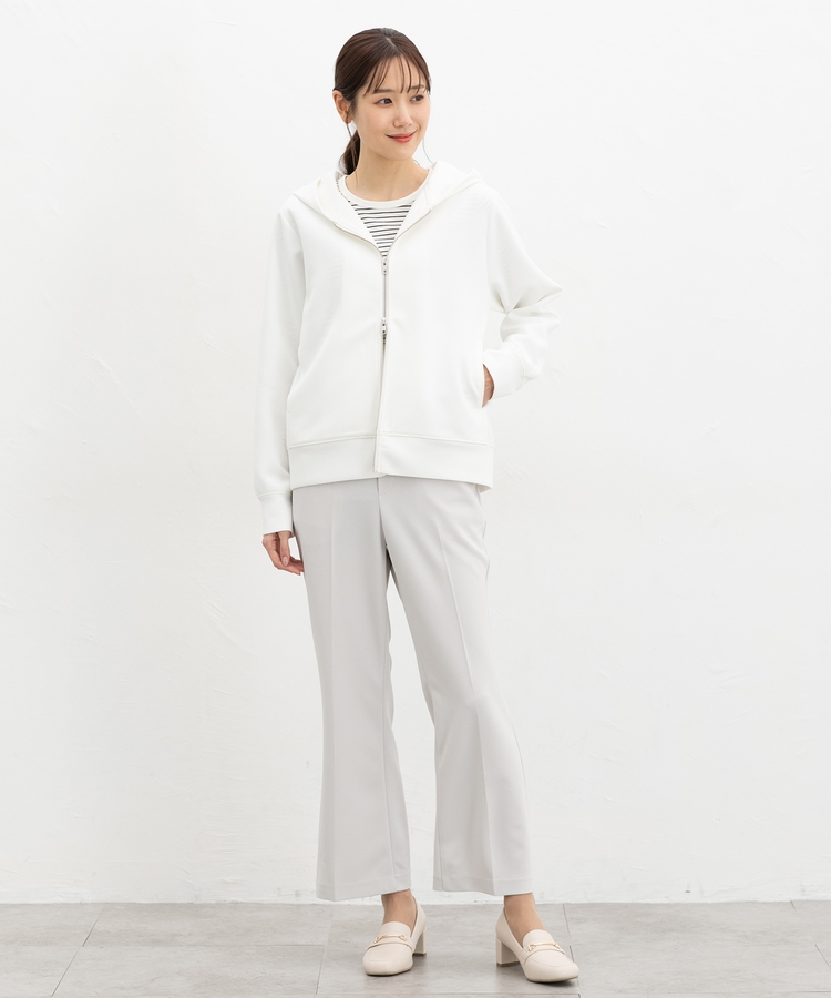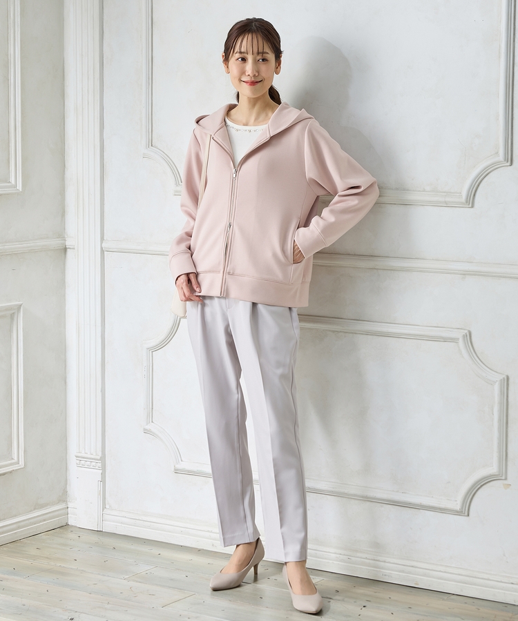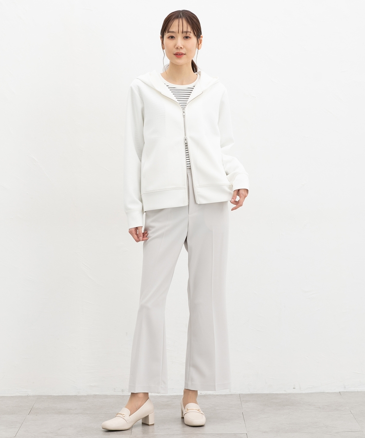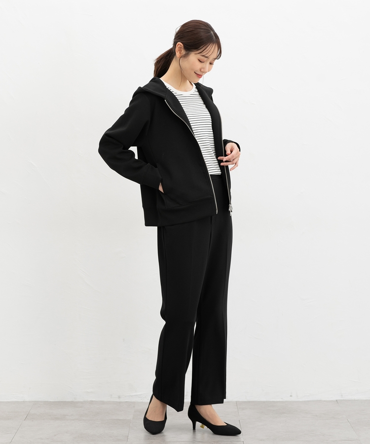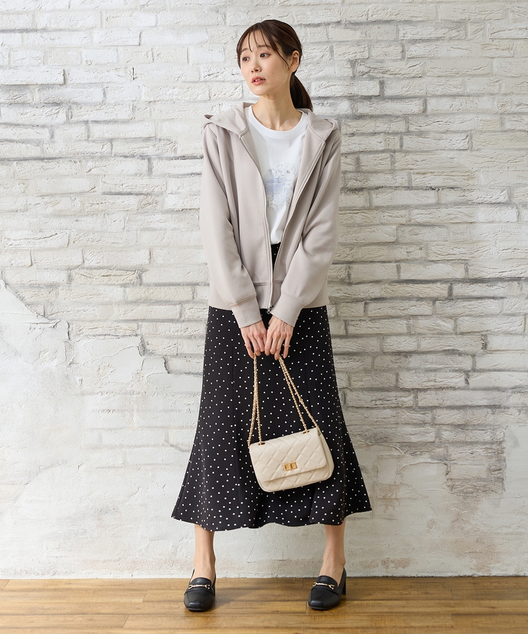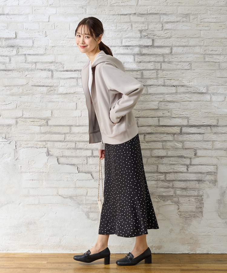 ファスナーの開閉でシルエットアレンジが楽しめ、大人な抜け感スタイルに。