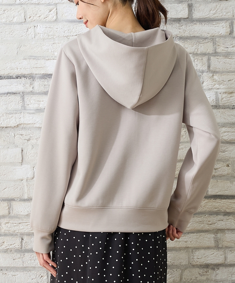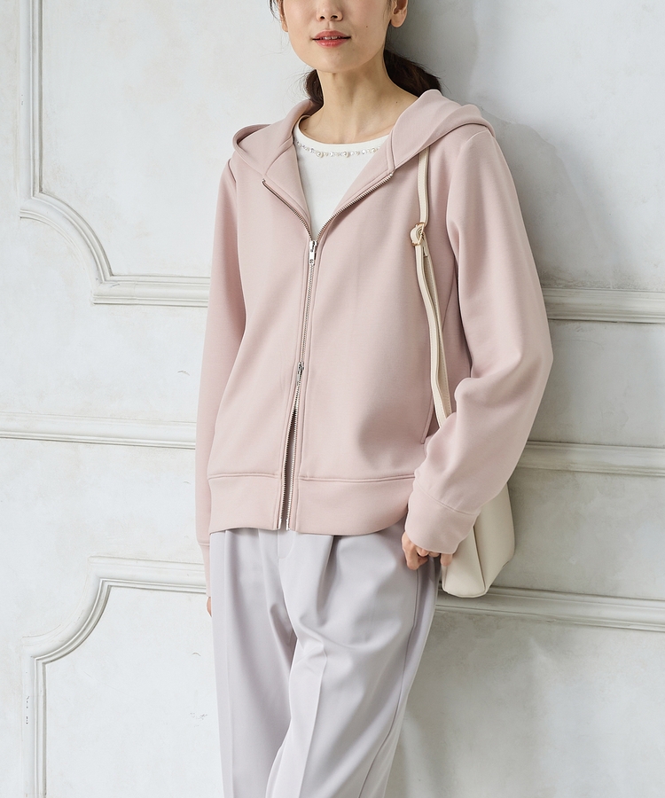 ストレッチの利いた、両面が滑らかなレーヨン混のきれいめスウェット素材。