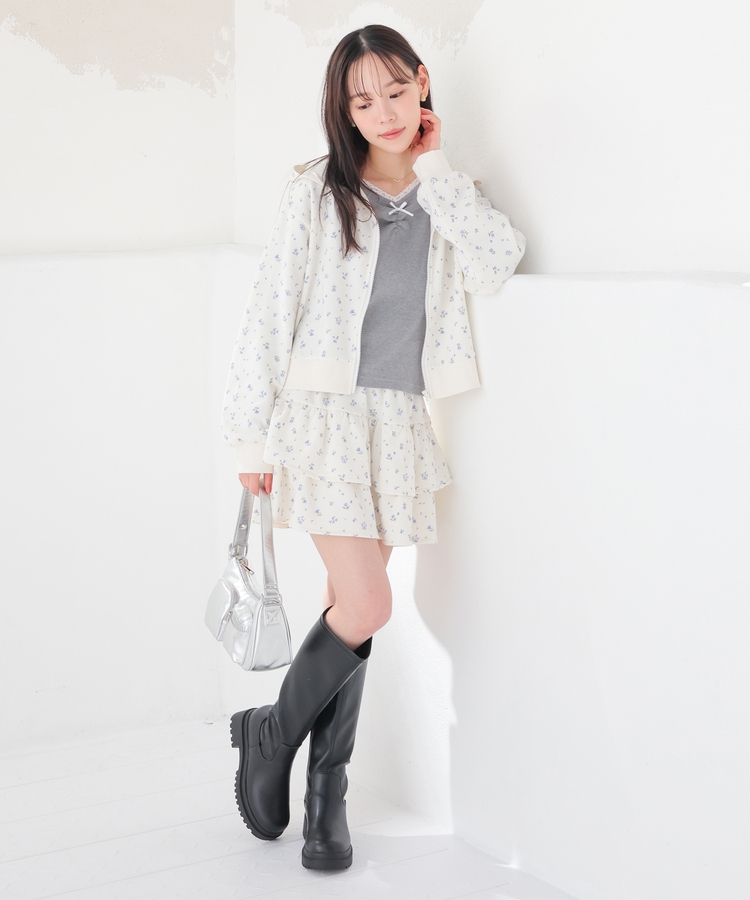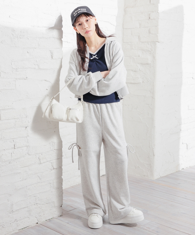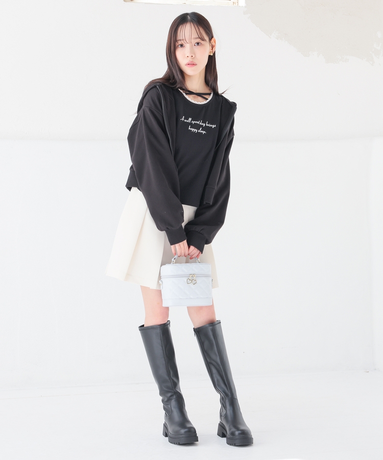 ミニ丈のボトムスと合わせると、韓国風カジュアルコーデに。