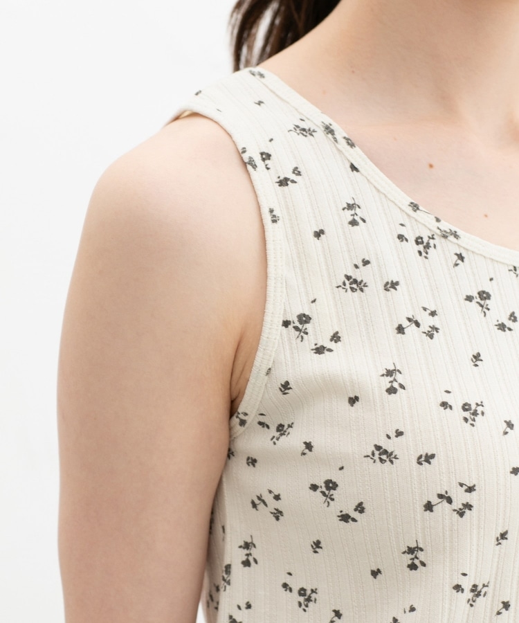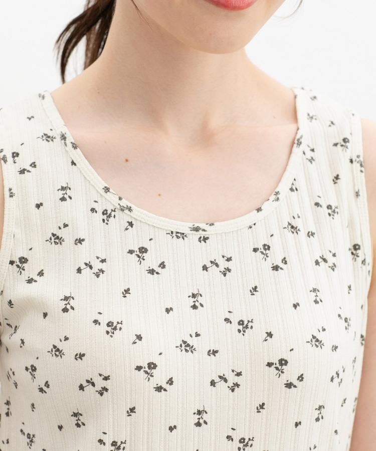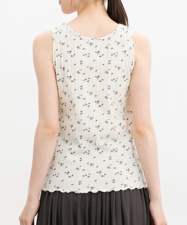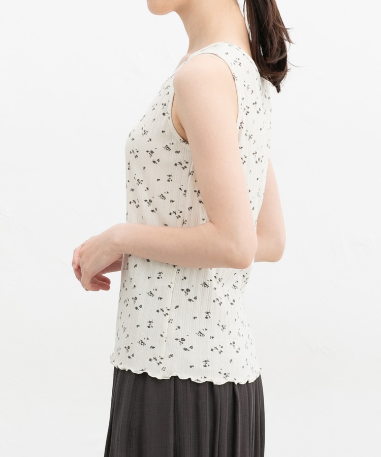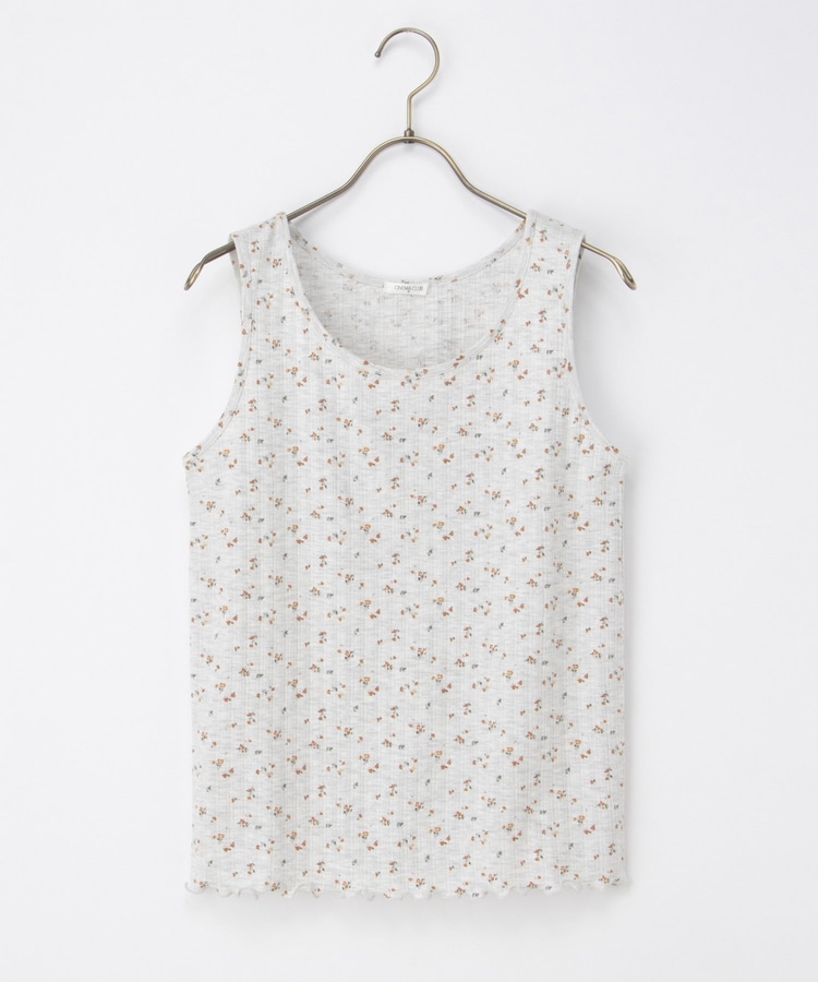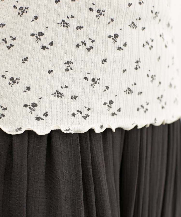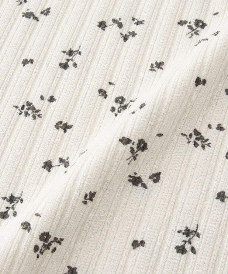 おしゃれなパターンメッシュの編柄に総花柄をプリントした大人可愛いデザイン。