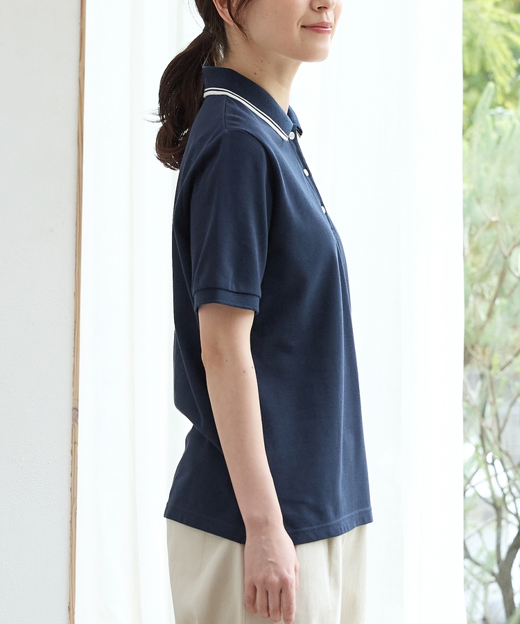 ベーシックなシンプルデザインに衿のラインがアクセント。