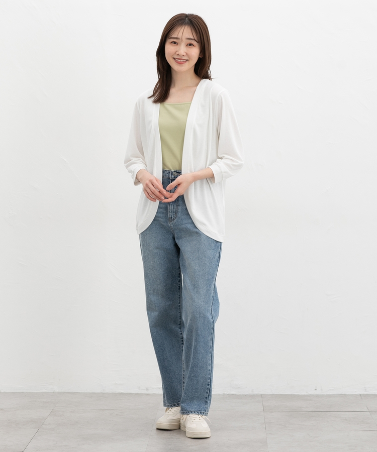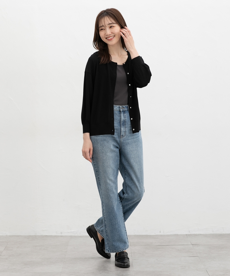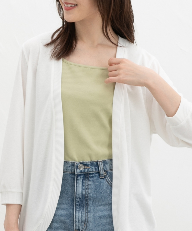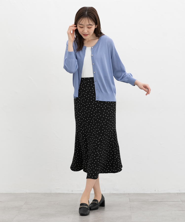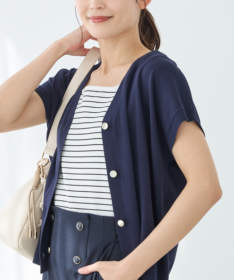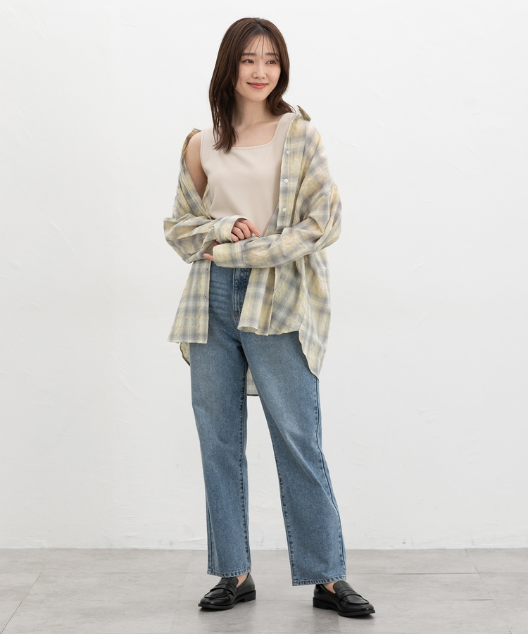 カーディガンやシャツなどとのレイヤードスタイルに大活躍。