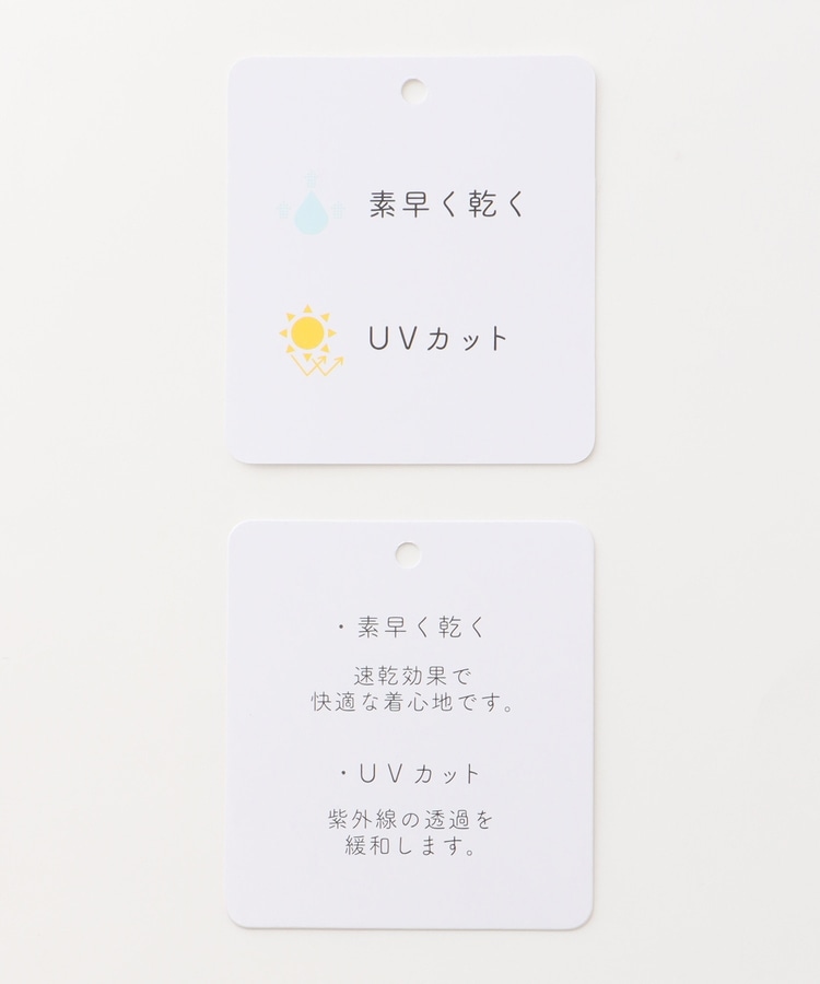 素早く乾く『速乾ドライ』、紫外線対策ができる『UVカット』の機能と、便利な両サイドポケット付き。