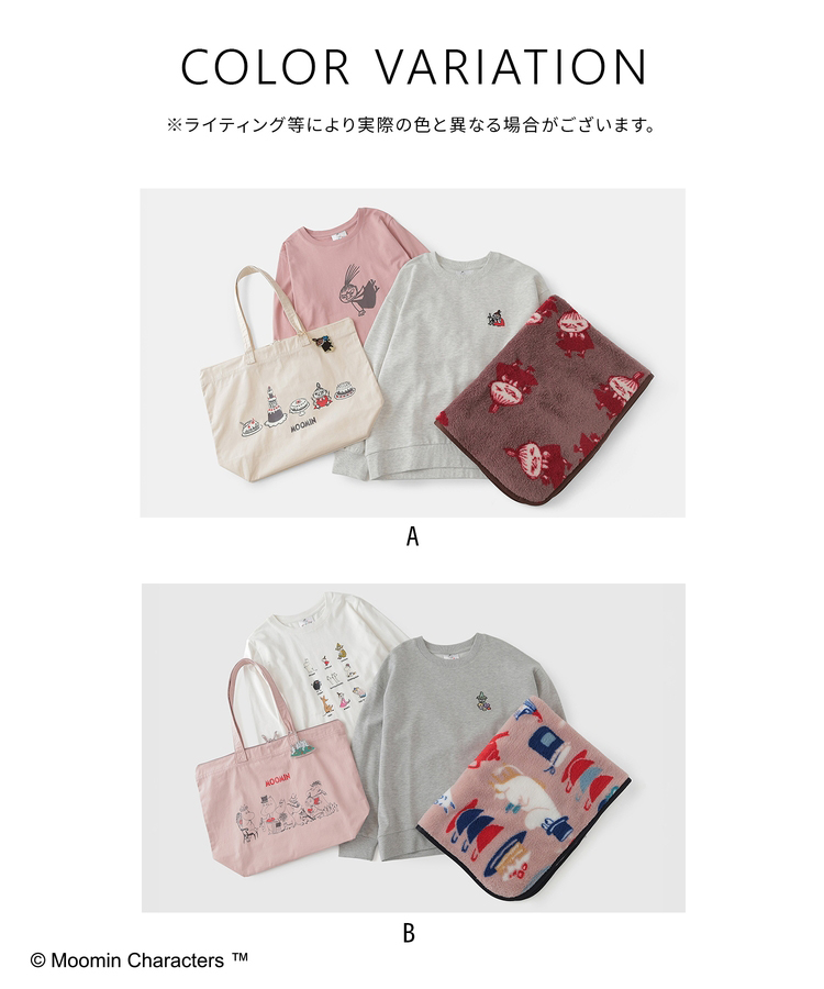 ●品質/[長袖Tシャツ] 表地 綿 100%・別布 綿 95%・ポリウレタン 5% [裏毛トレーナー] 表地 綿 97%・レーヨン 3%・別布 綿 92%・レーヨン 5%・ポリウレタン 3% [ブランケット] 表地 ポリエステル 100%・別布 ポリエステル 100% [トートバッグ] 表地 綿 100%
