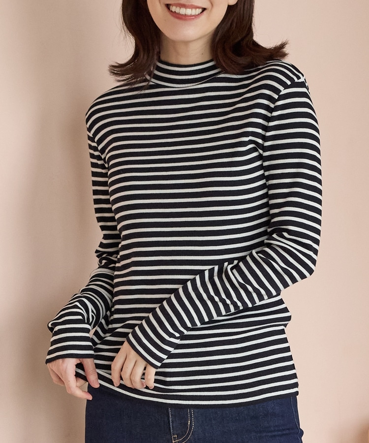リブの縦目がすっきり見せを叶えるおしゃれなデザイン。