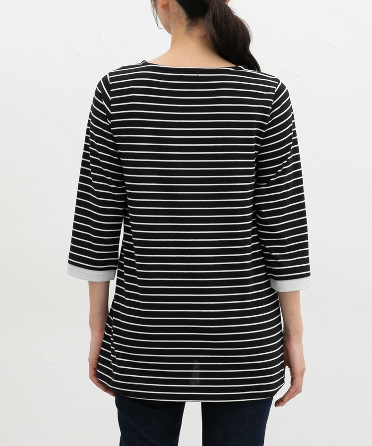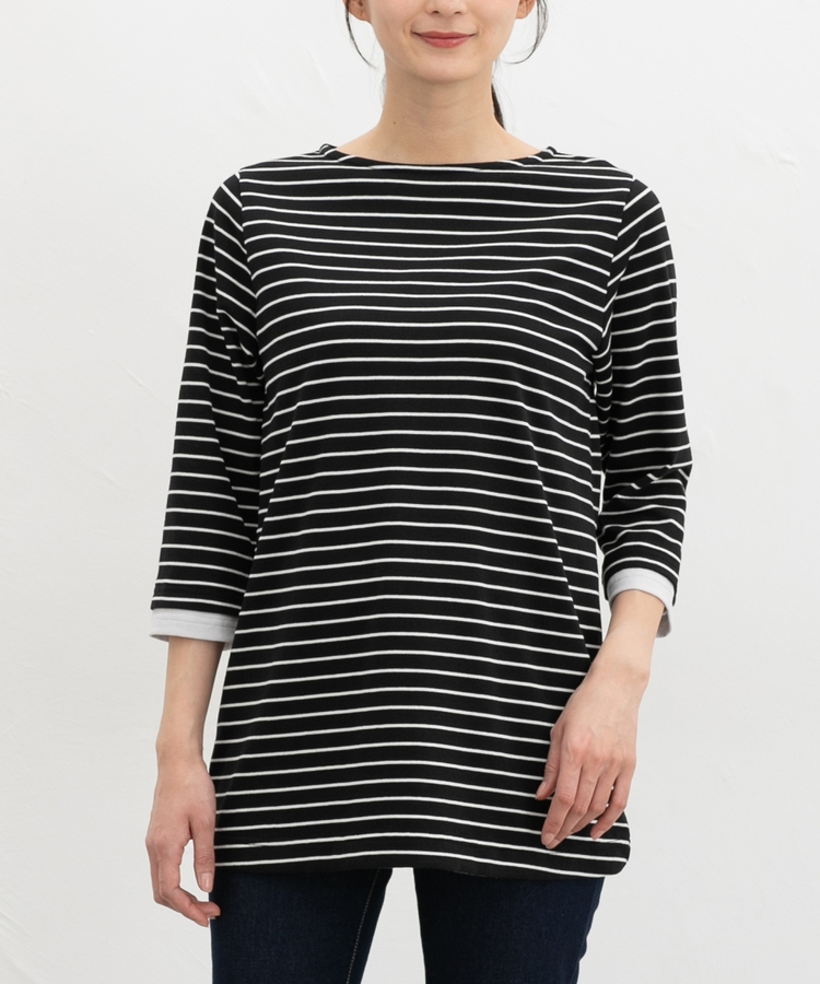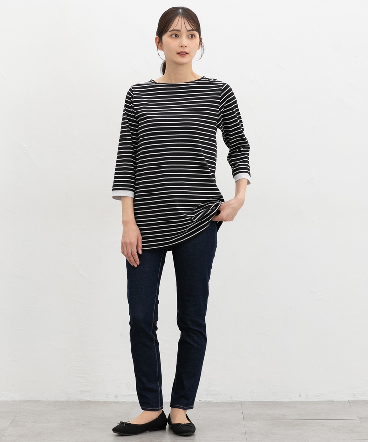 首元をきれいに見せるボートネック。