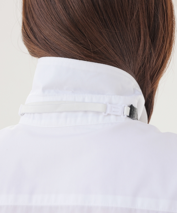 首の後ろ部分は伸縮性のあるゴムで、サイズ調節ができるアジャスター付き。