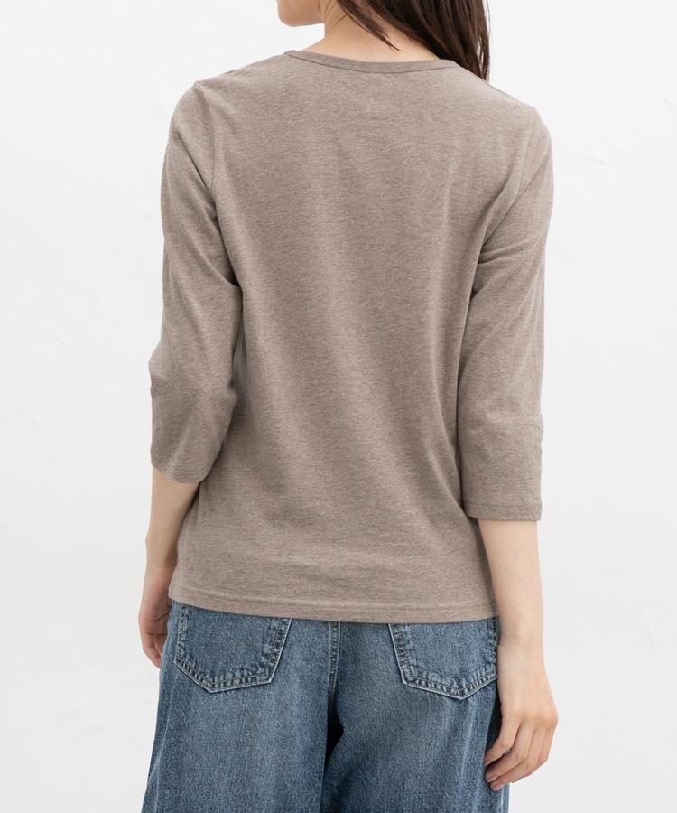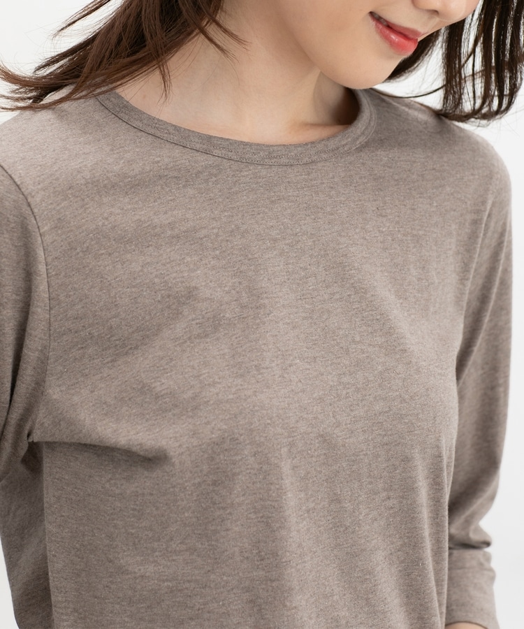 ベーシックで優しい印象の、開きすぎないクルーネックデザイン。