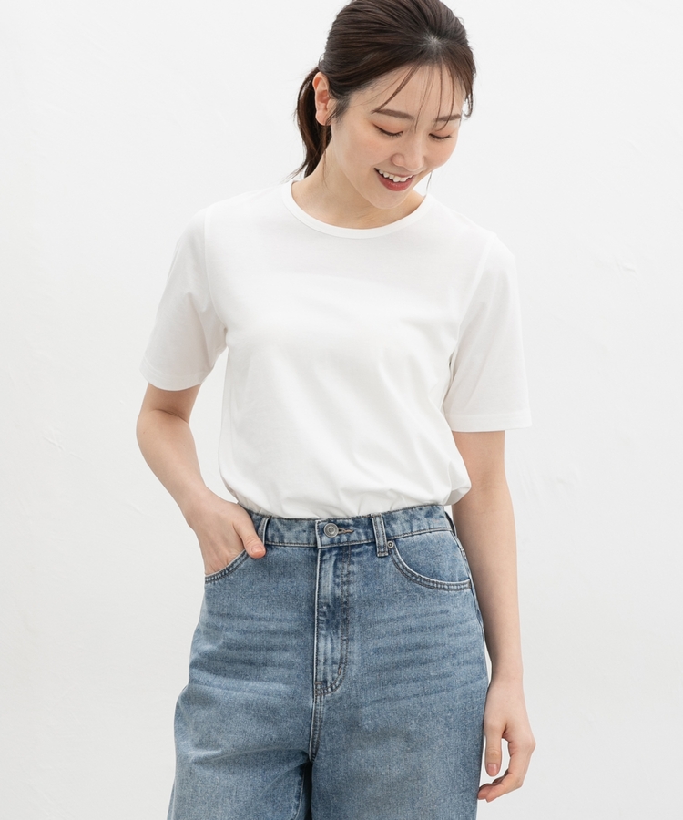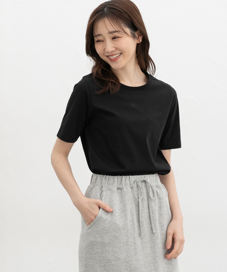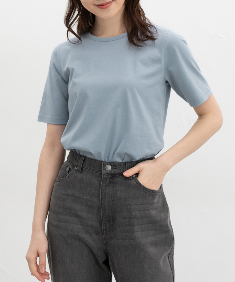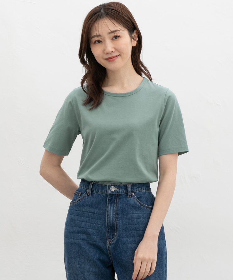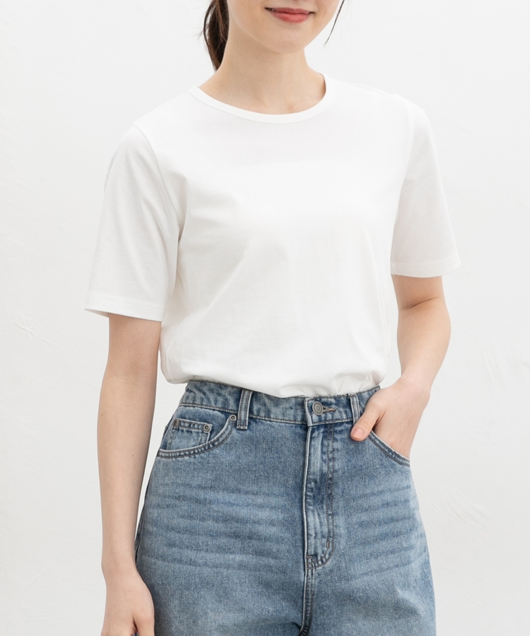 開きすぎないクルーネックのシンプルデザイン。
