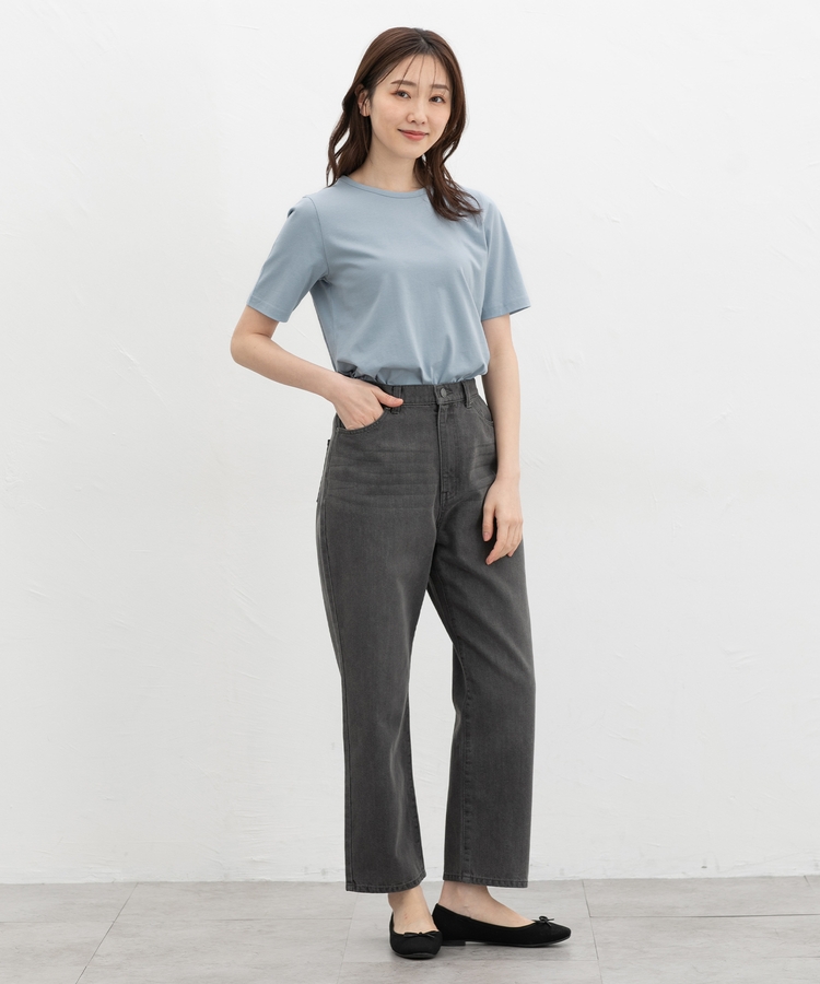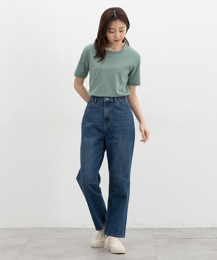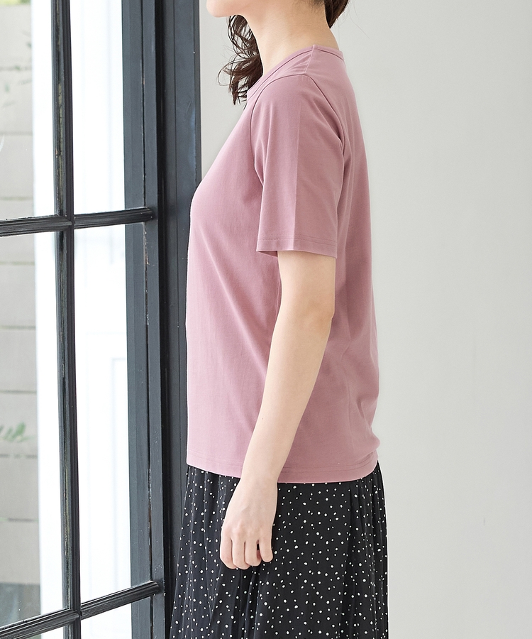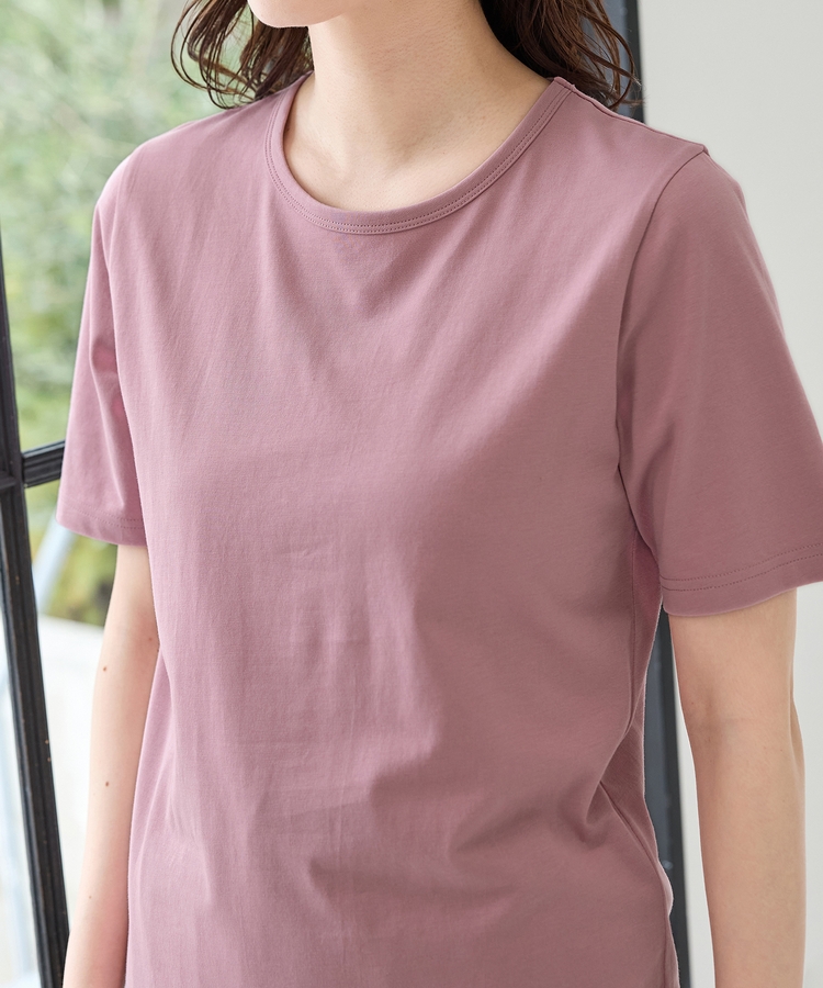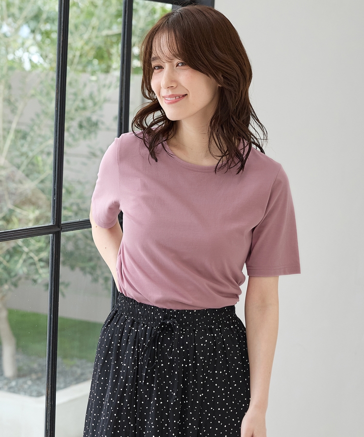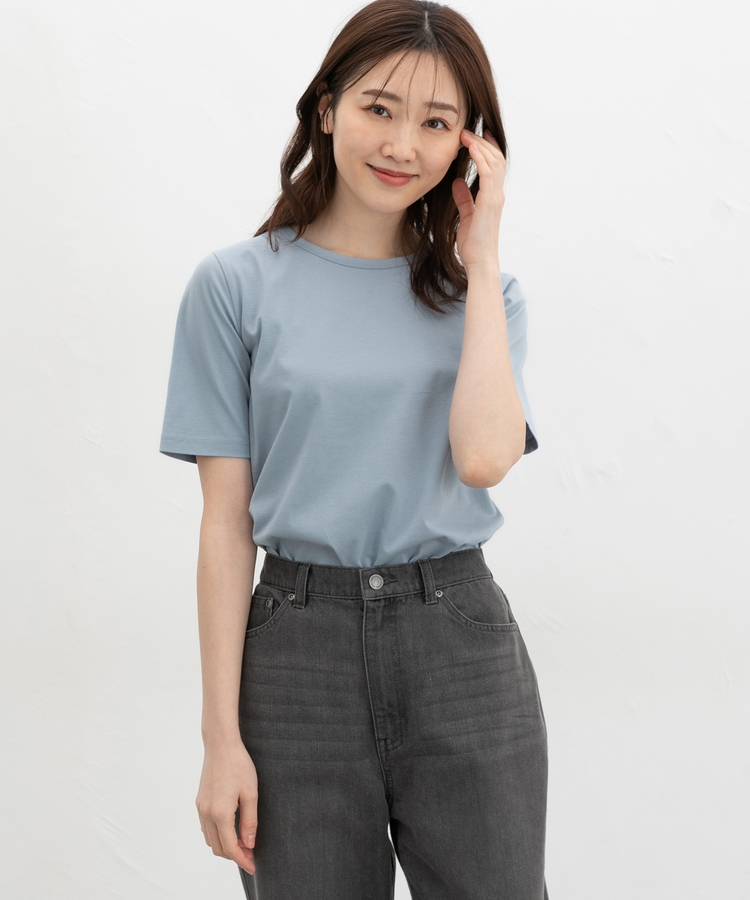開きすぎないクルーネックのシンプルデザイン。