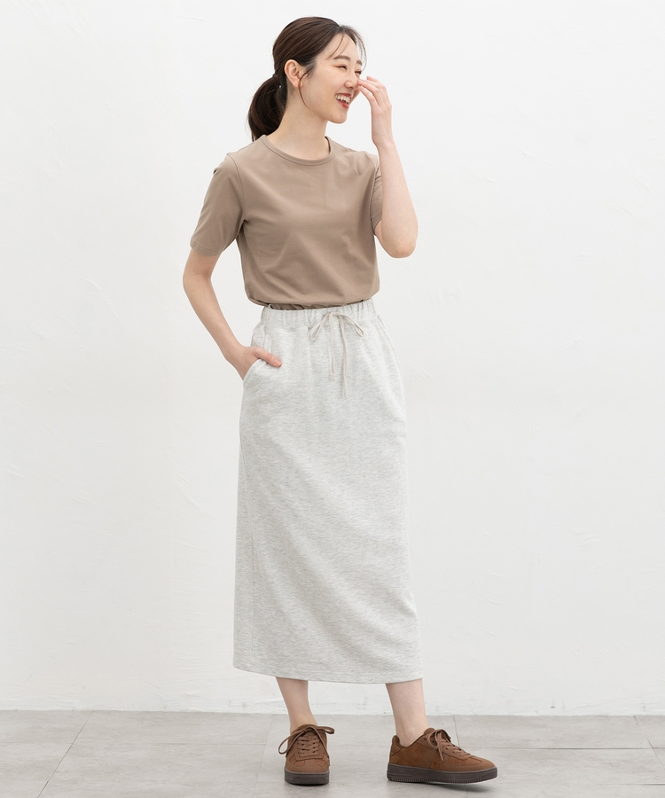 すっきりめの幅と腰にかかる丈感。