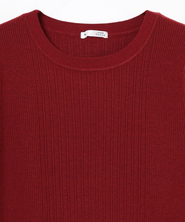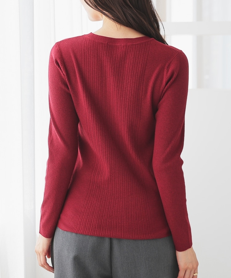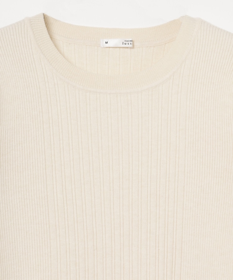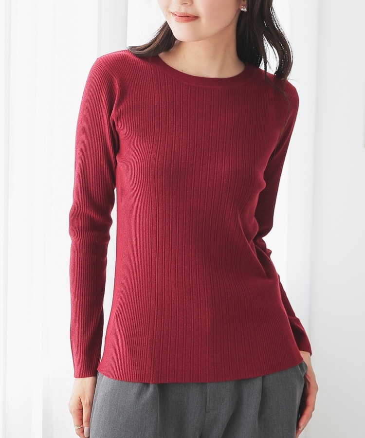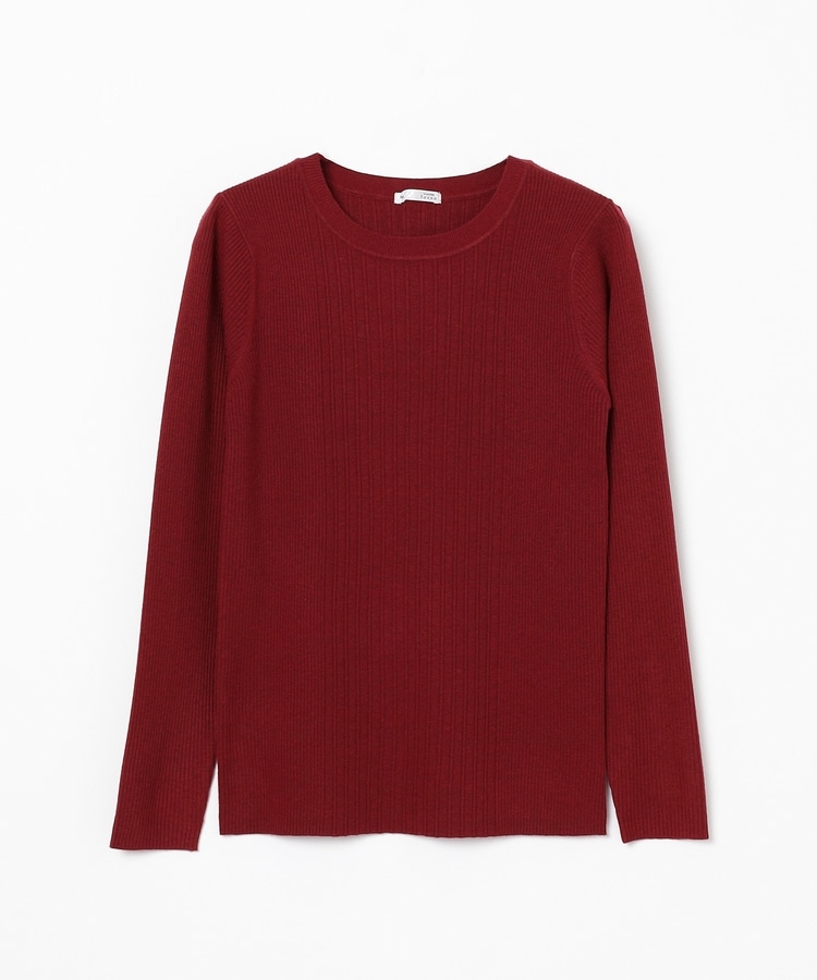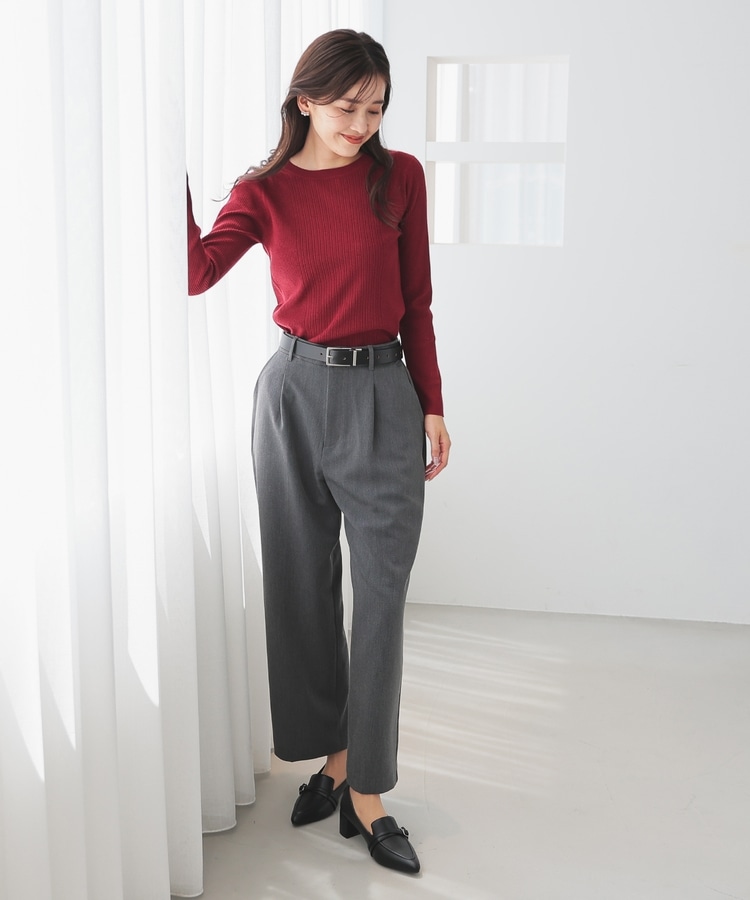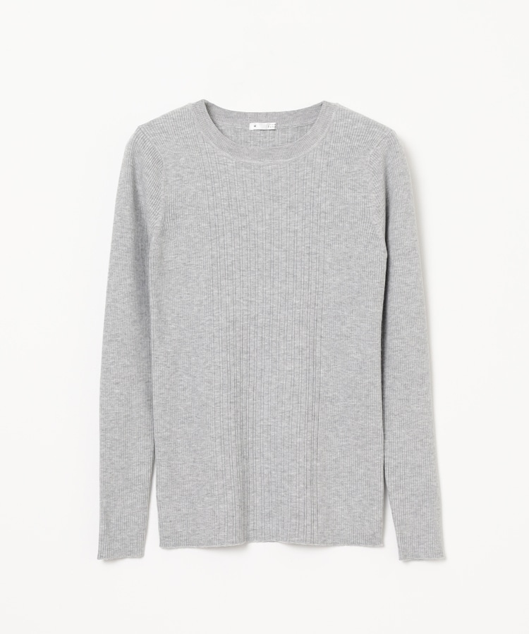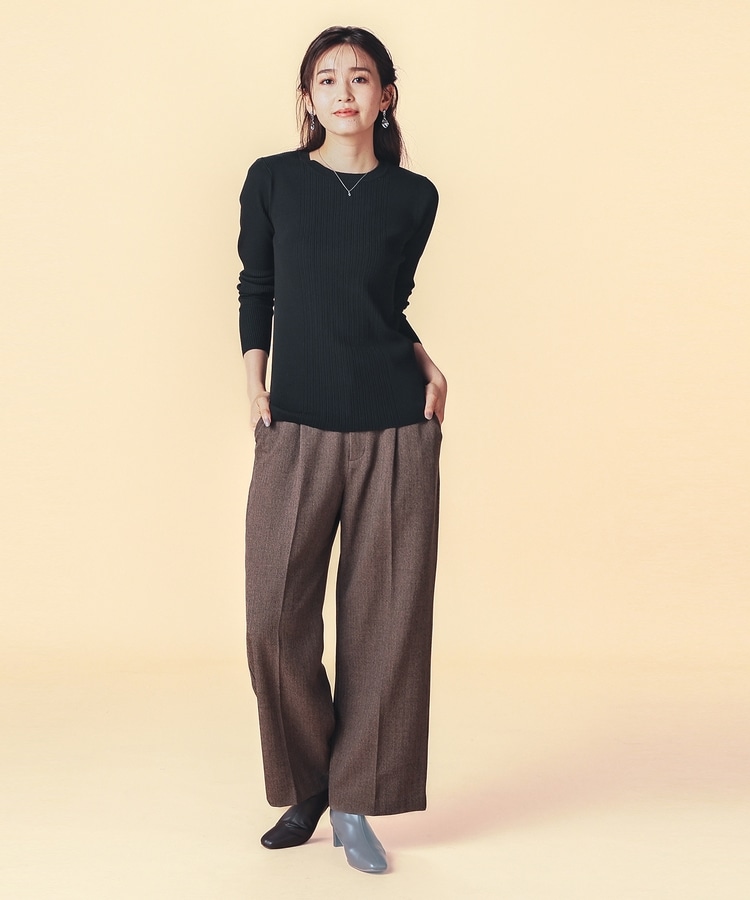 シンプルなシルエットに、リブの間隔を変化させた変則編みでアクセントをプラスした、細見え効果もあるデザイン。