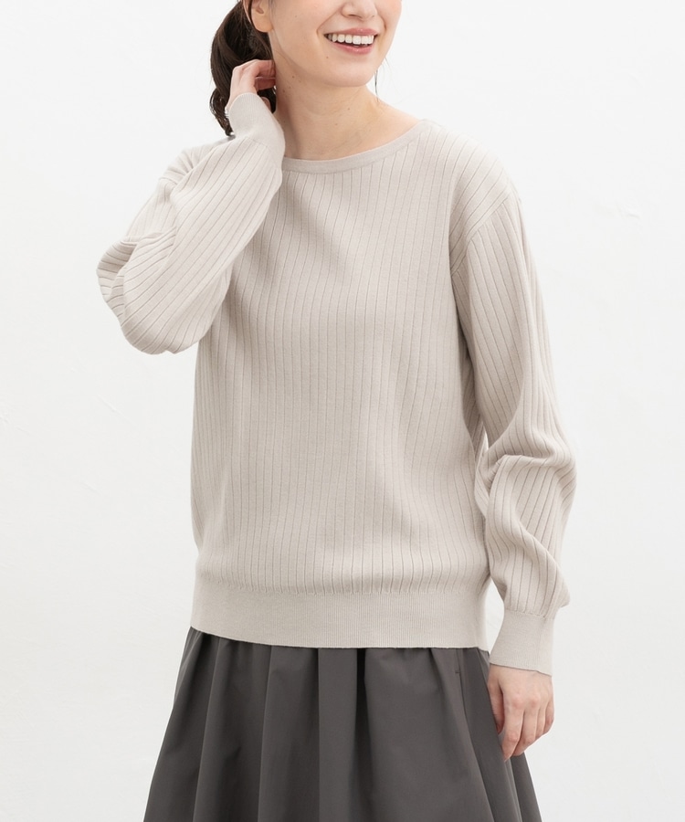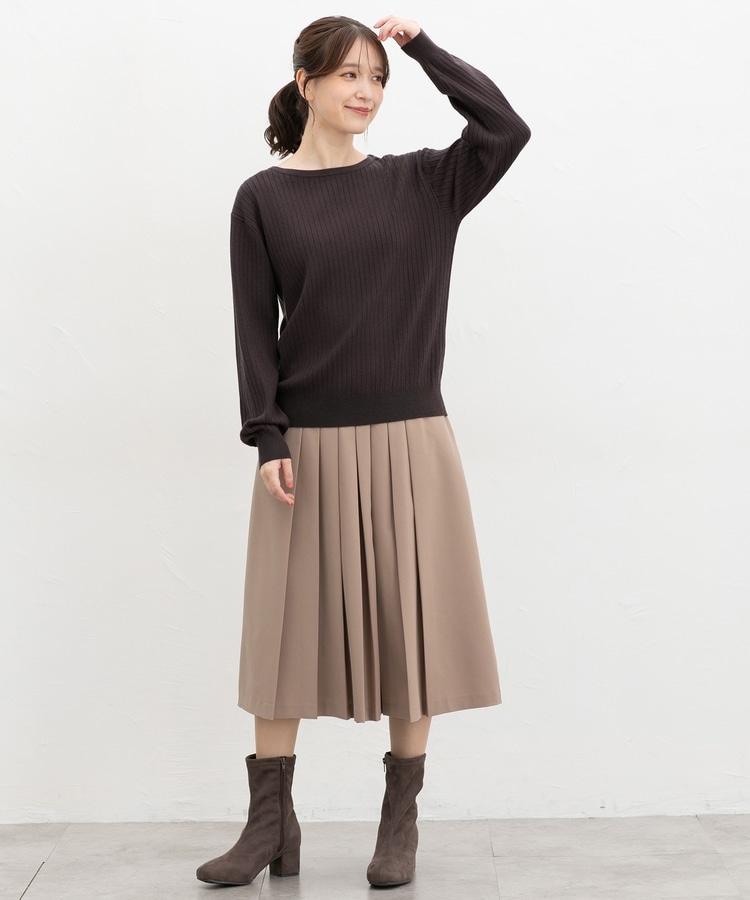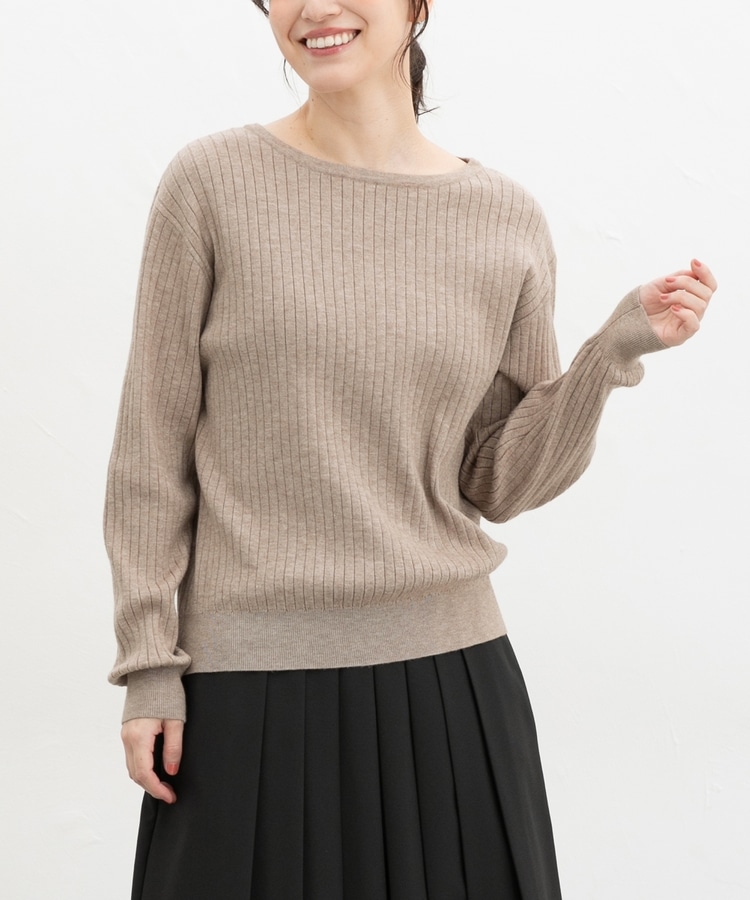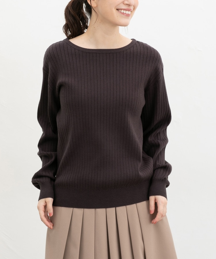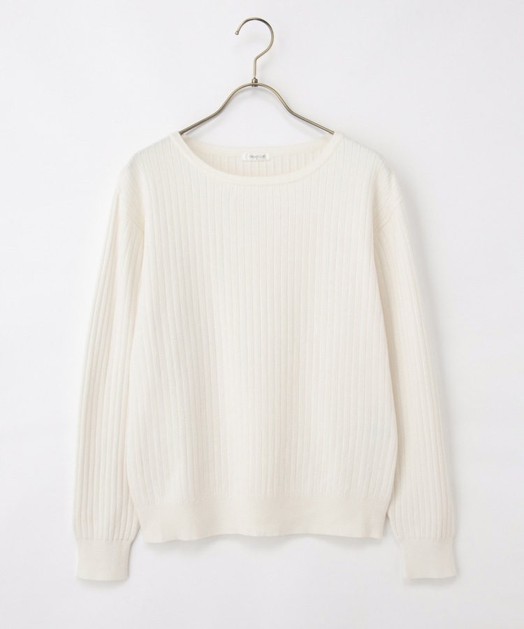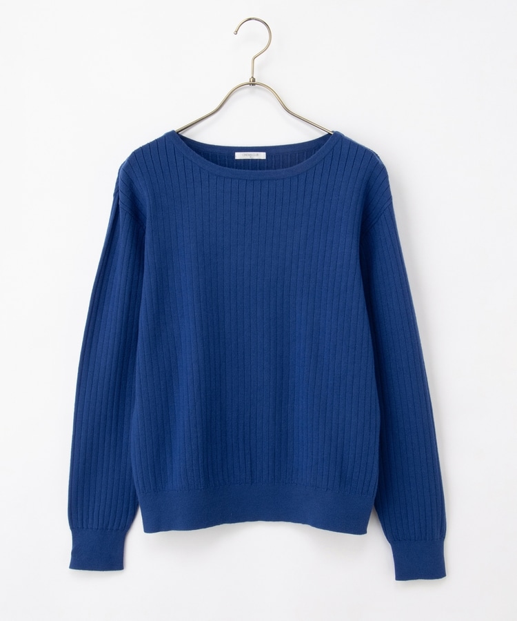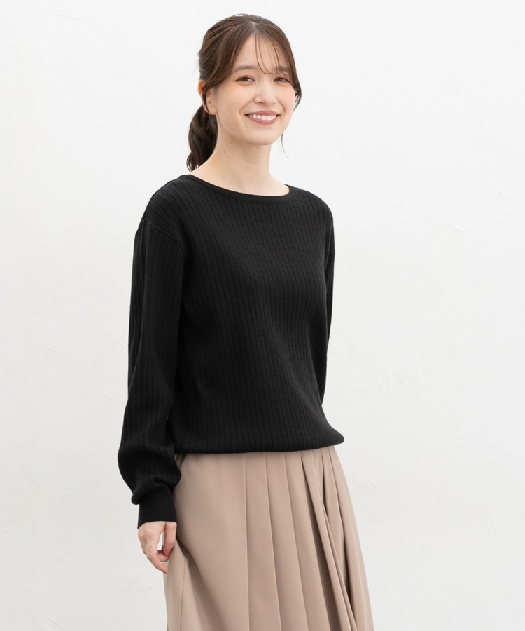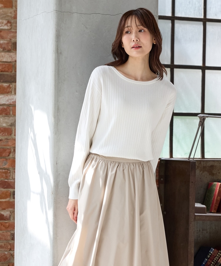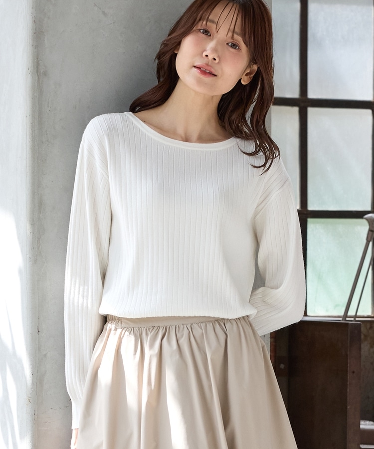 首回りがきれいに見えるボートネックのシンプルデザイン。