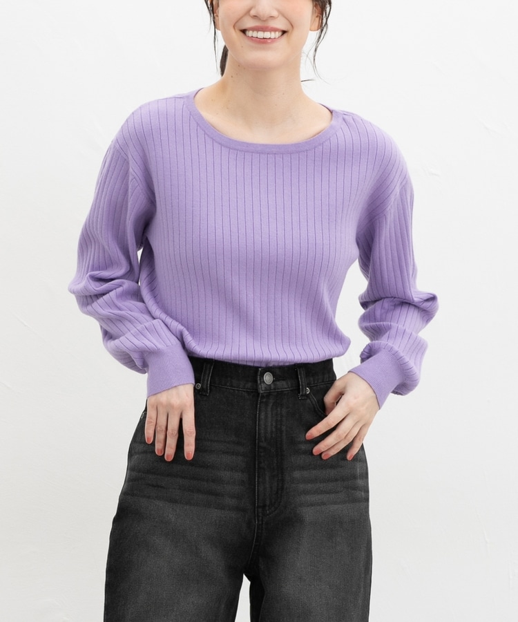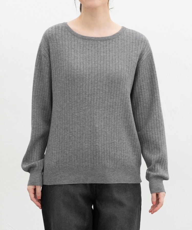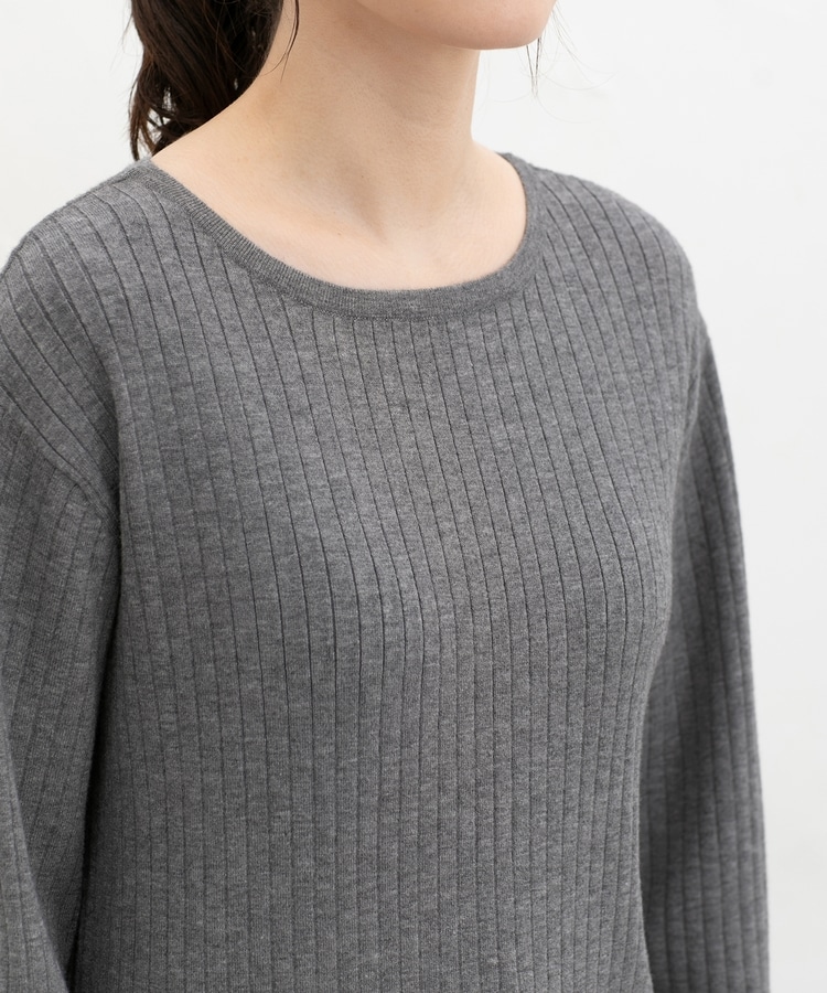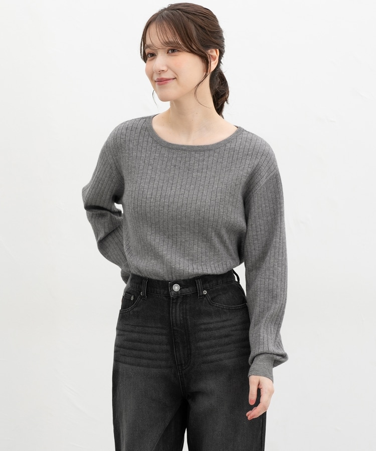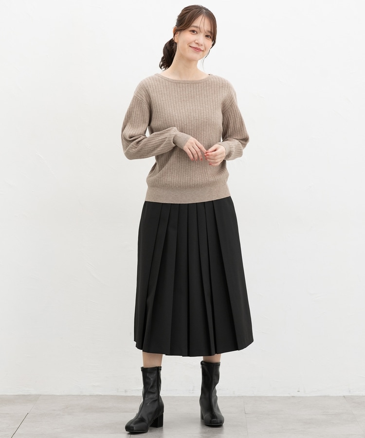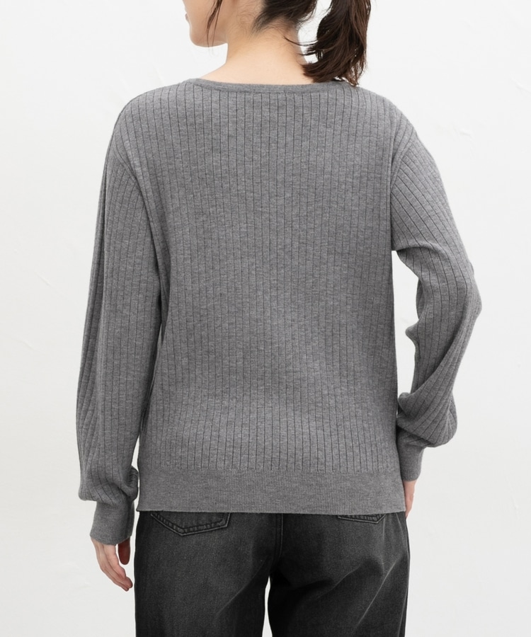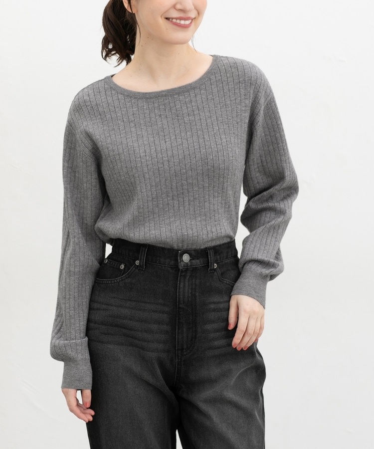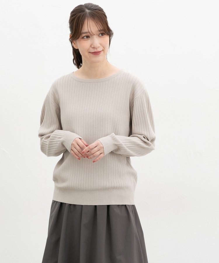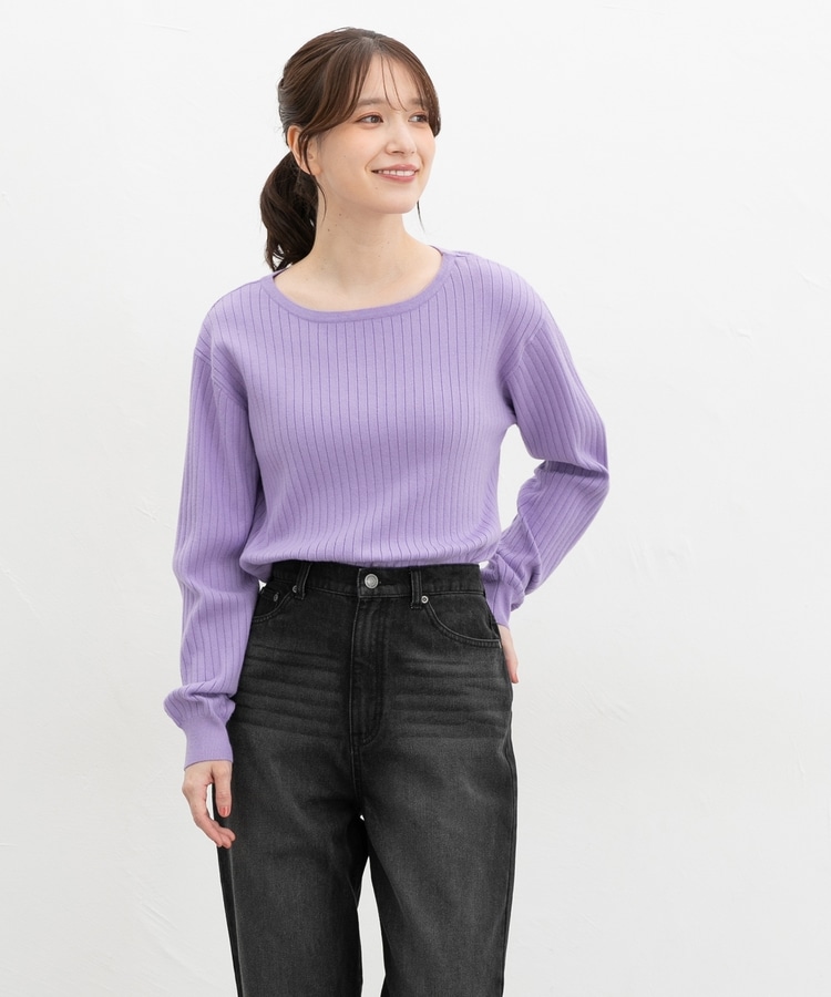 首回りがきれいに見えるボートネックのシンプルデザイン。