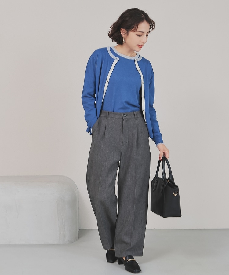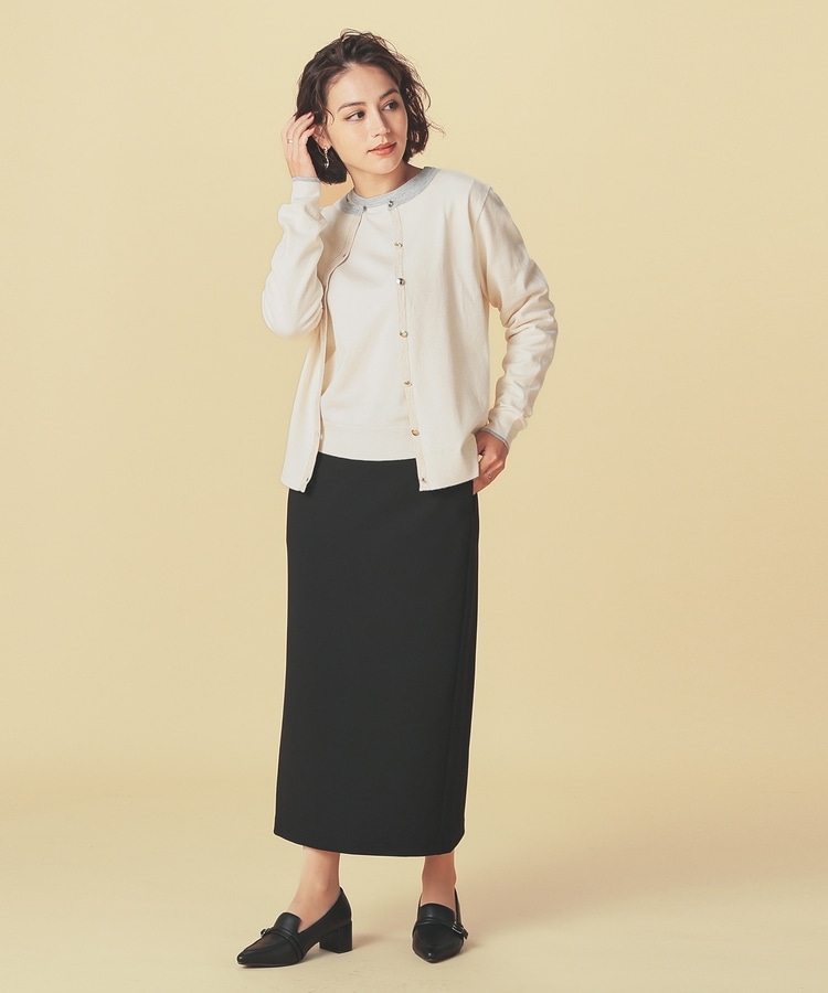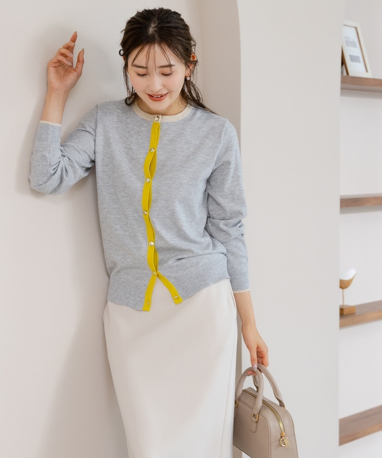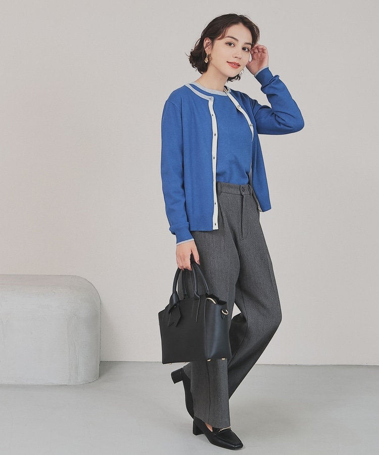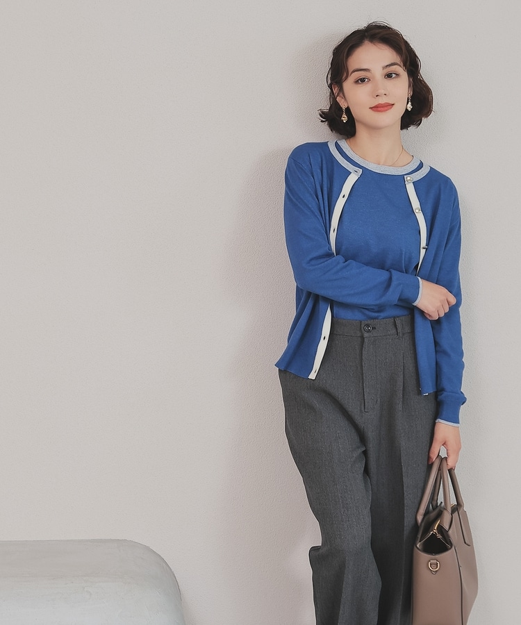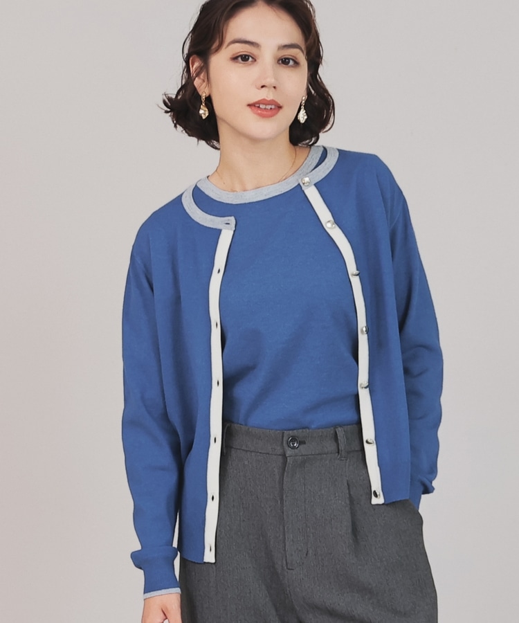 クルーネックニットとクルーネックカーデはアンサンブルとしても着用いただけます。