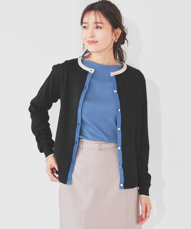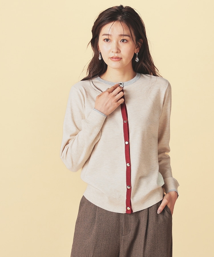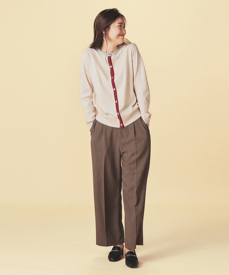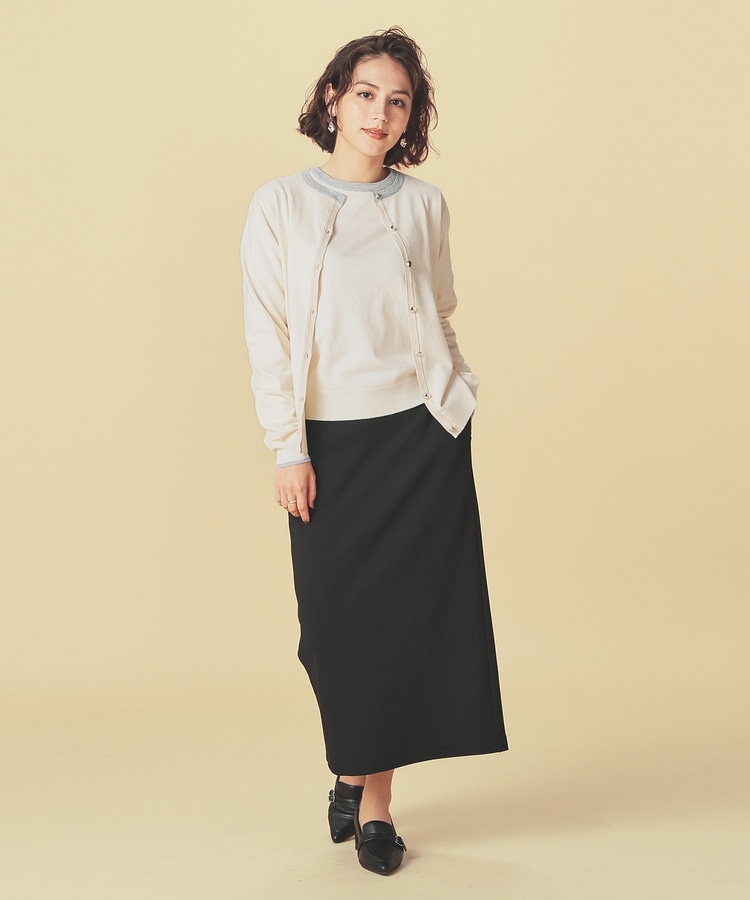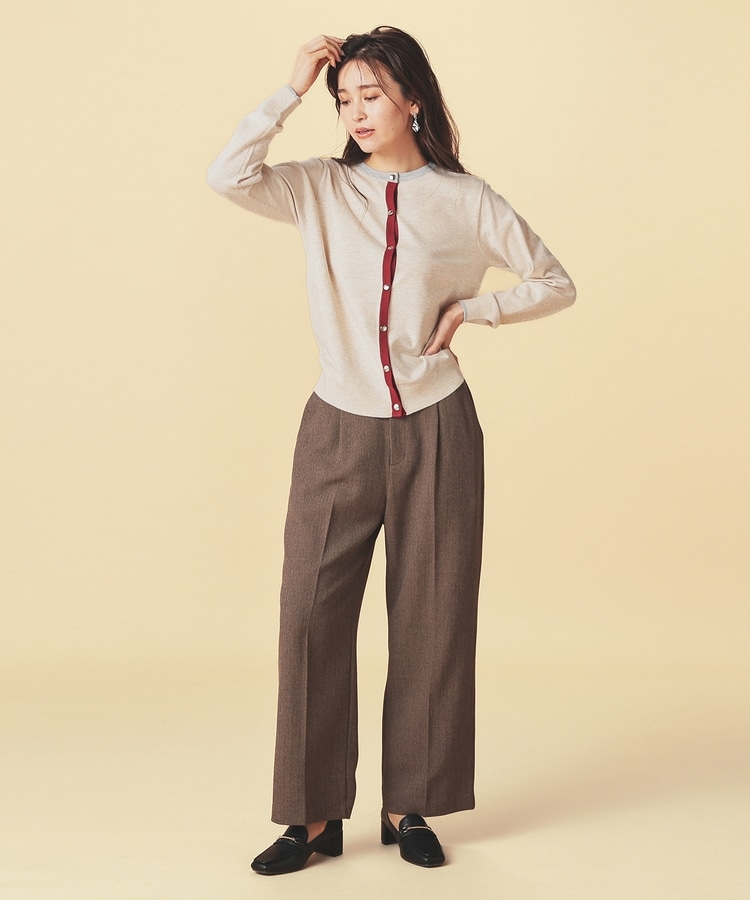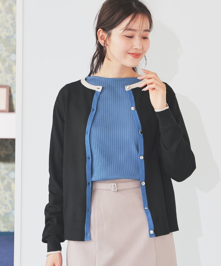 クルーネックニットとクルーネックカーデはアンサンブルとしても着用いただけます。