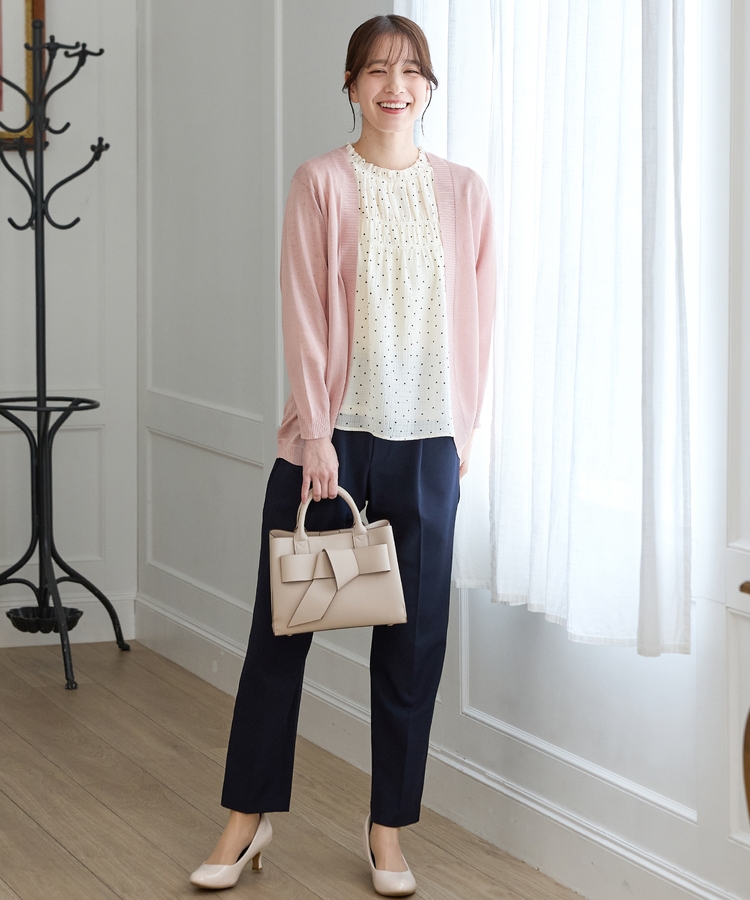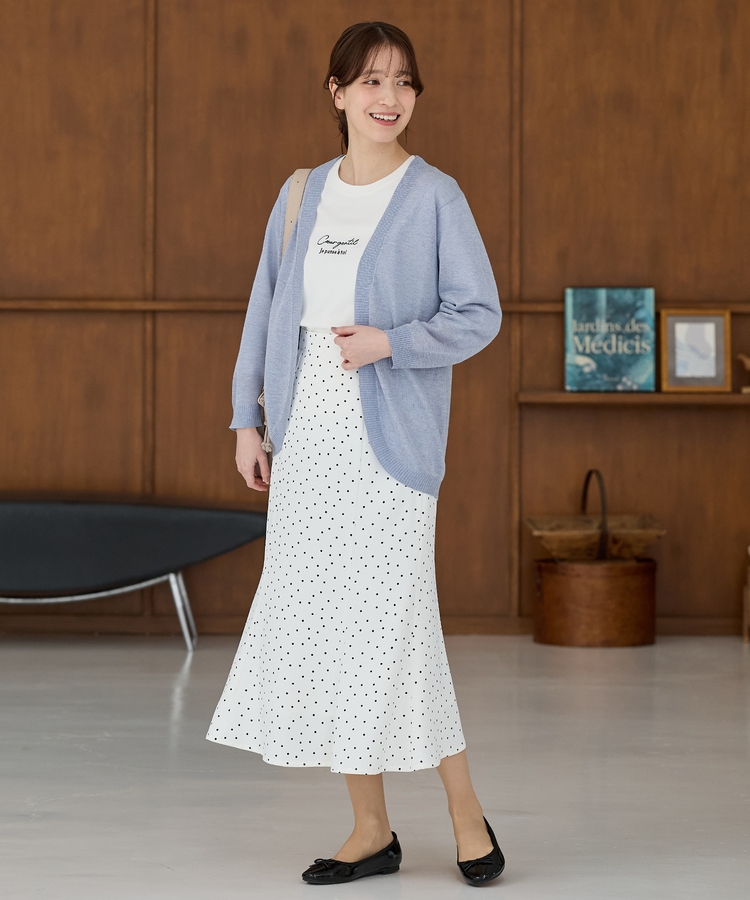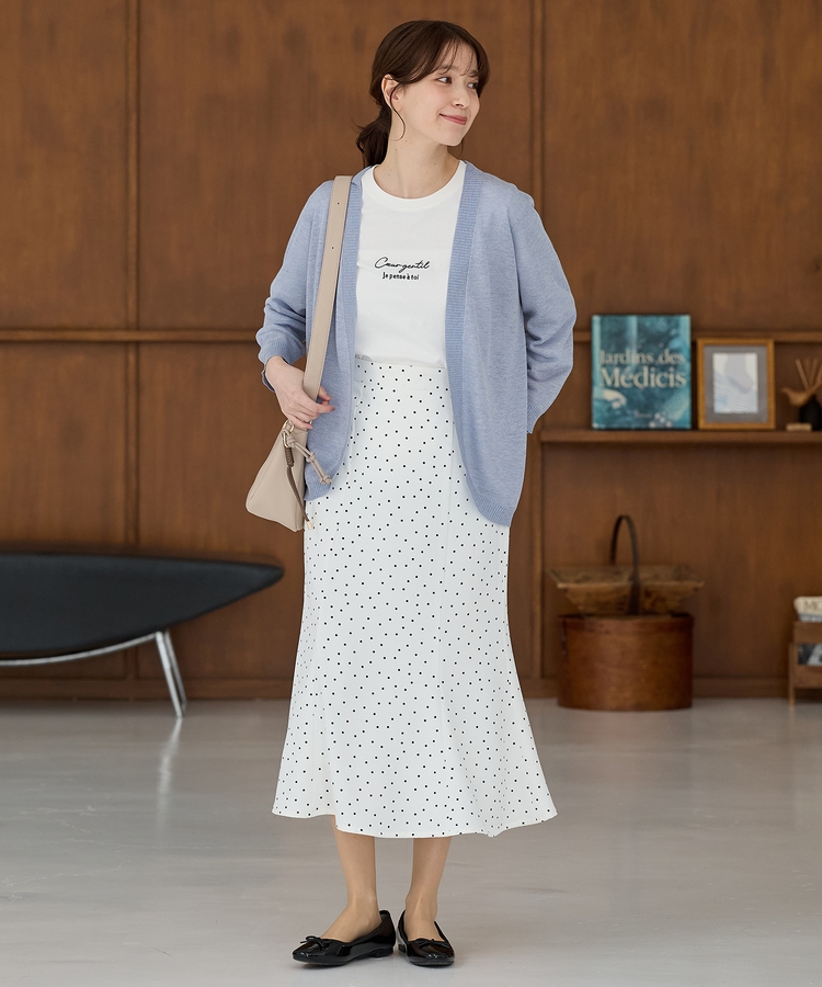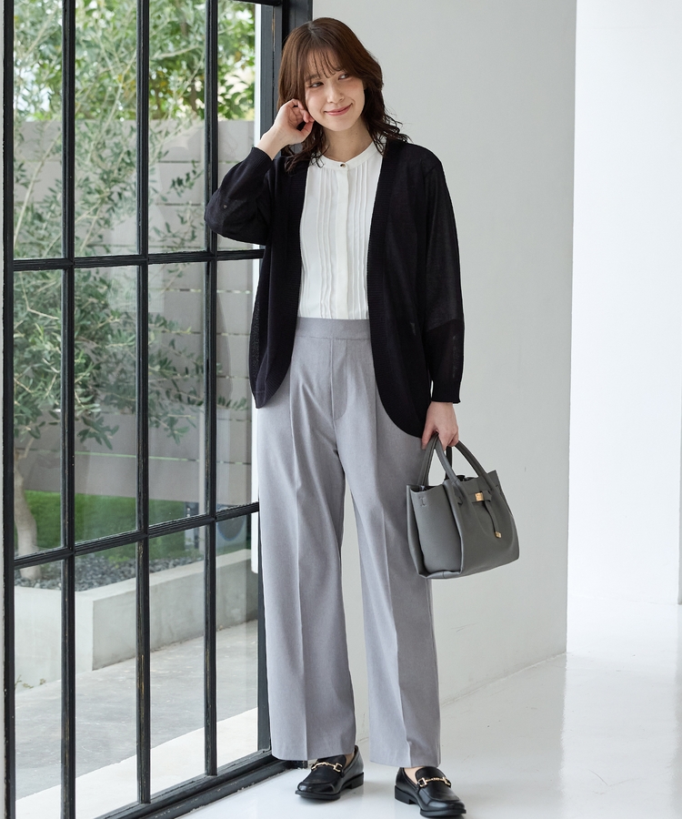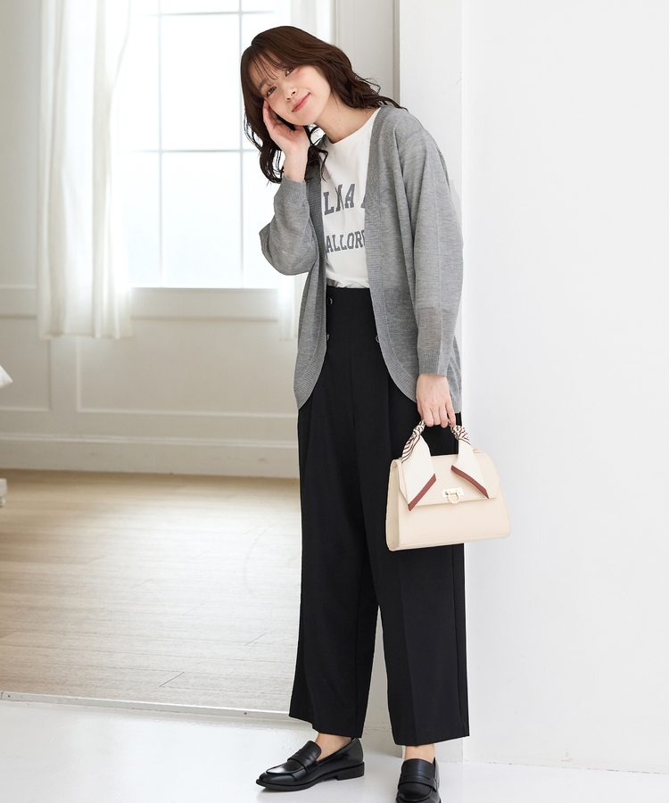 ゆったりめの幅と気になる腰回りまでカバーする丈感で、丸みのあるフェミニンなシルエット。