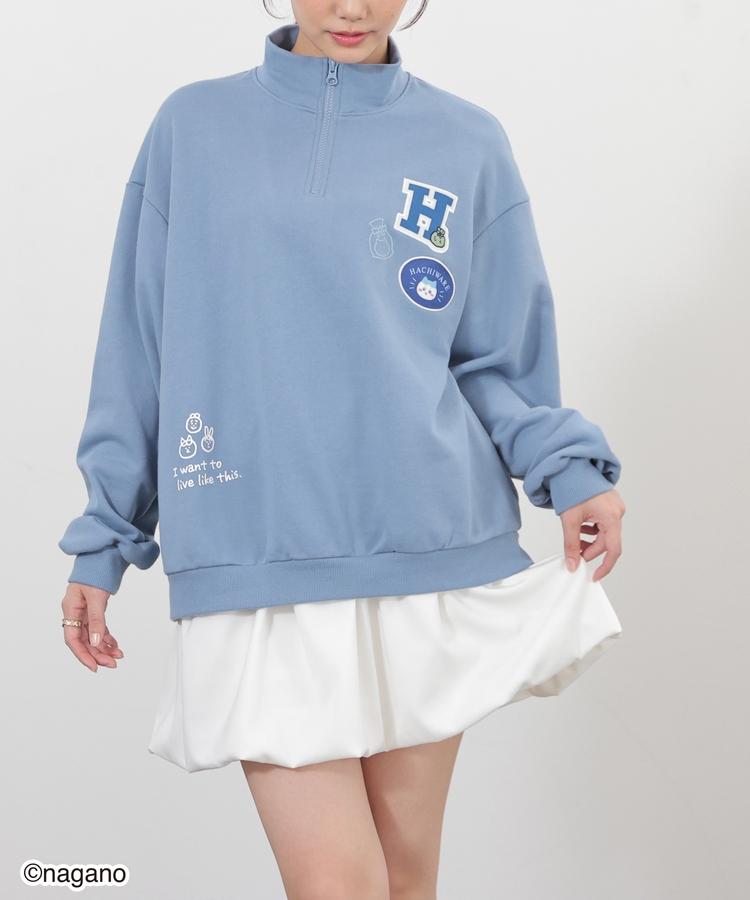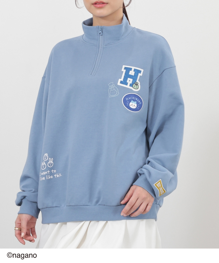 イラストレーター・ナガノ氏が描くSNS発の漫画作品『ちいかわ』のハーフジップトレーナー。