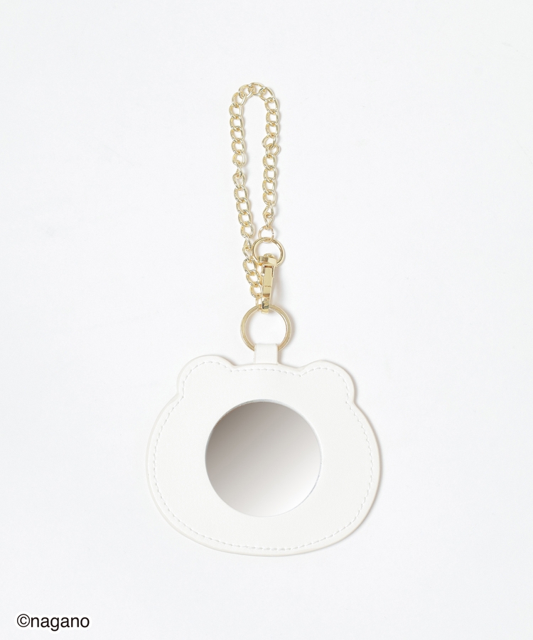 合皮にプリントされたキャラクターがキュートなマスコットチャームの裏側には鏡付き。