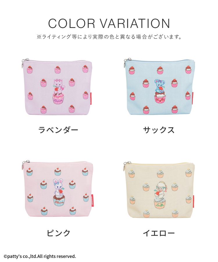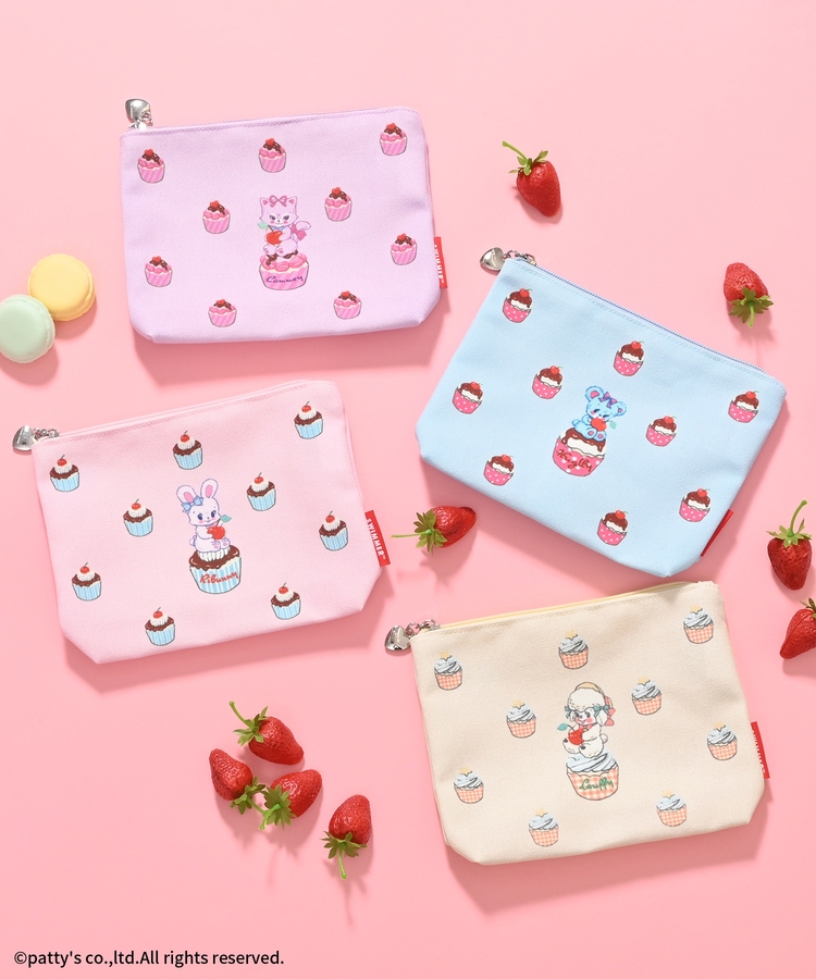 カップケーキの総柄が目を引くポップなデザインで、カラー違いで集めたくなるかわいさ。