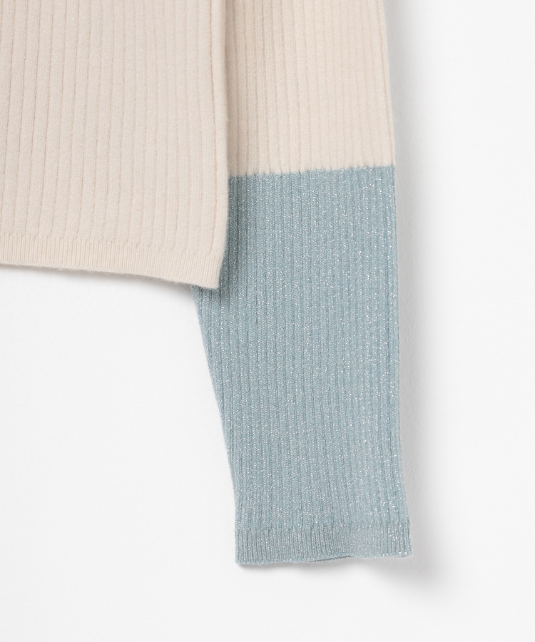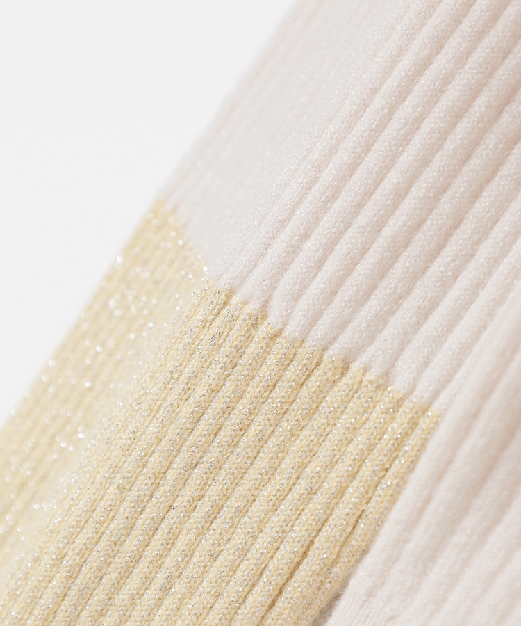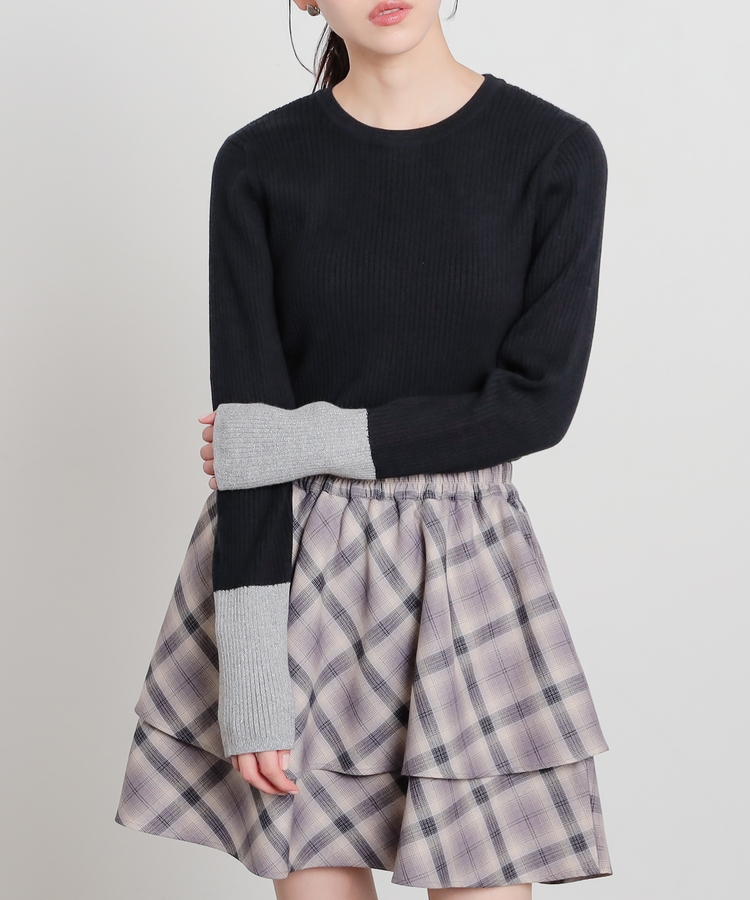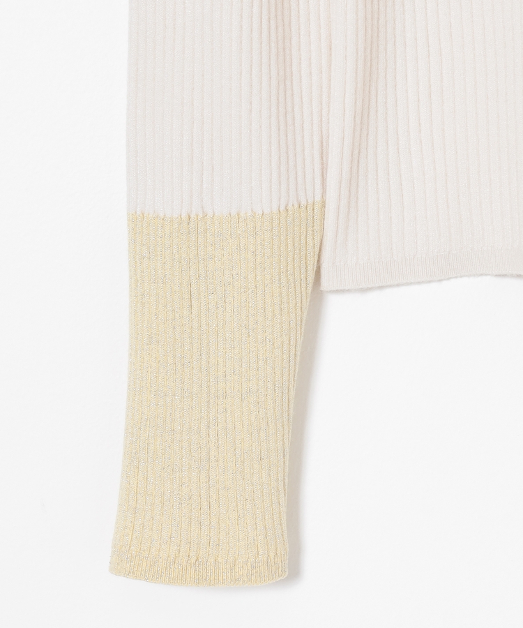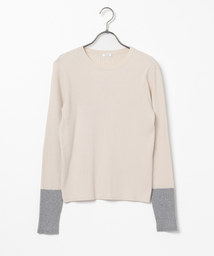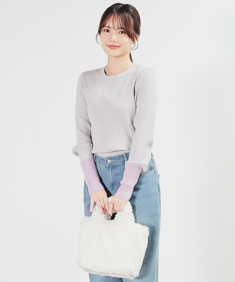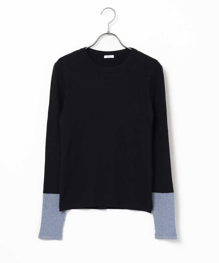 シンプルなクルーネックデザインに、袖口のラメ入り配色切り替えで華やかさをプラス。