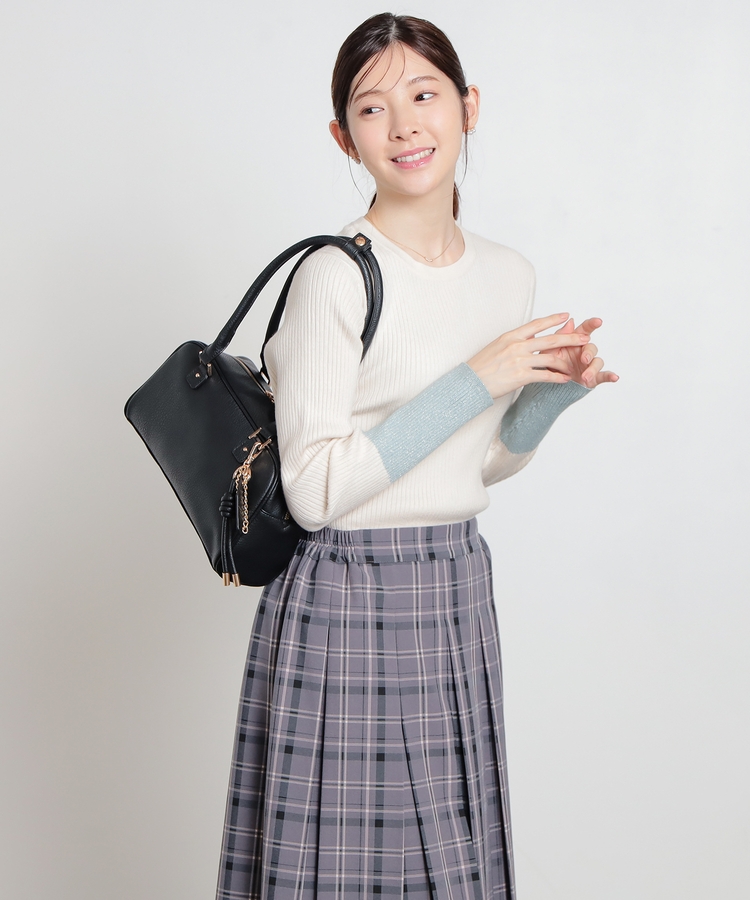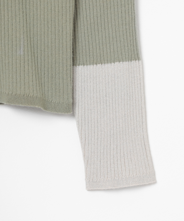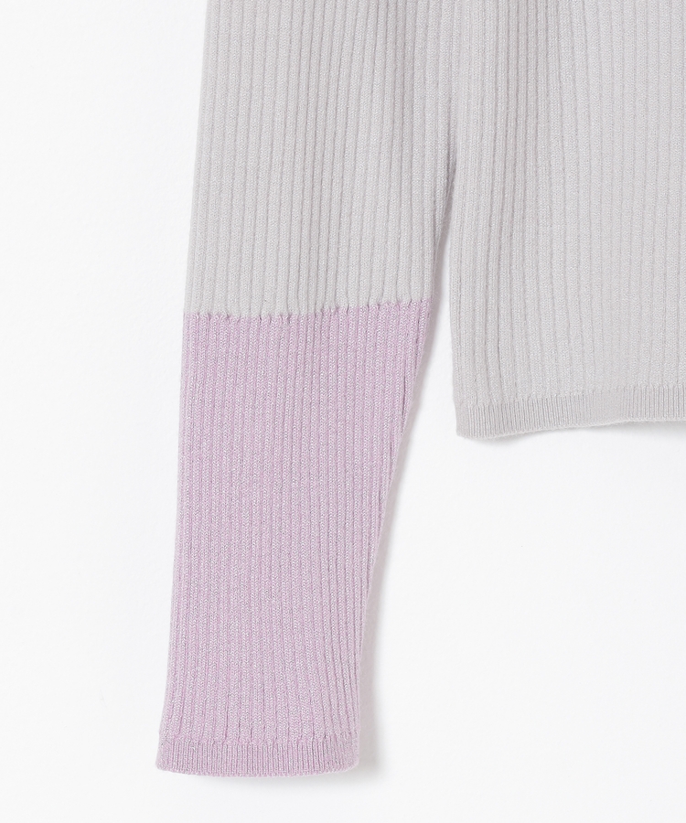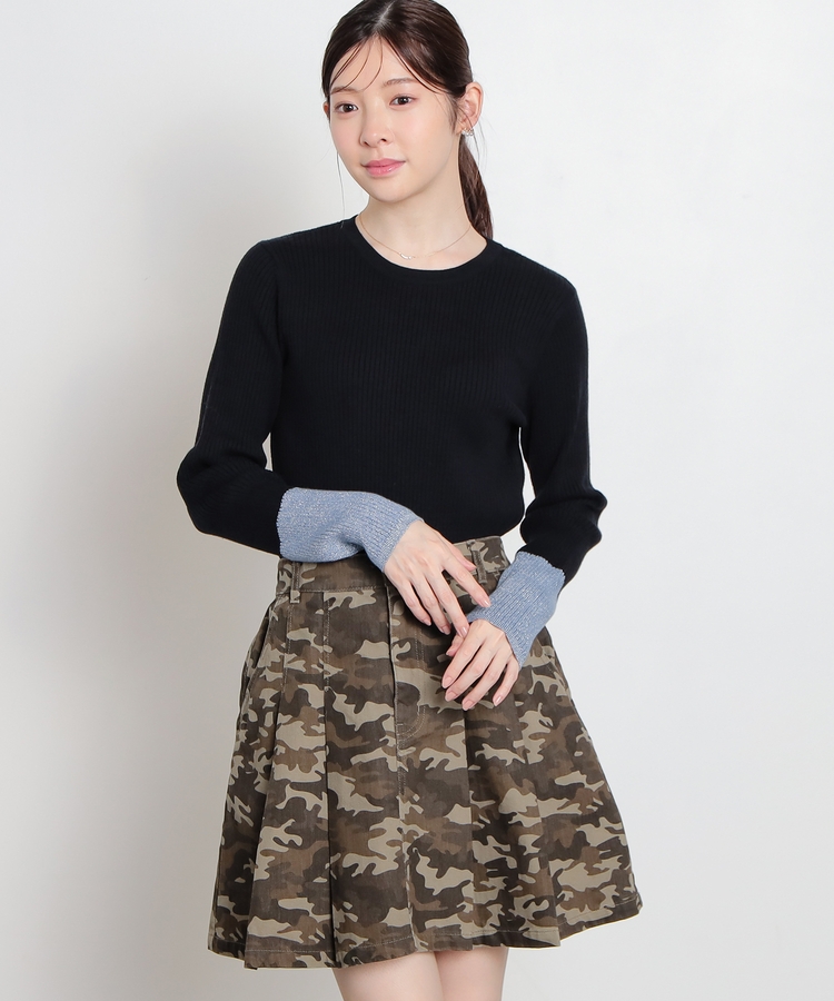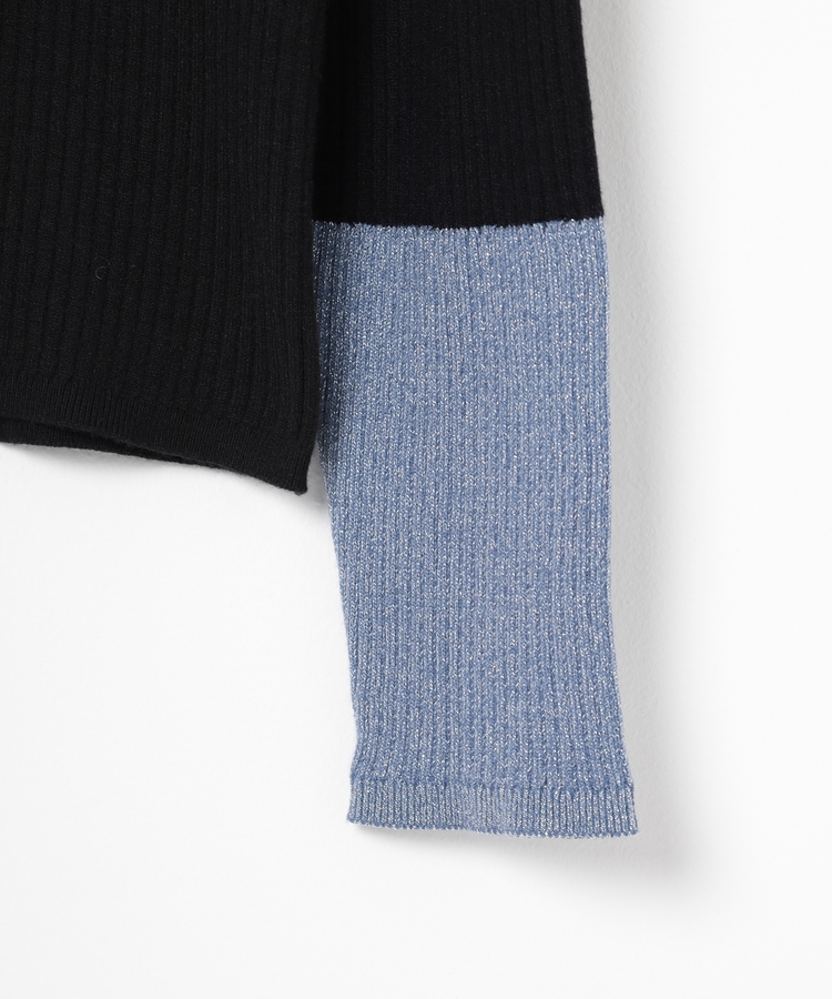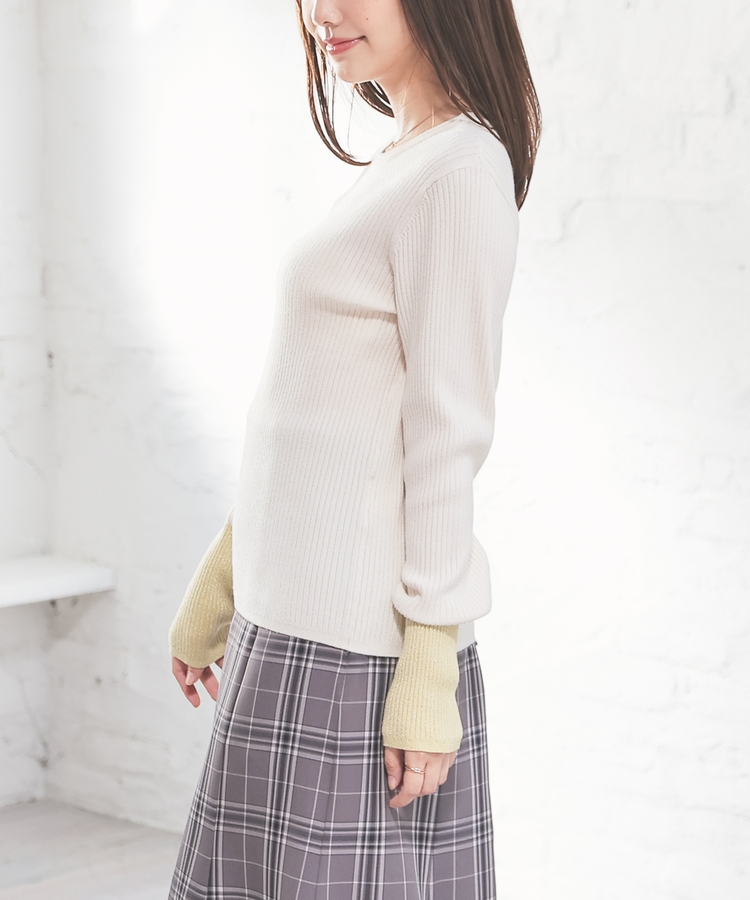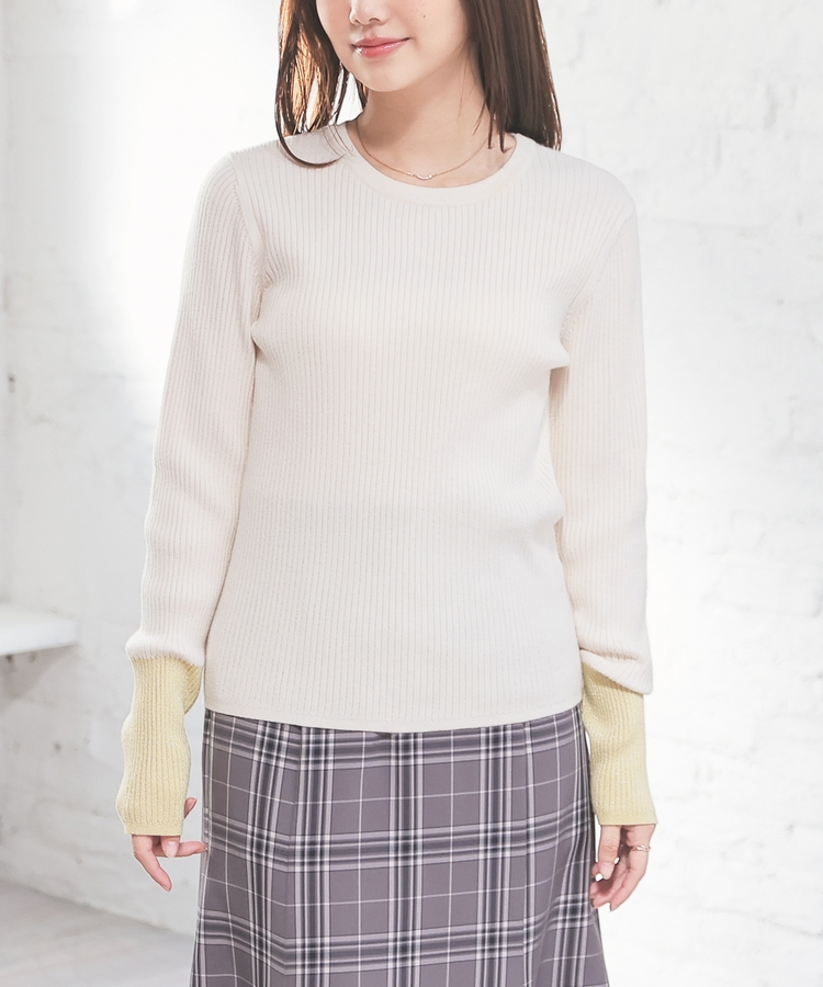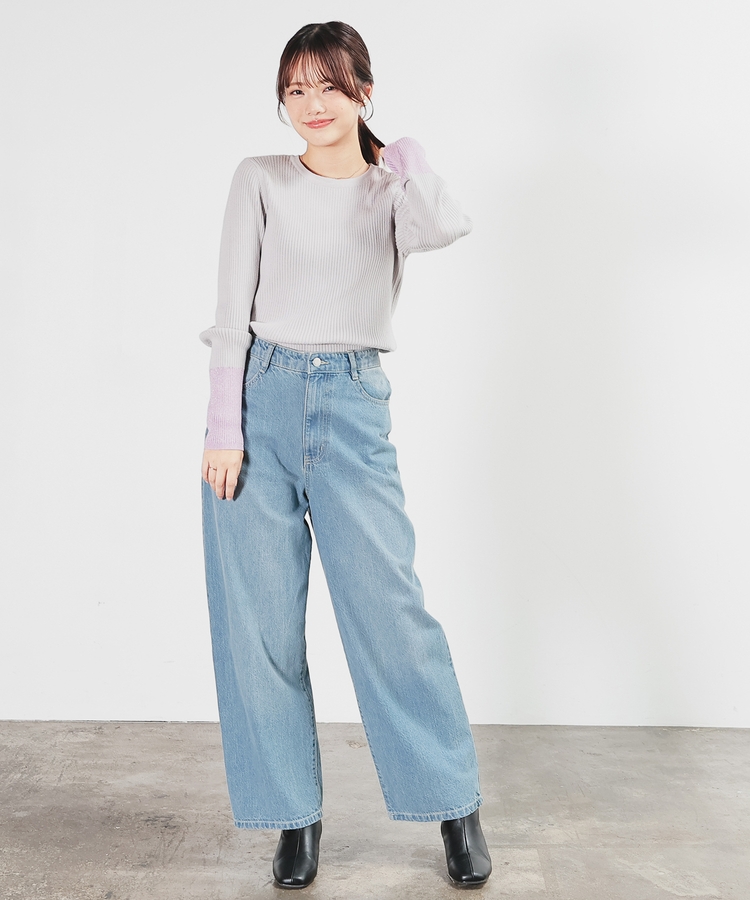 シンプルなクルーネックデザインに、袖口のラメ入り配色切り替えで華やかさをプラス。