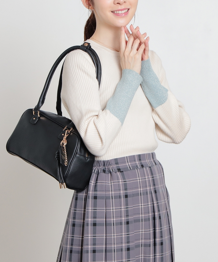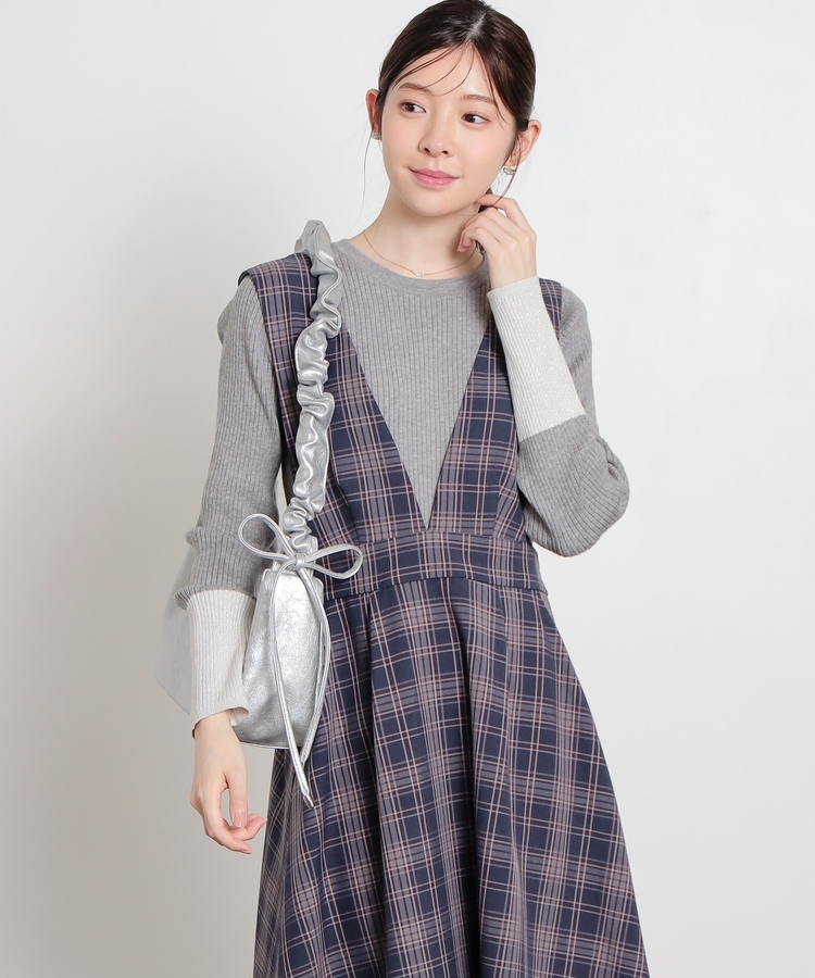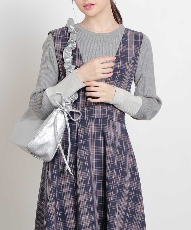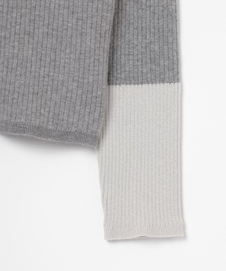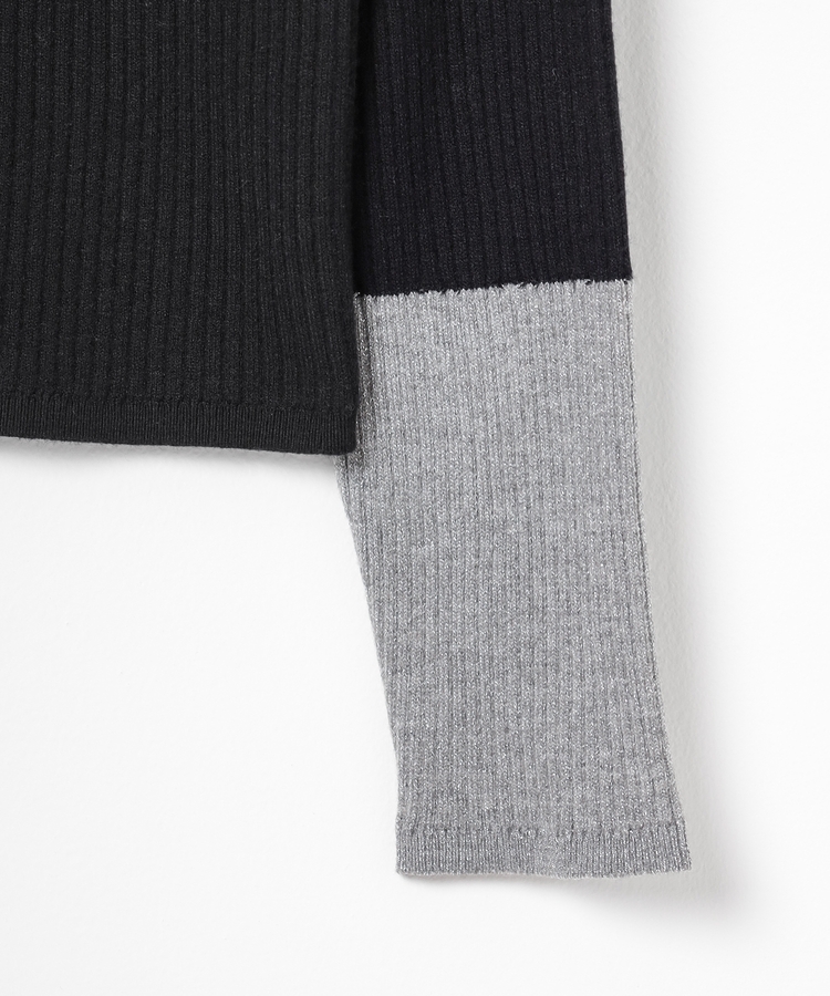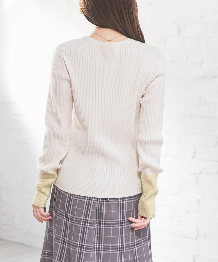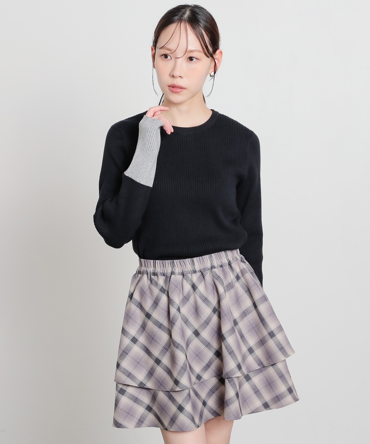 シンプルなクルーネックデザインに、袖口のラメ入り配色切り替えで華やかさをプラス。