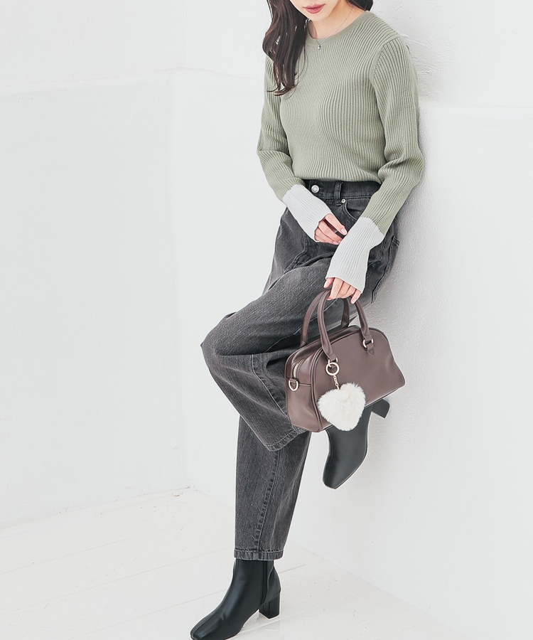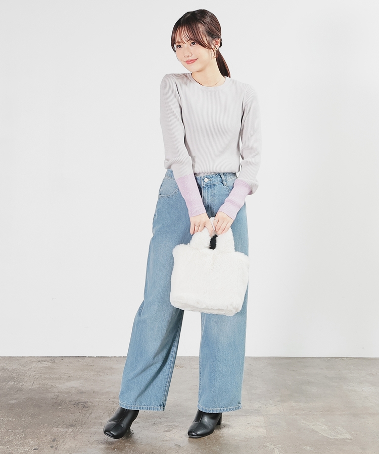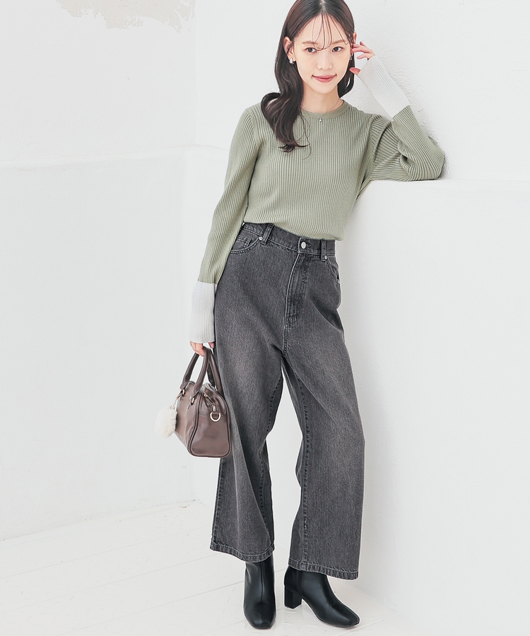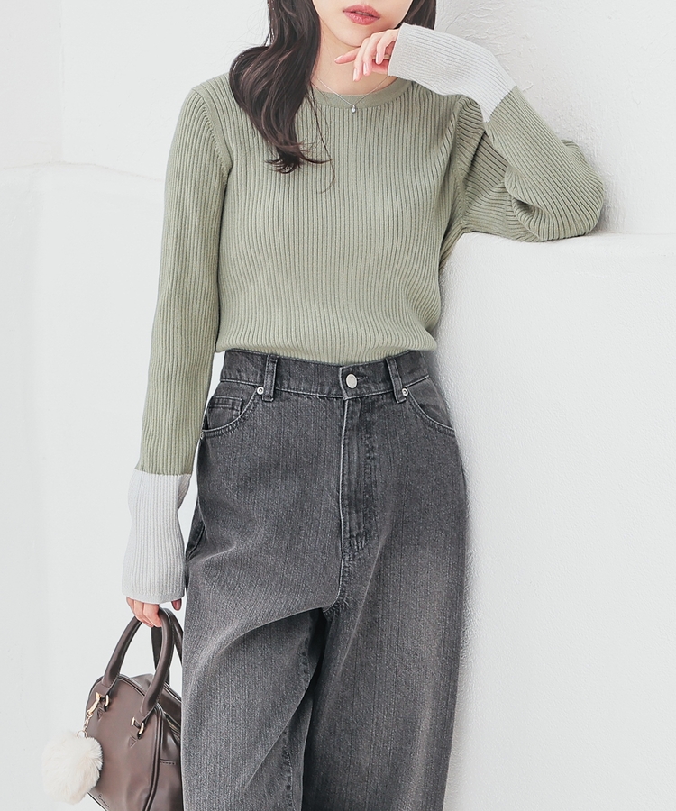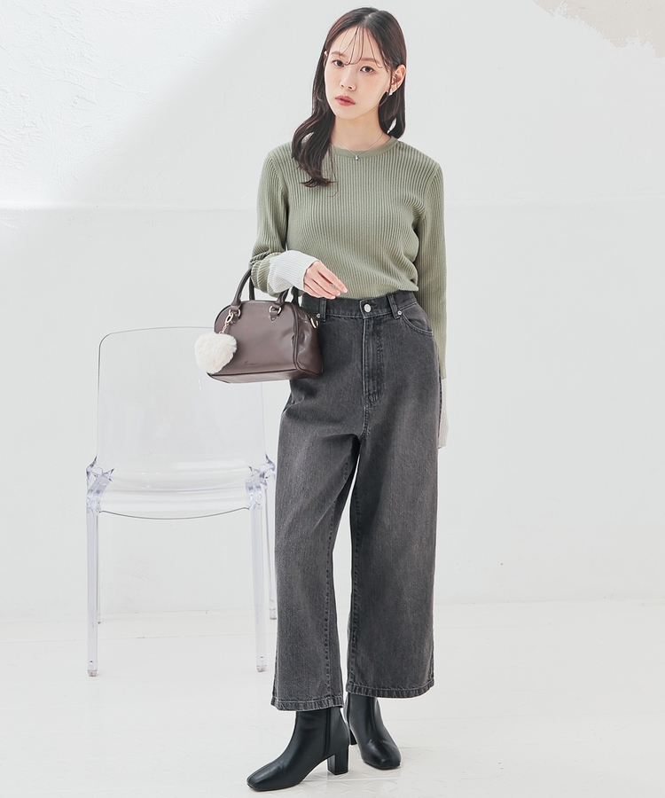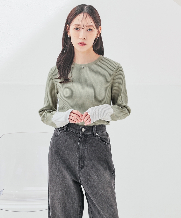 表面感のある細めリブの縦ラインと程よくフィットするシルエットで華奢見え効果も◎