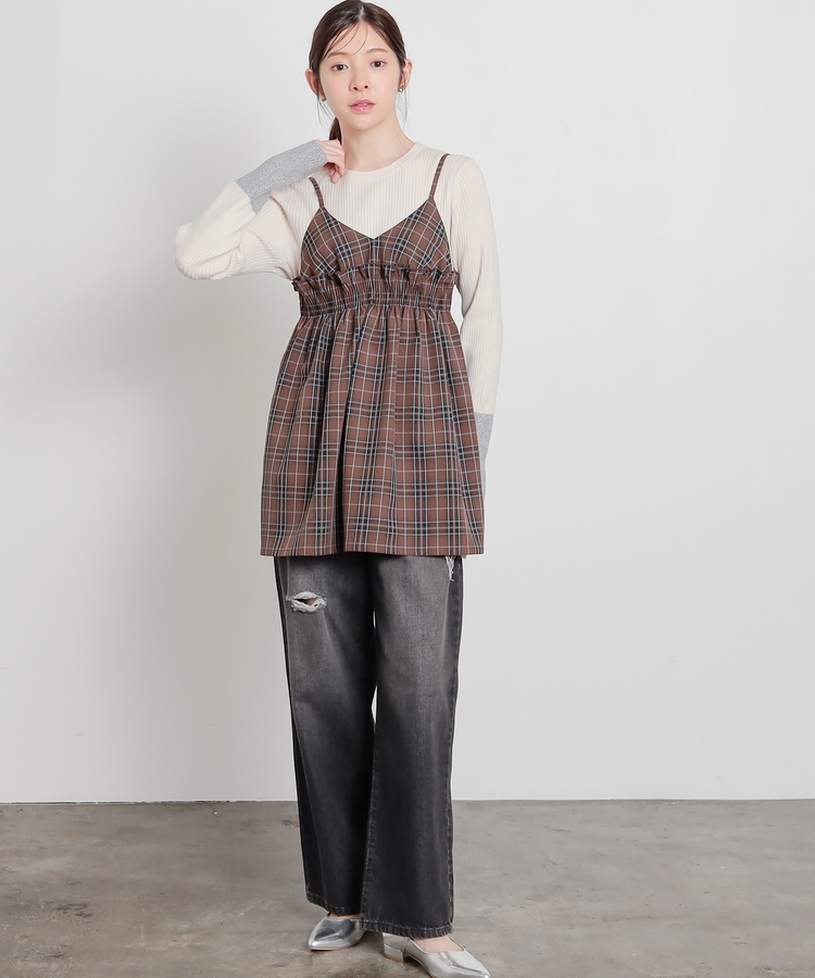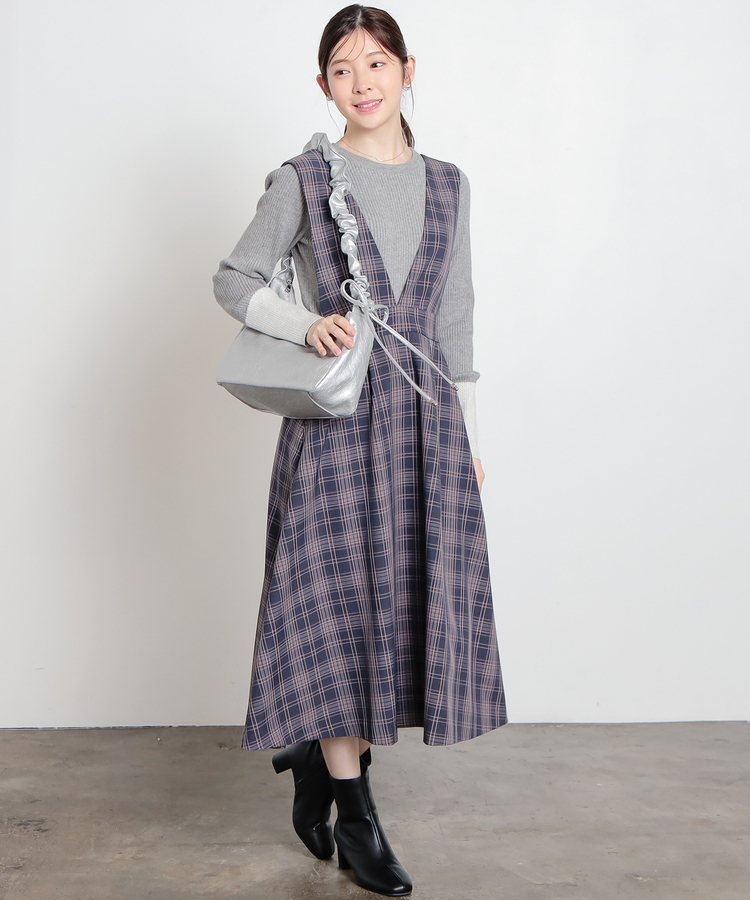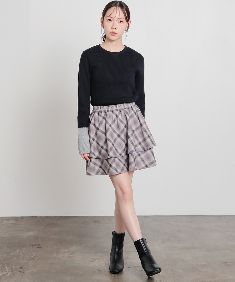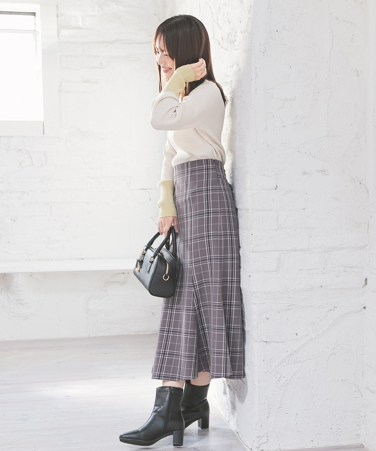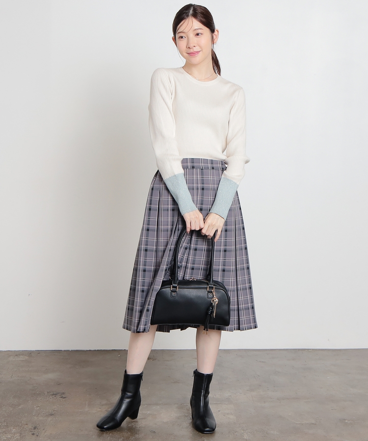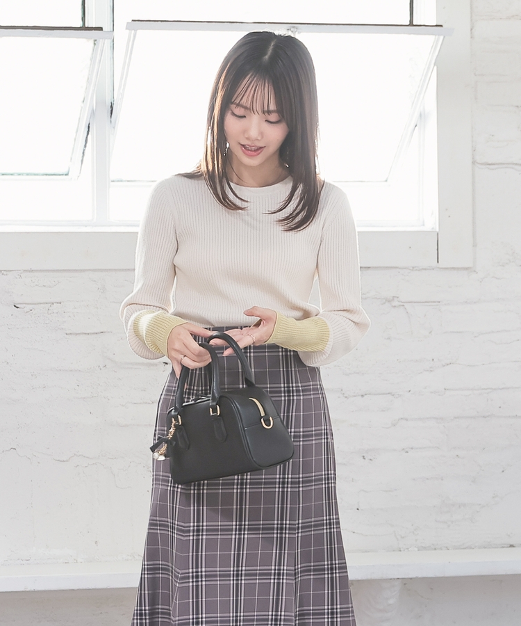 表面感のある細めリブの縦ラインと程よくフィットするシルエットで華奢見え効果も◎