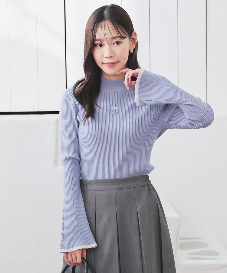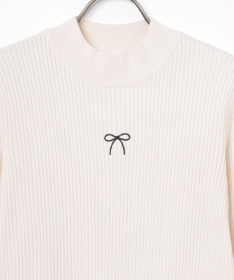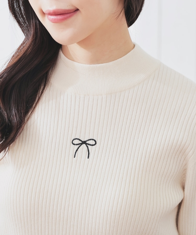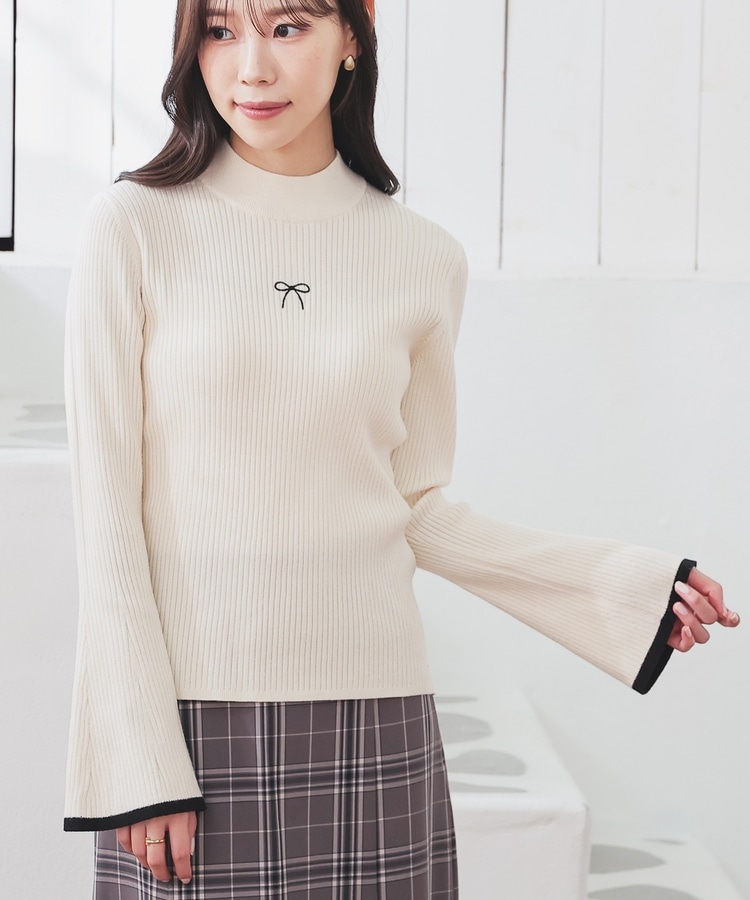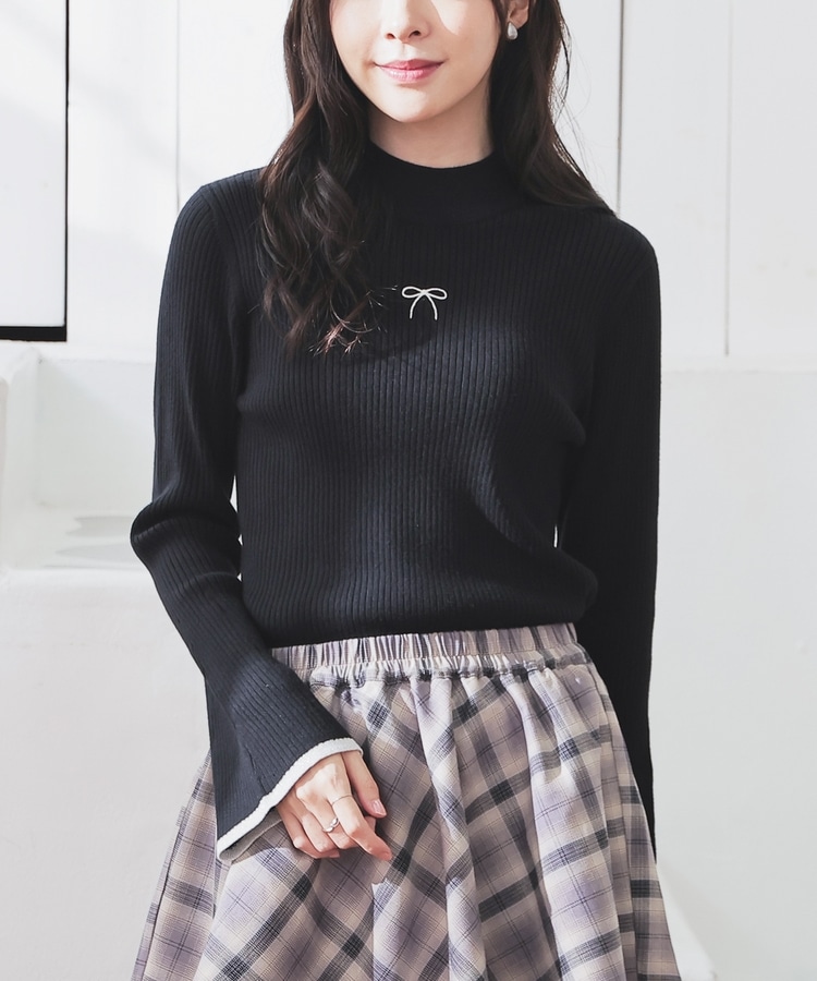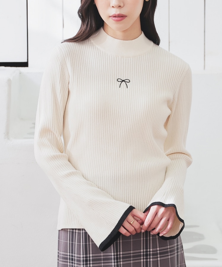 胸元のリボン刺繍と衿ぐり・袖口の配色ラインがおしゃれなアクセント。