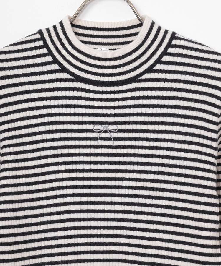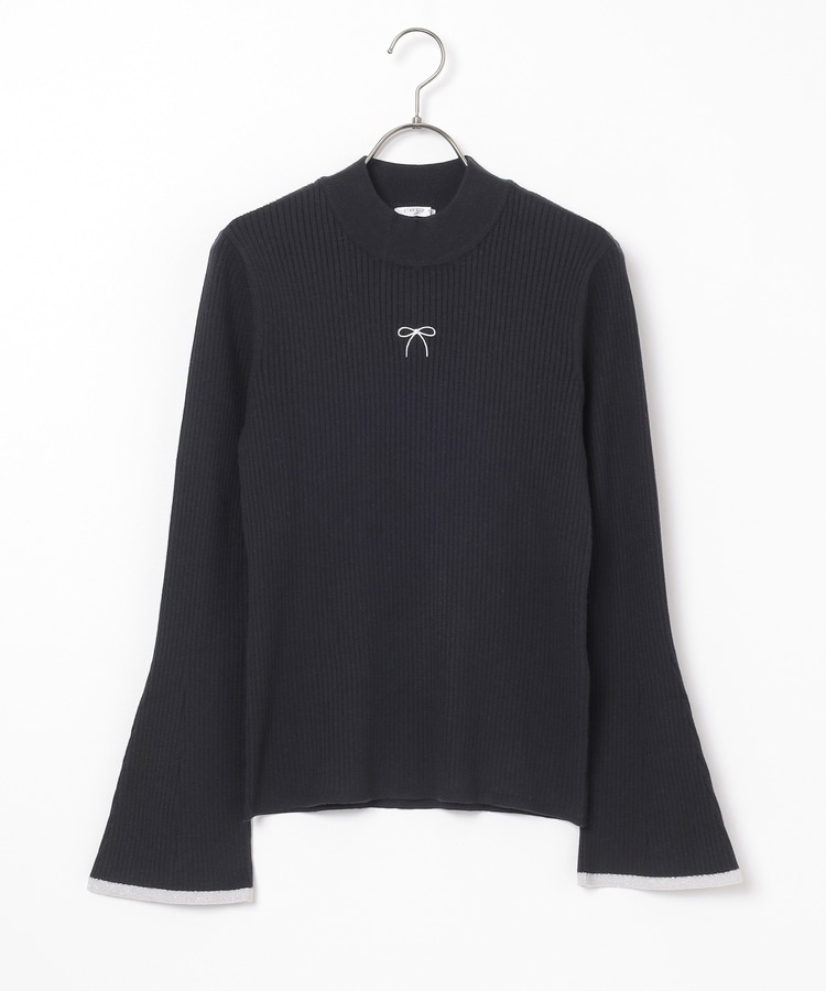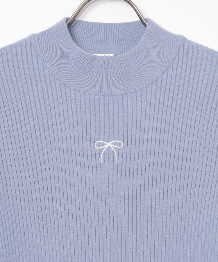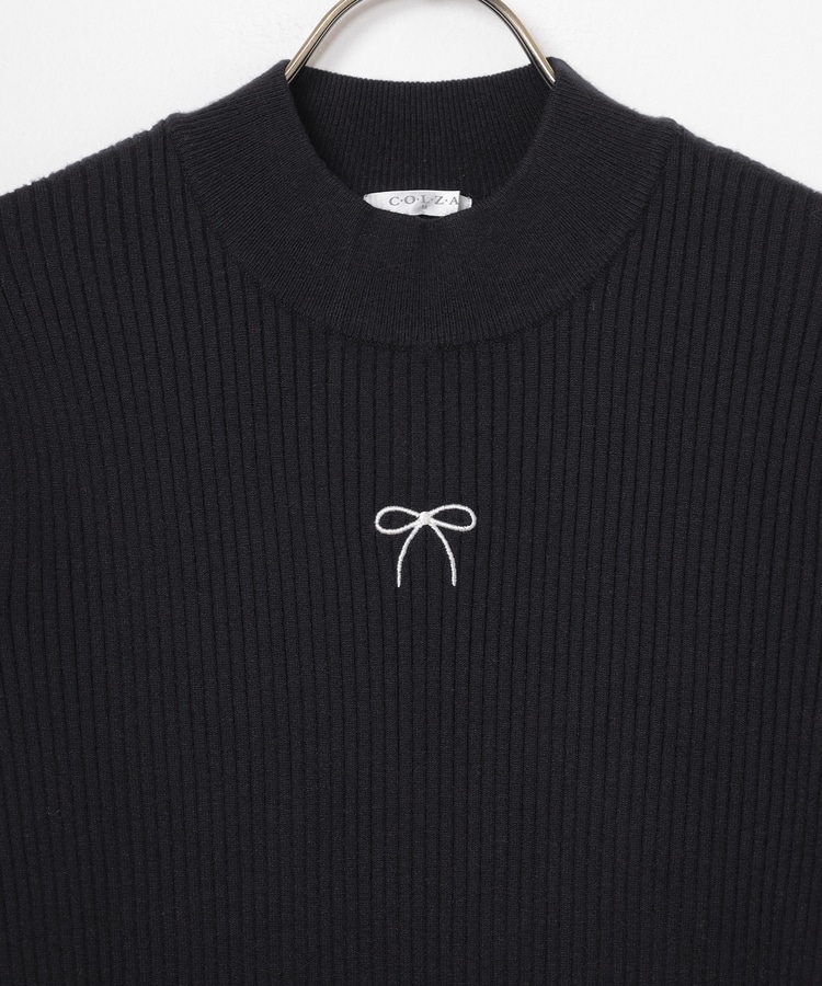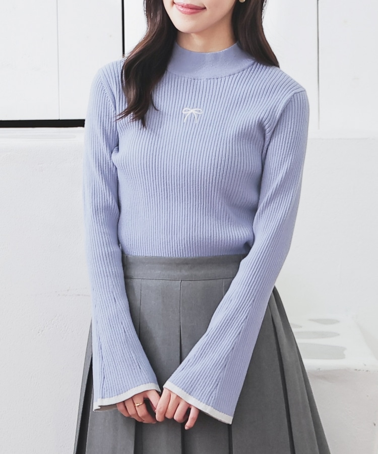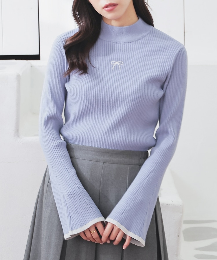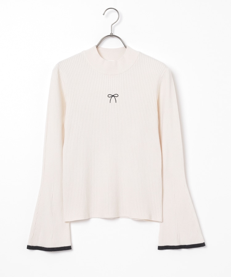 胸元のリボン刺繍と衿ぐり・袖口の配色ラインがおしゃれなアクセント。