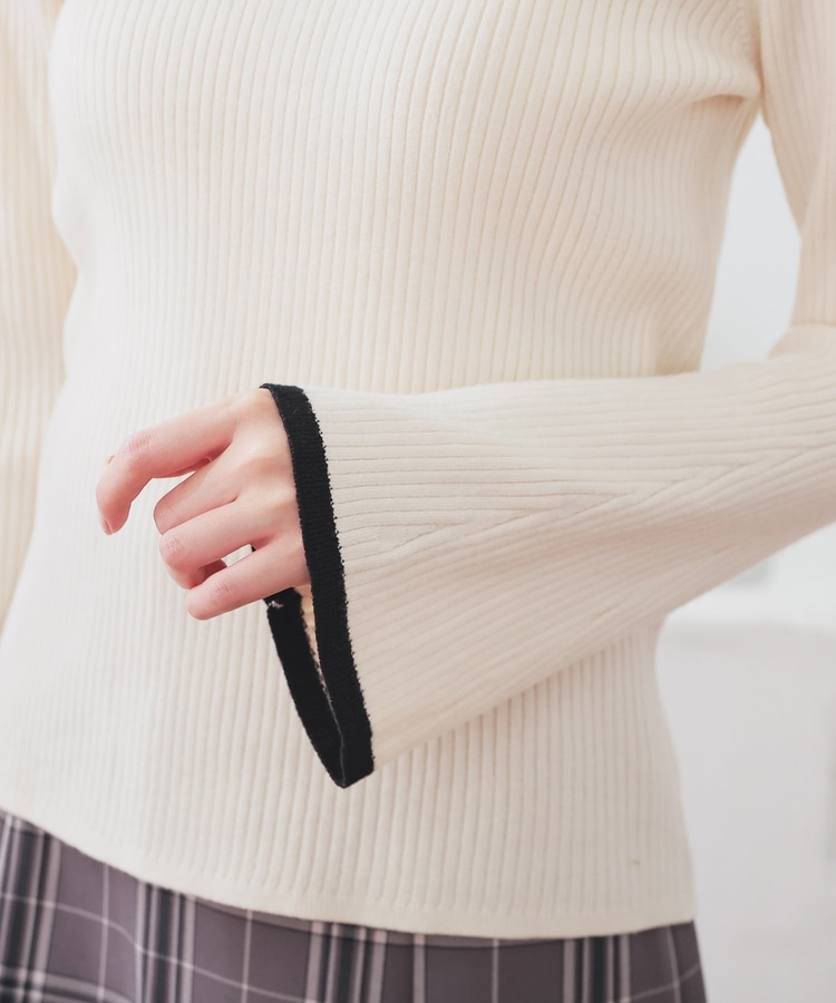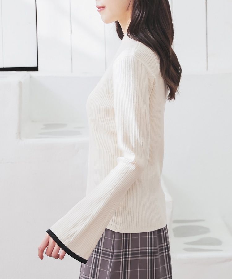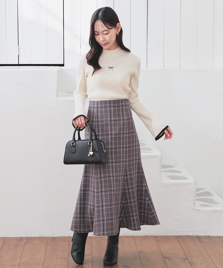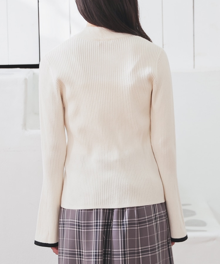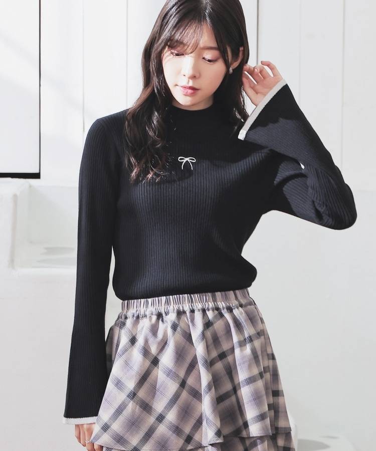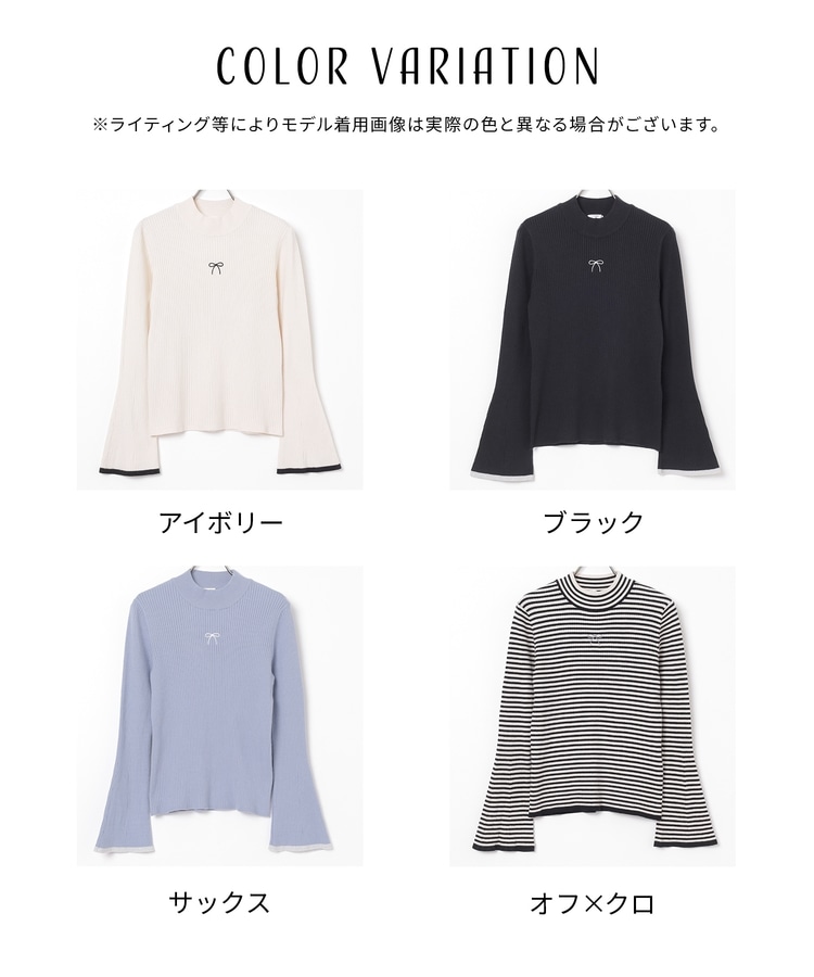 胸元のリボン刺繍と衿ぐり・袖口の配色ラインがおしゃれなアクセント。