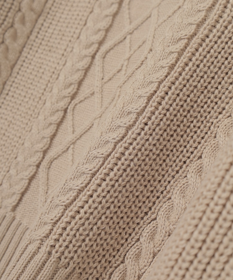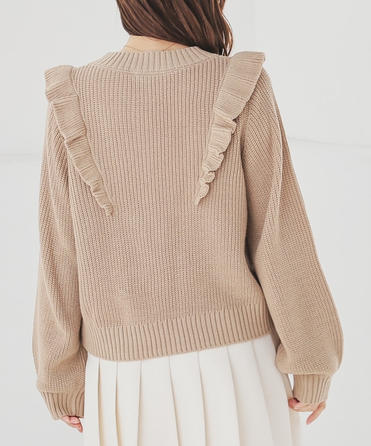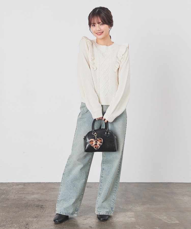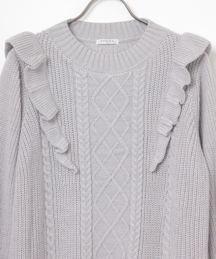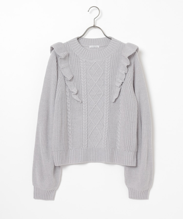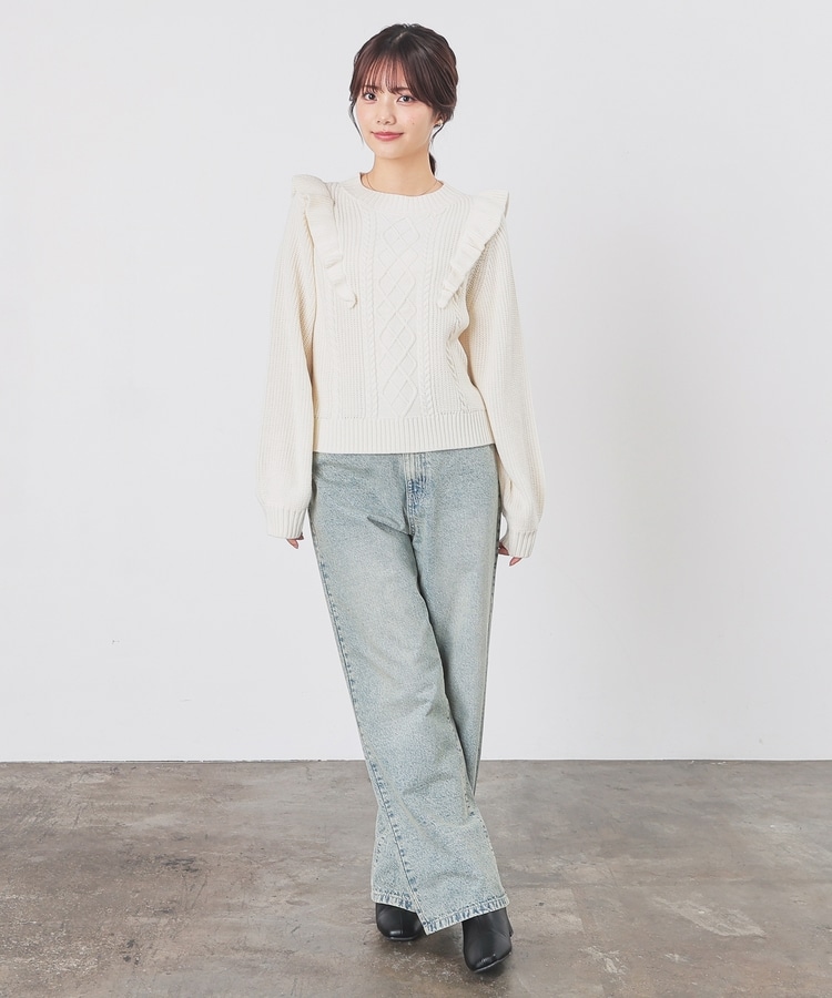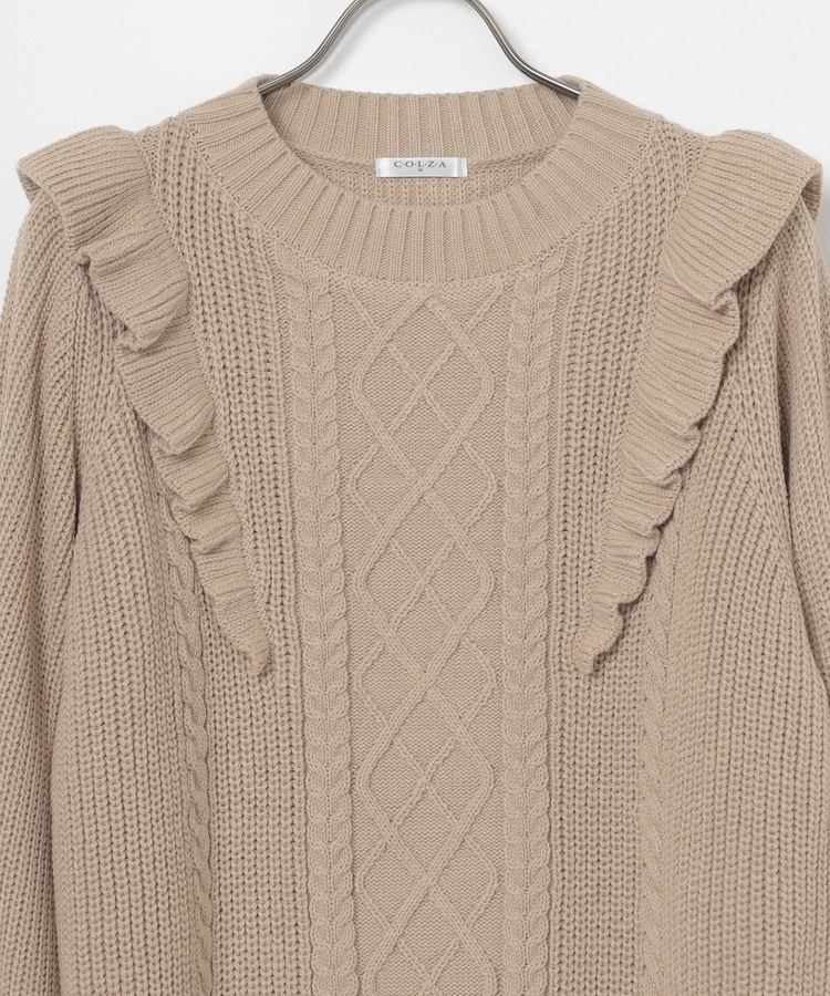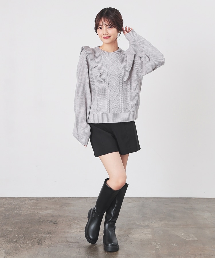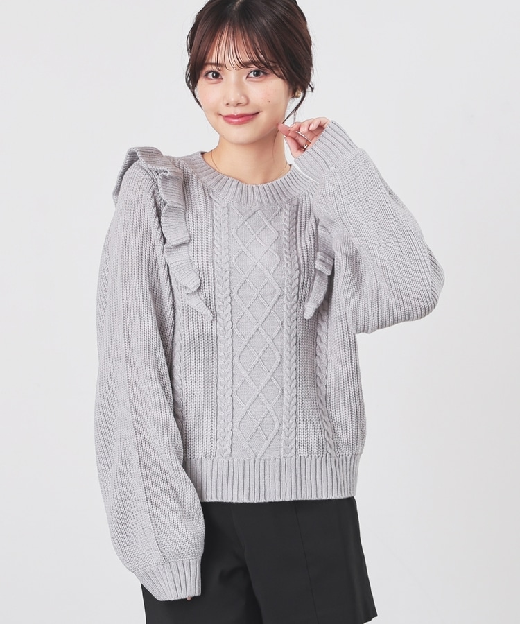 1枚で存在感のある、縦フリル×ケーブル編みのキュートなデザイン。