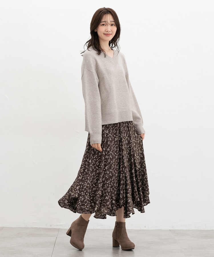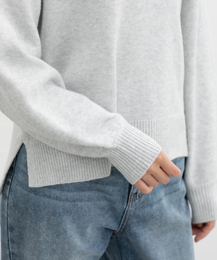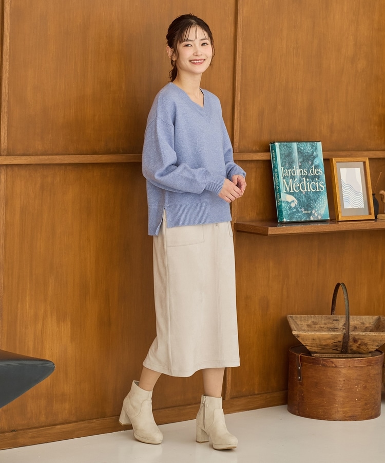 ゆったりめの幅と腰回りが隠れる丈感に、サイドスリット入りの前後差ヘムで抜け感のある着こなしに。