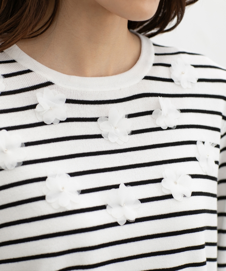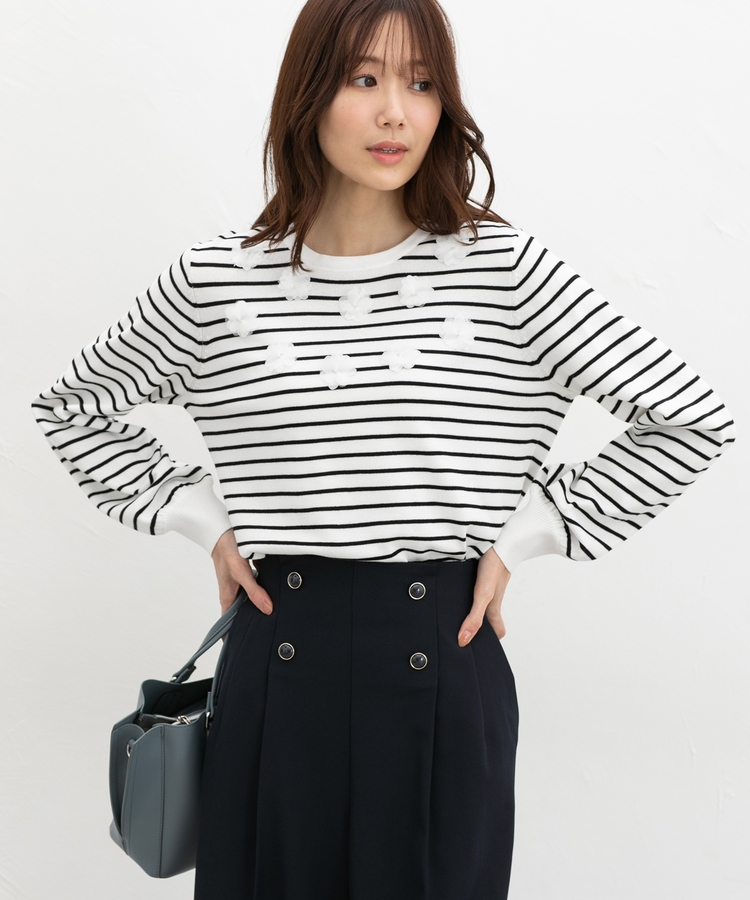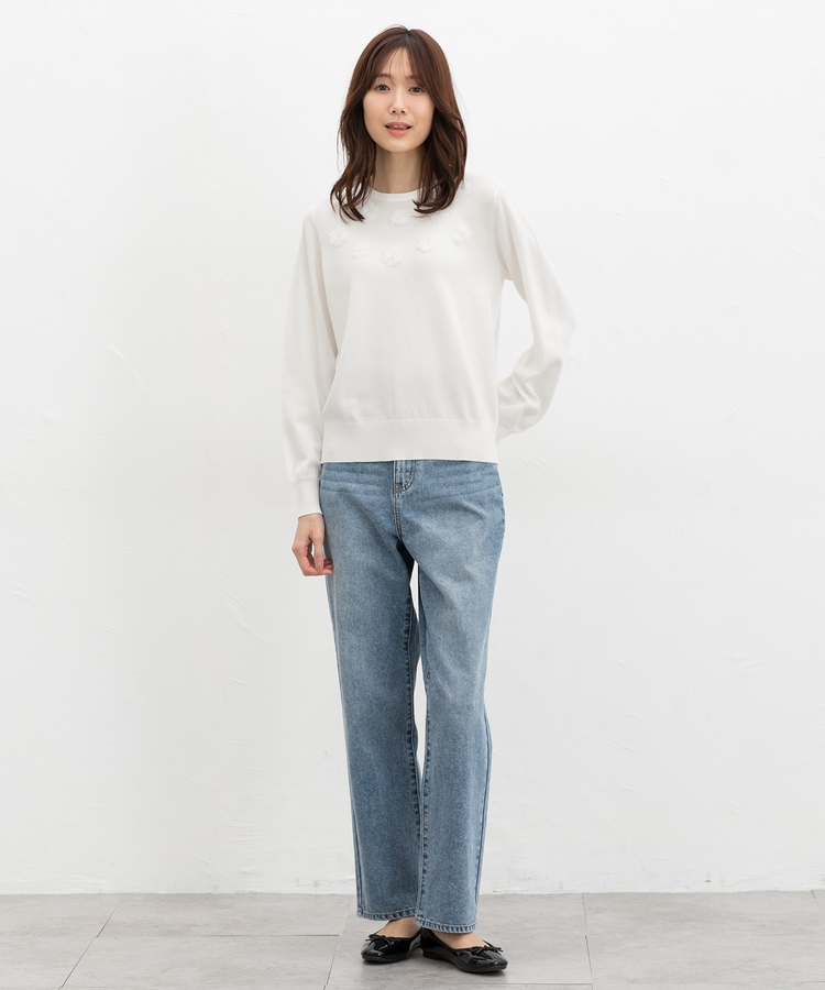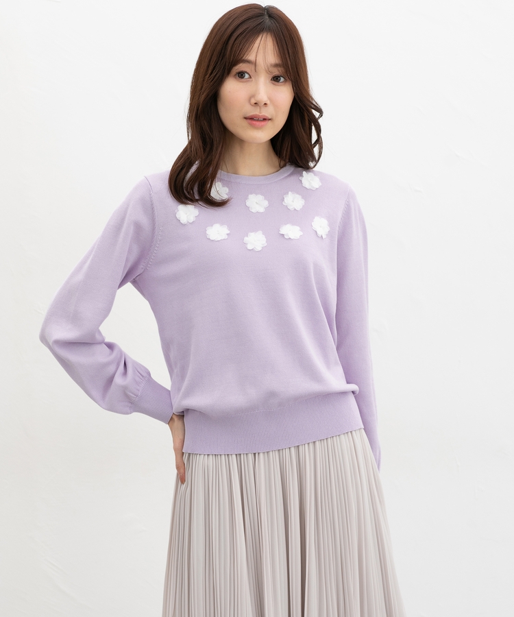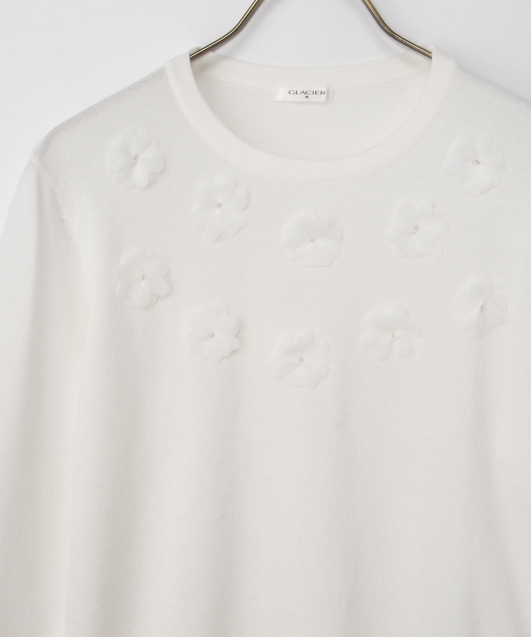 立体感のあるフラワーモチーフが高見えする、1枚でコーデが決まるデザイン。