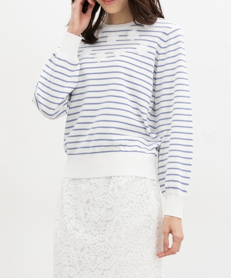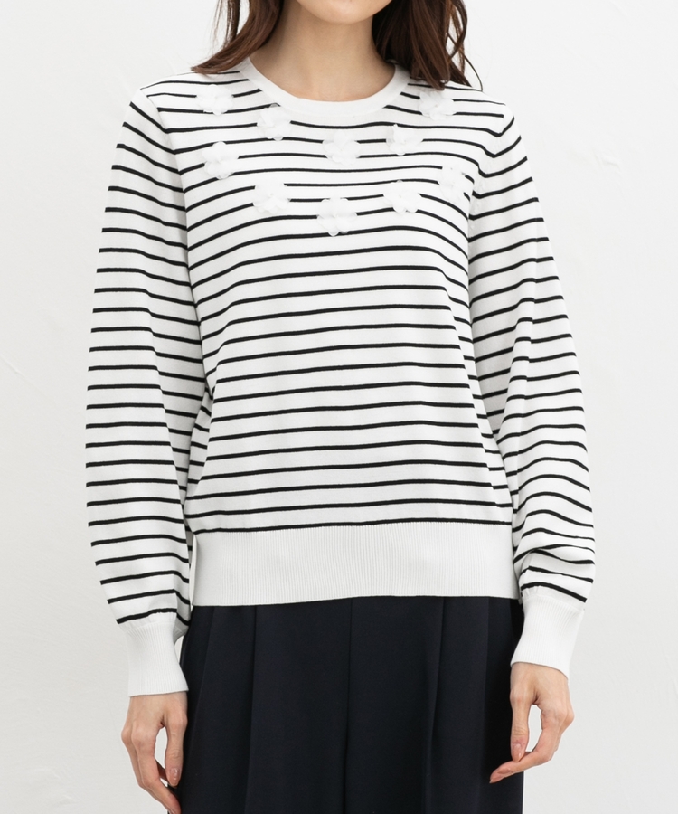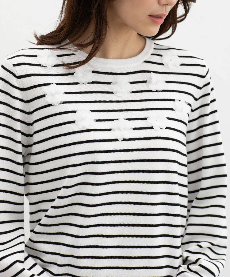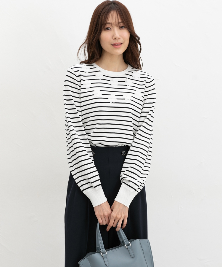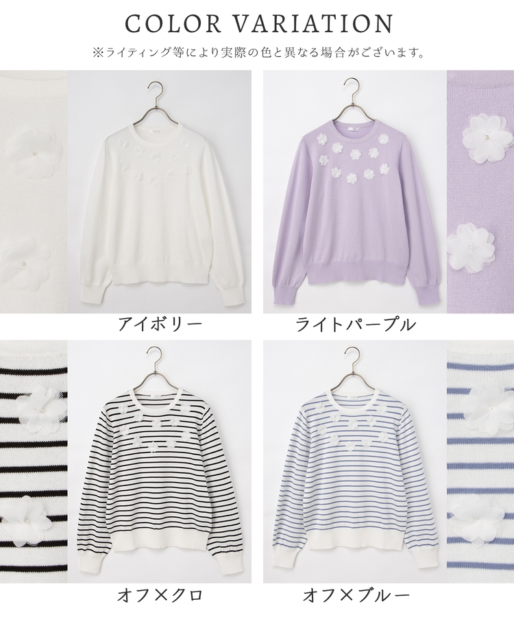 立体感のあるフラワーモチーフが高見えする、1枚でコーデが決まるデザイン。