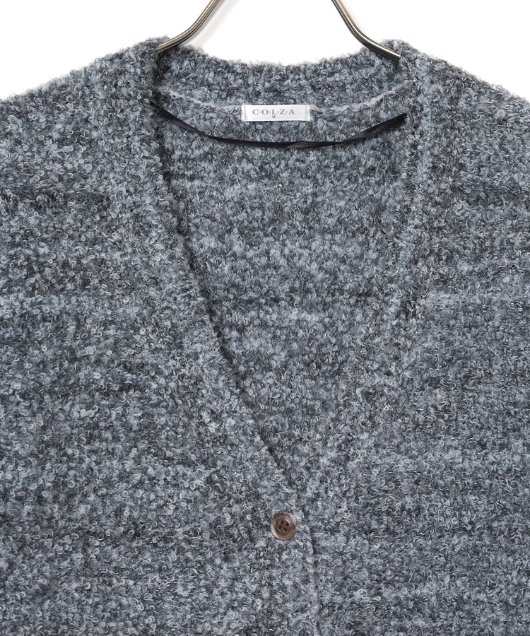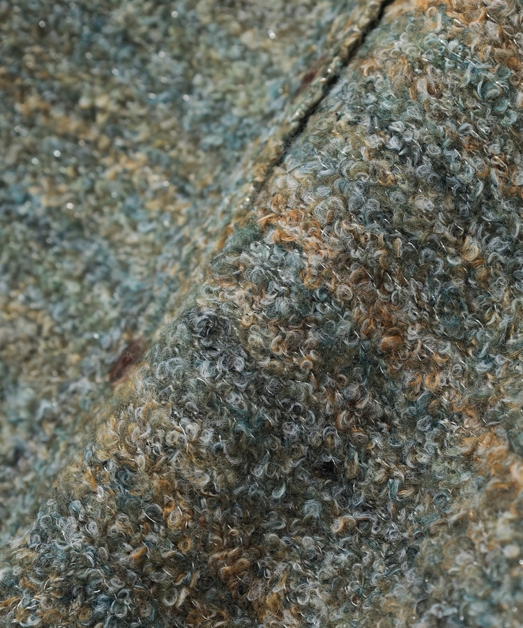 環境に優しい再生ポリエステルを使用した、ふんわりもこもこな手触りで暖かく愛らしさのある、ウール混のブークレニット素材。