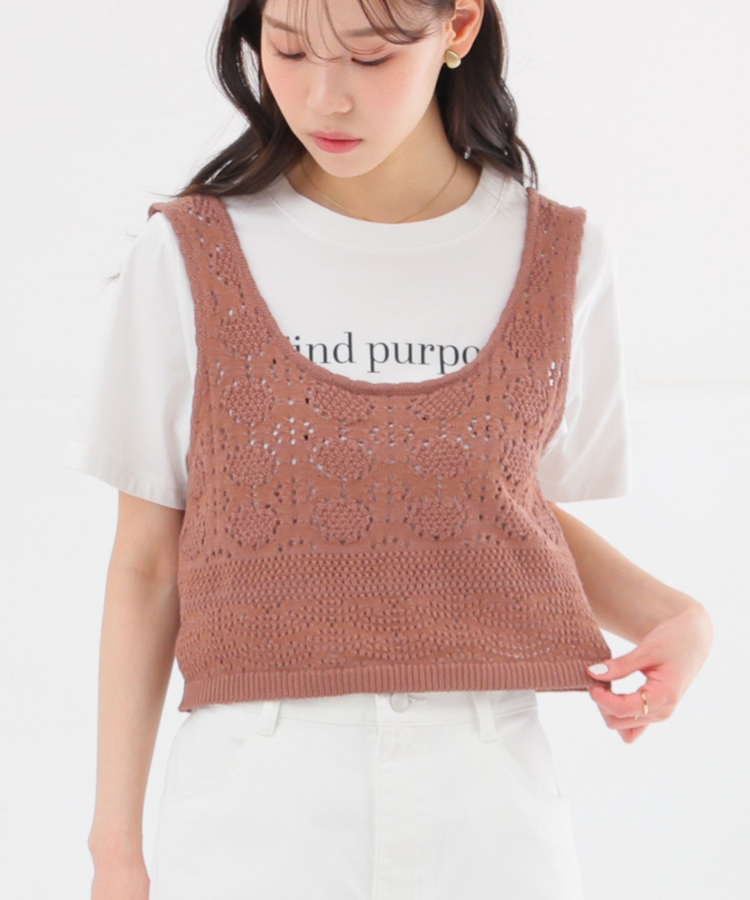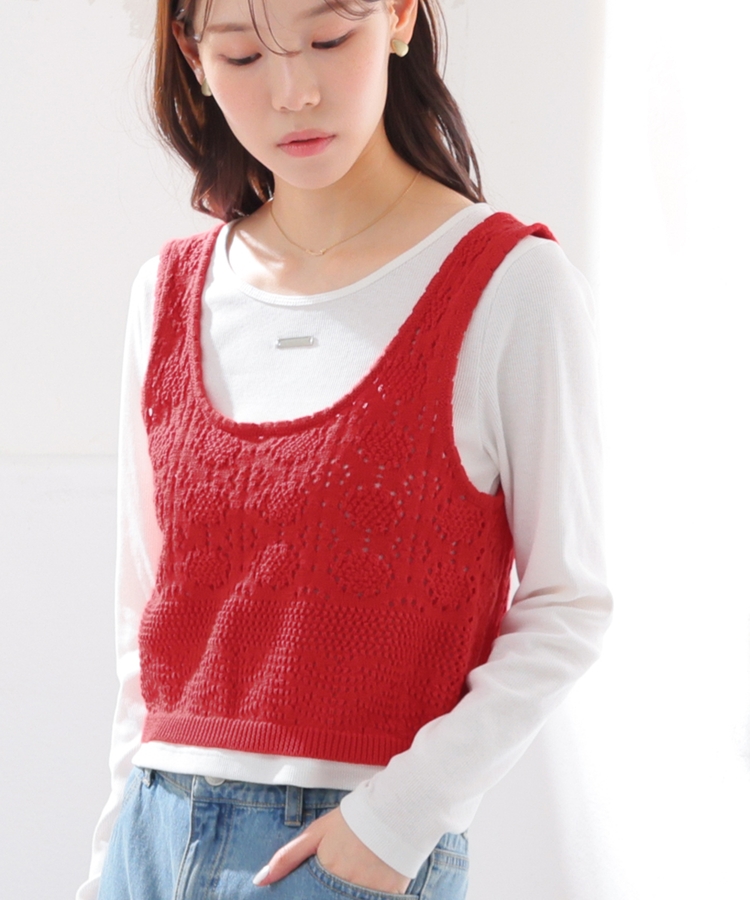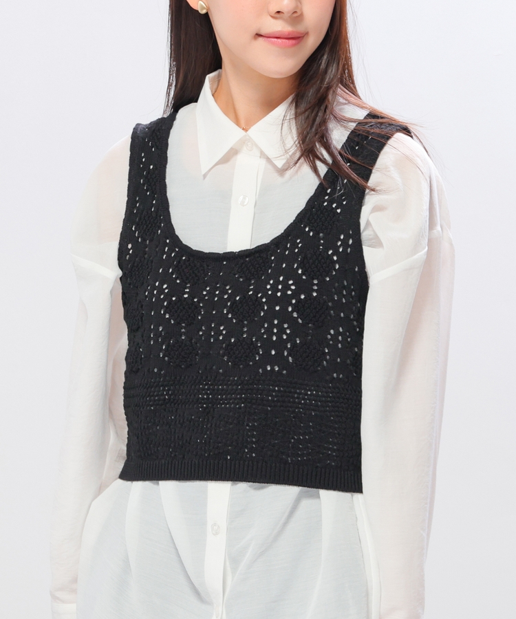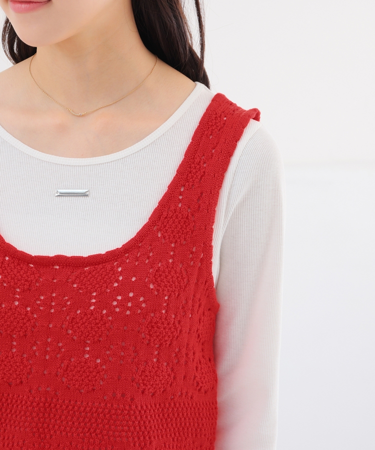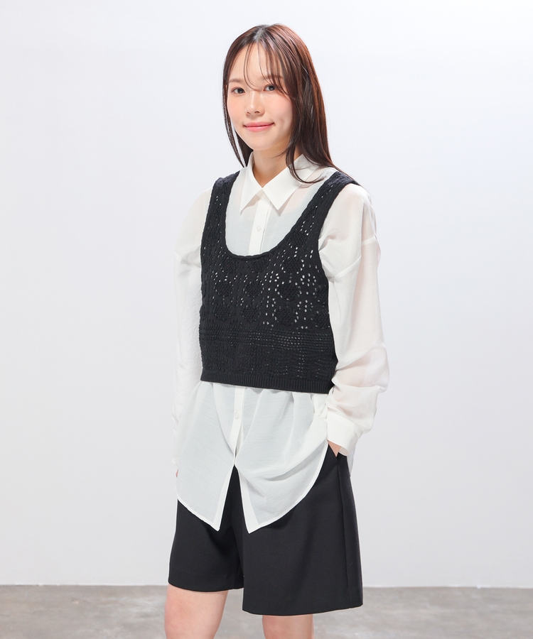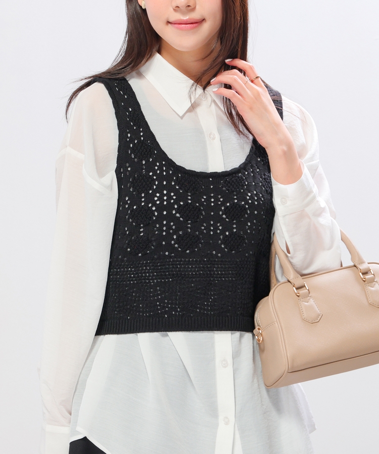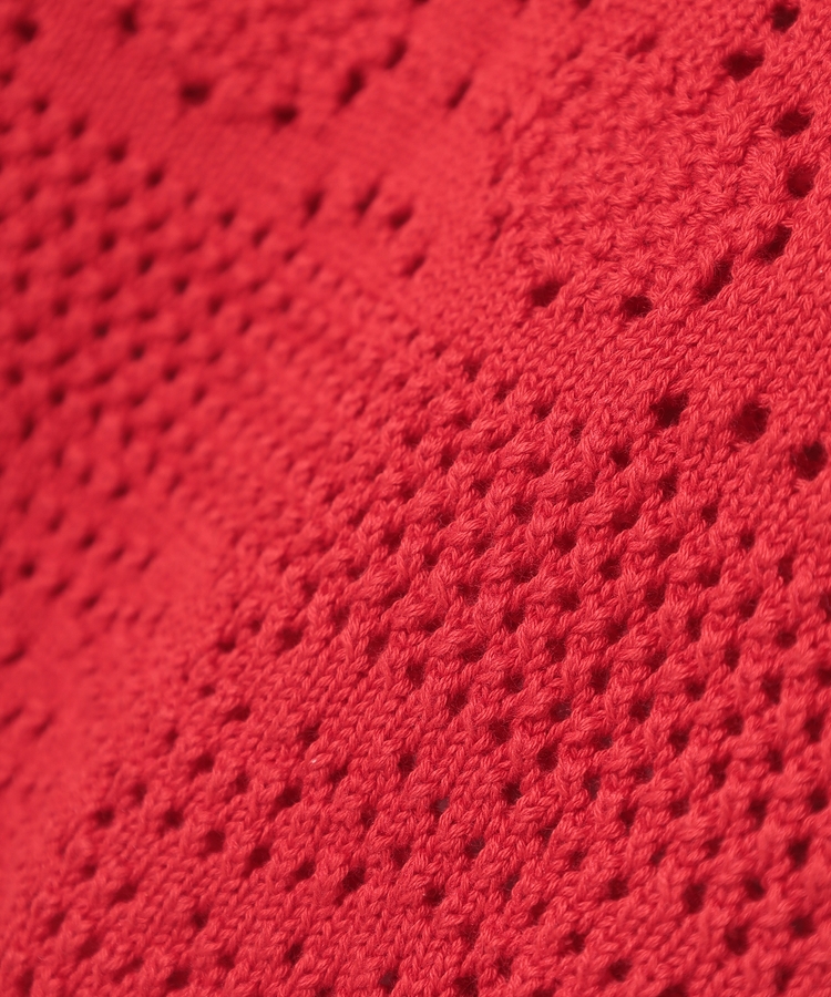 コンパクトなシルエットですっきりと着こなせる、涼しげな透かし編みデザイン。
