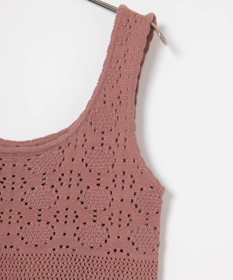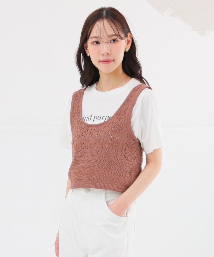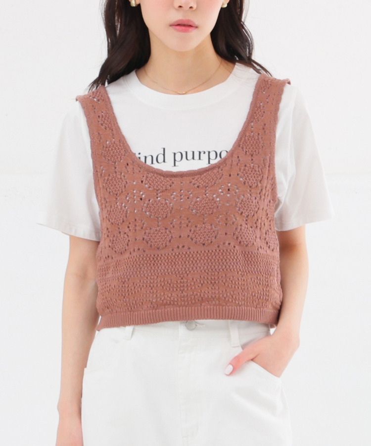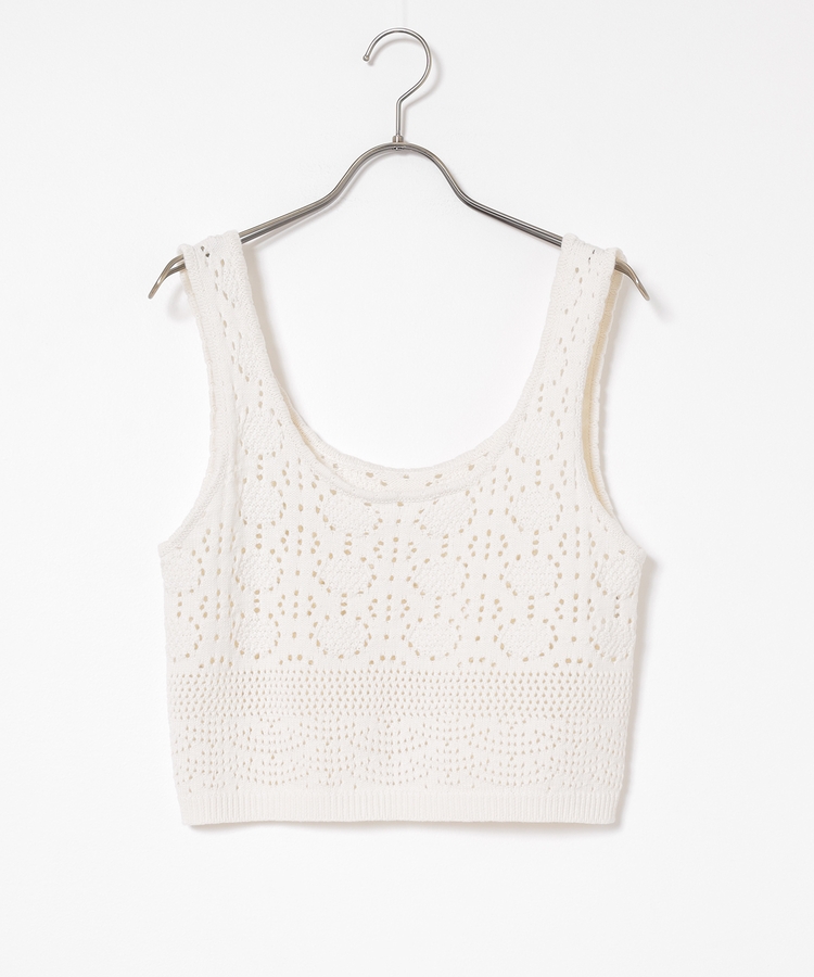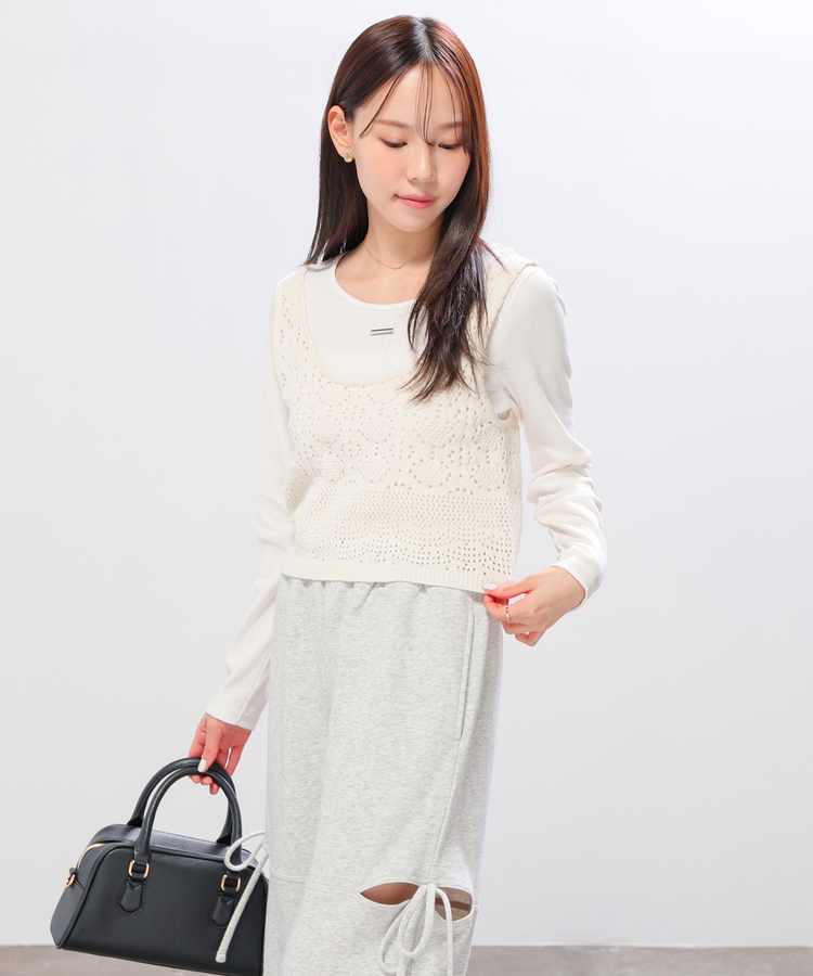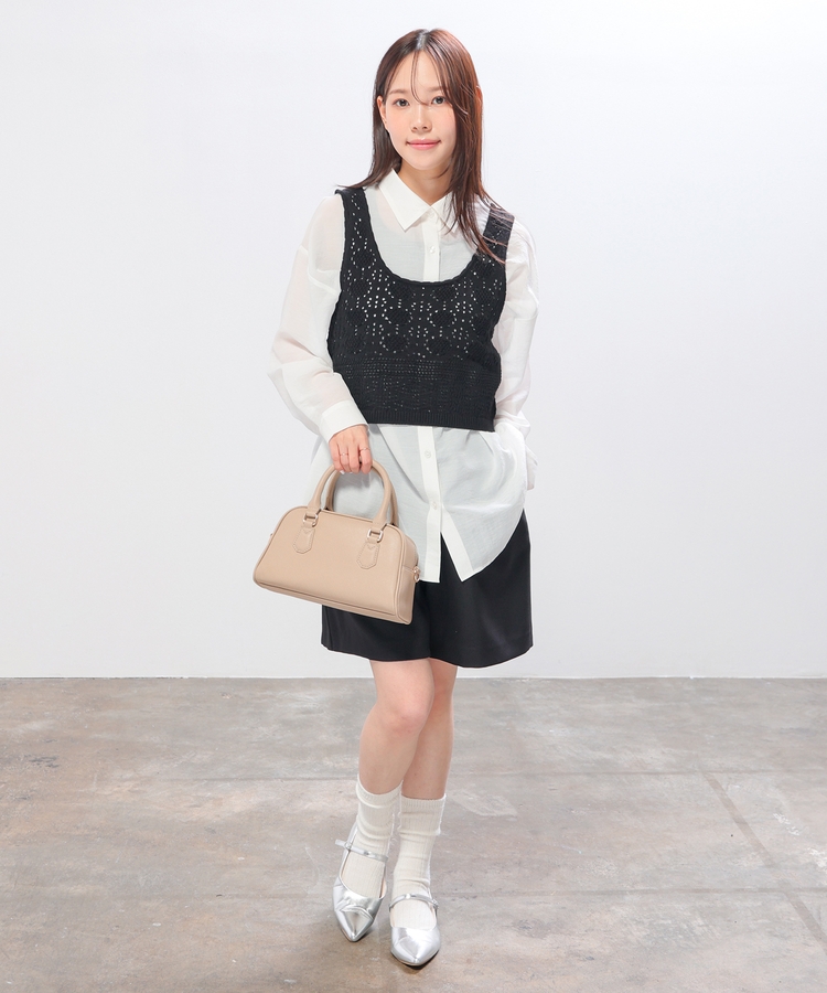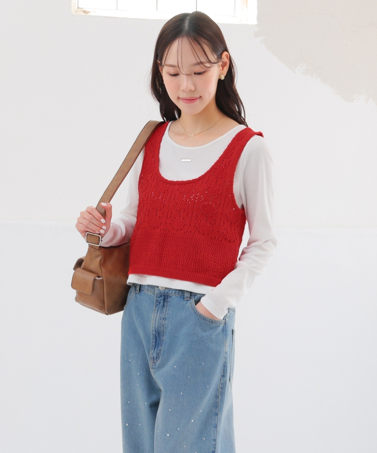 コンパクトなシルエットですっきりと着こなせる、涼しげな透かし編みデザイン。