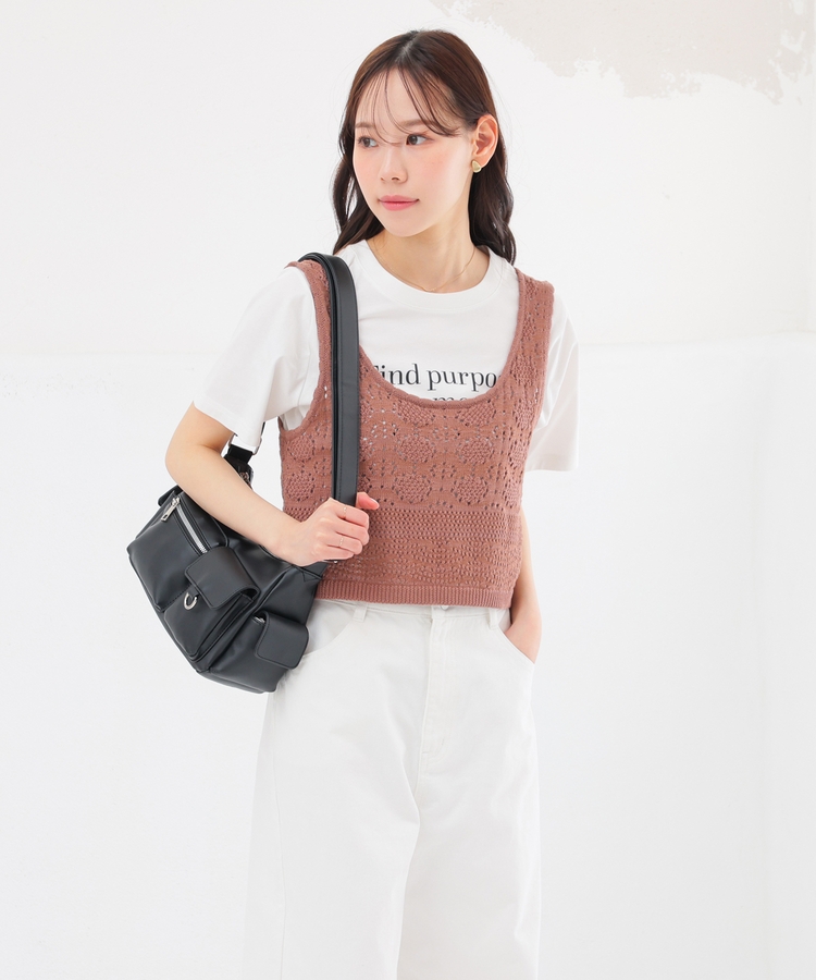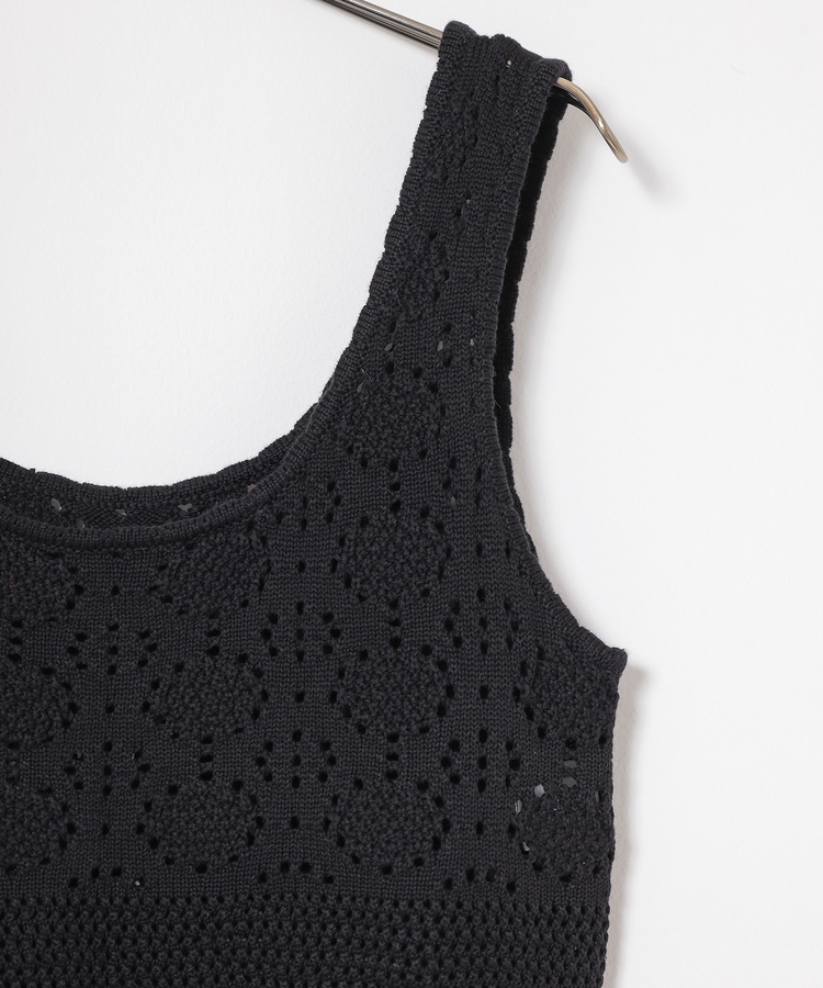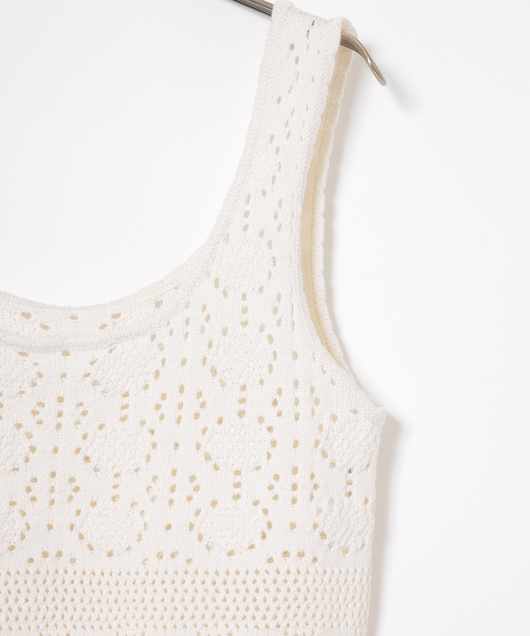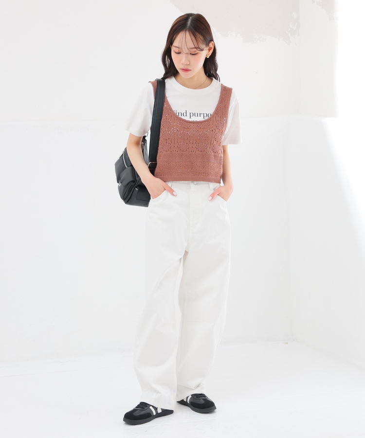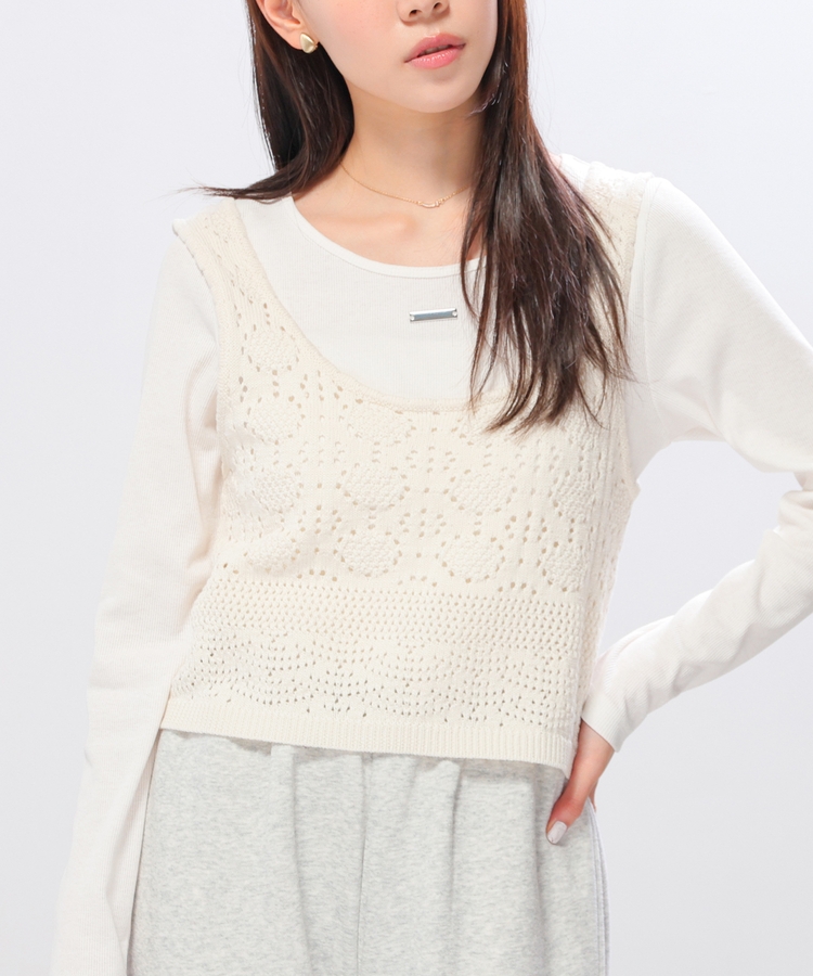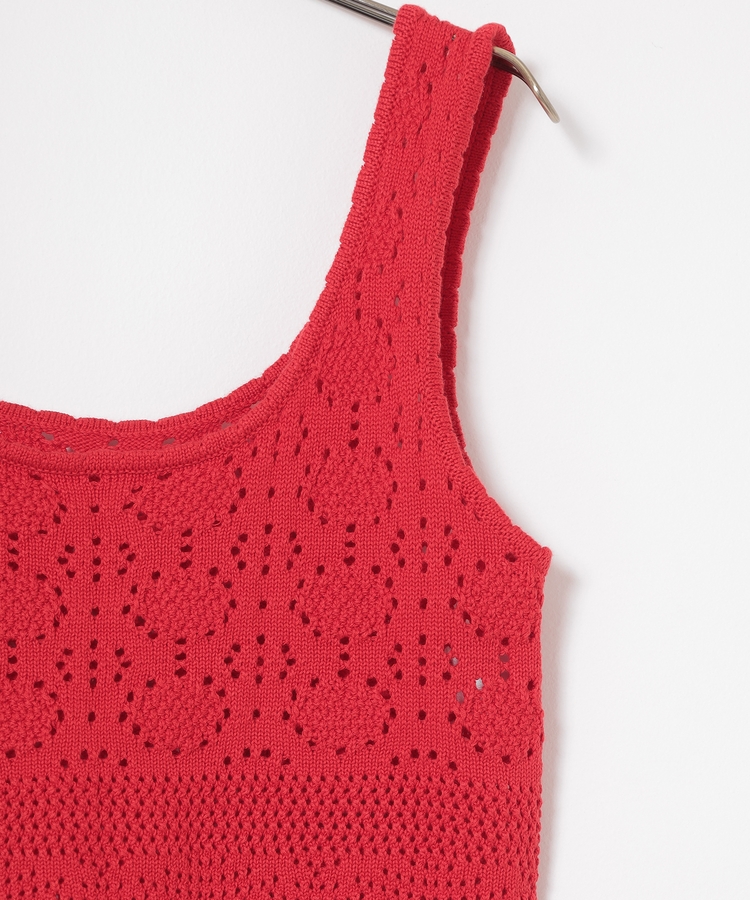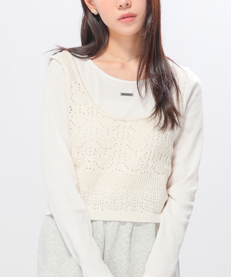 コンパクトなシルエットですっきりと着こなせる、涼しげな透かし編みデザイン。