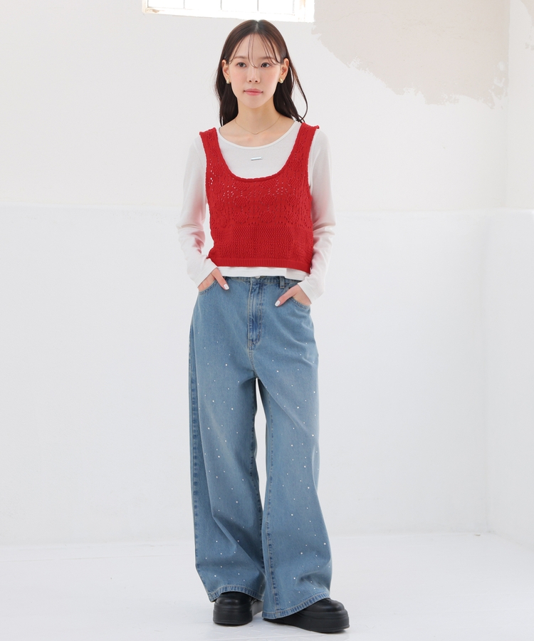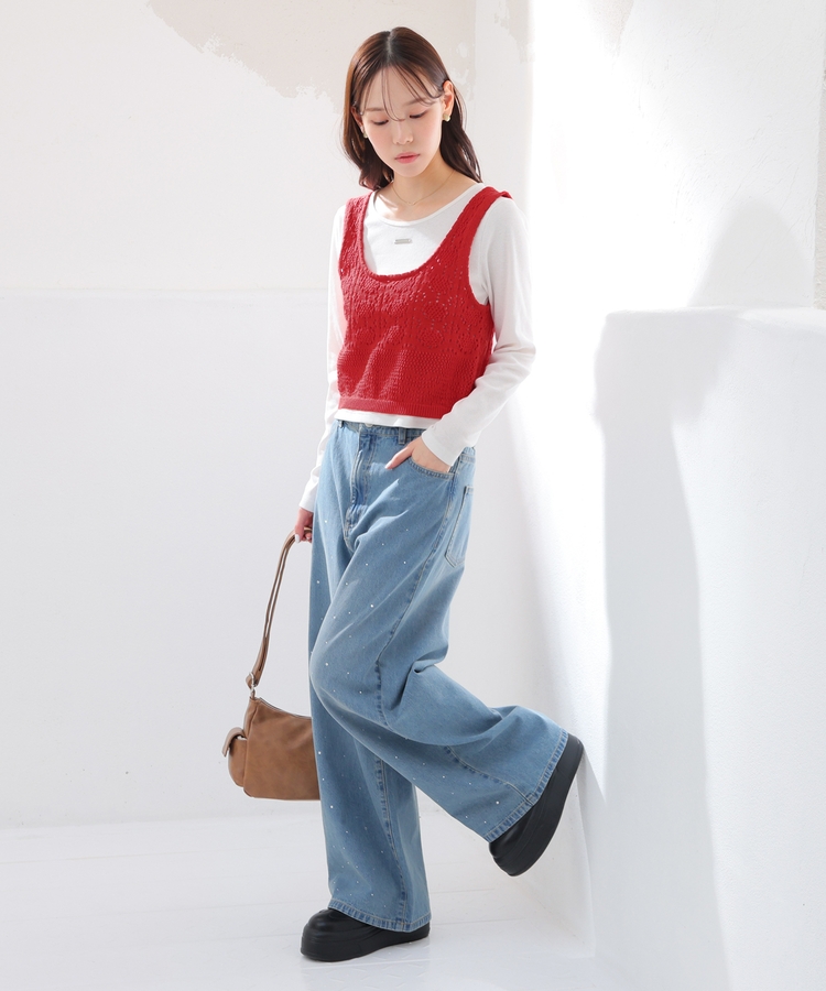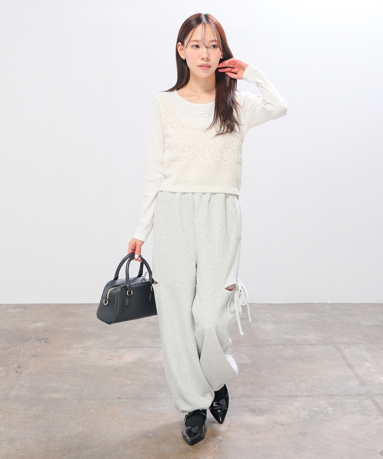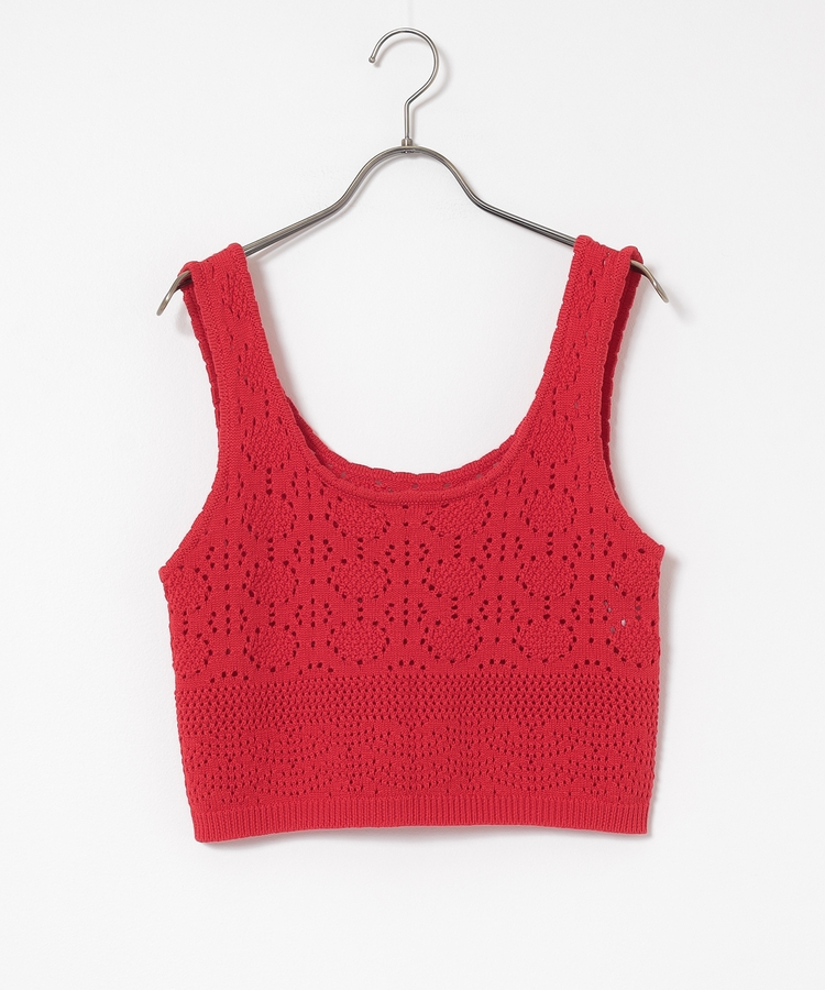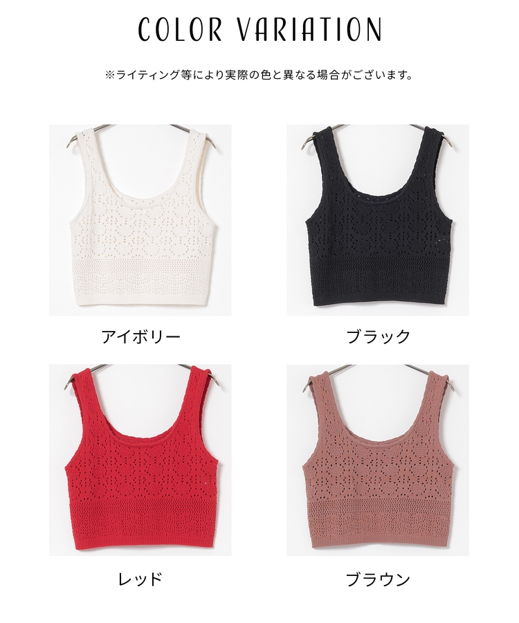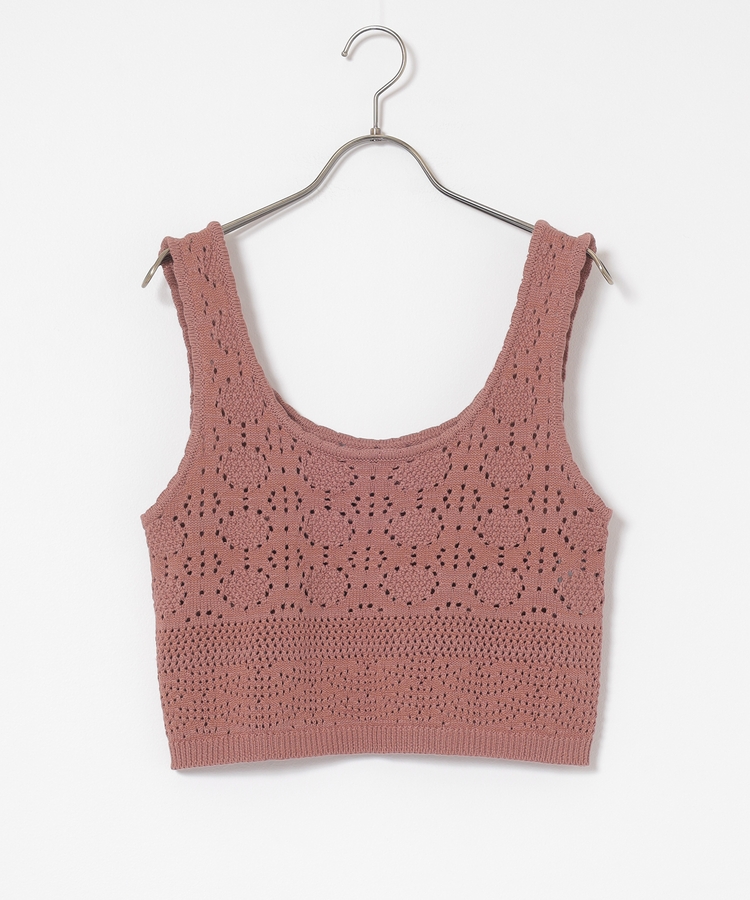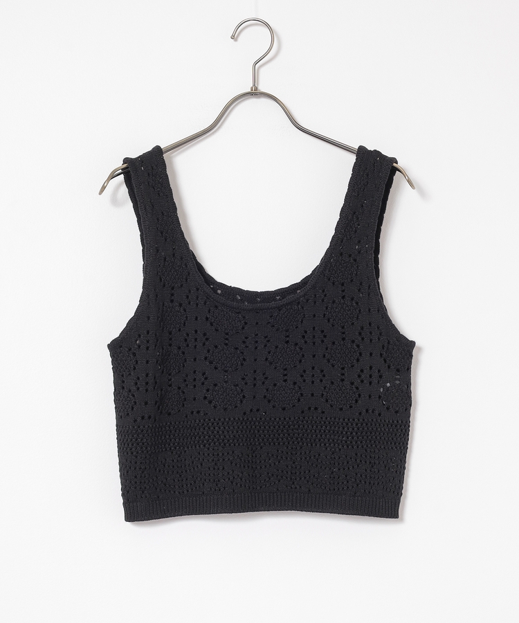 コンパクトなシルエットですっきりと着こなせる、涼しげな透かし編みデザイン。