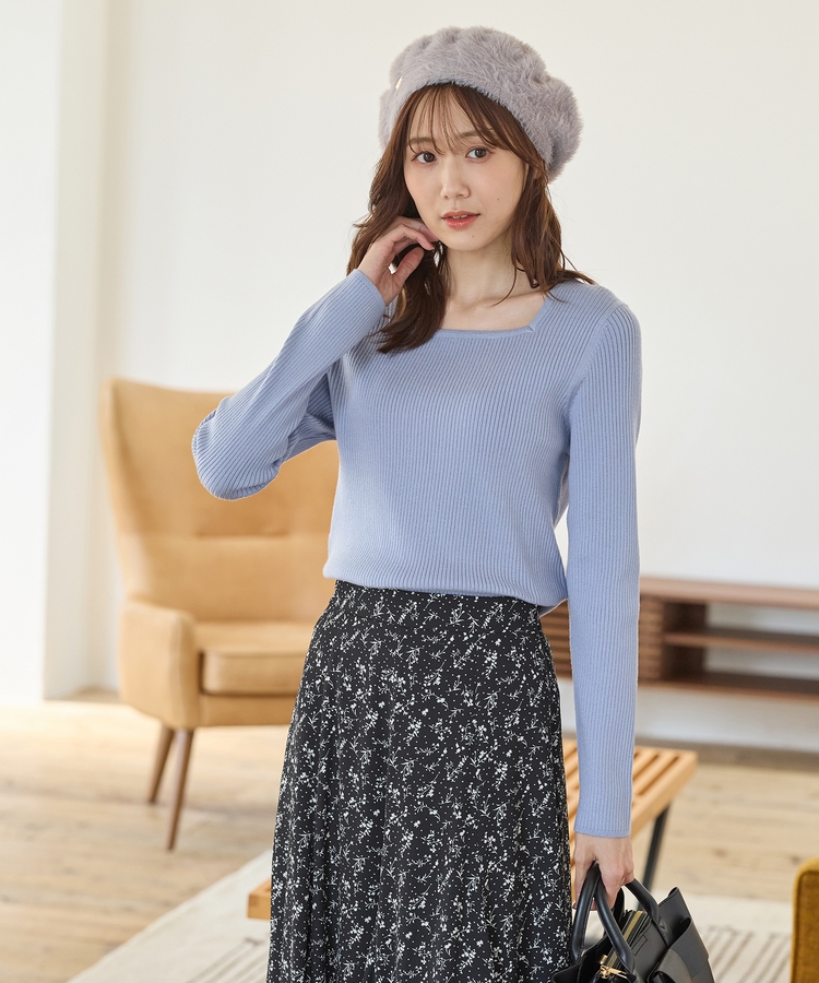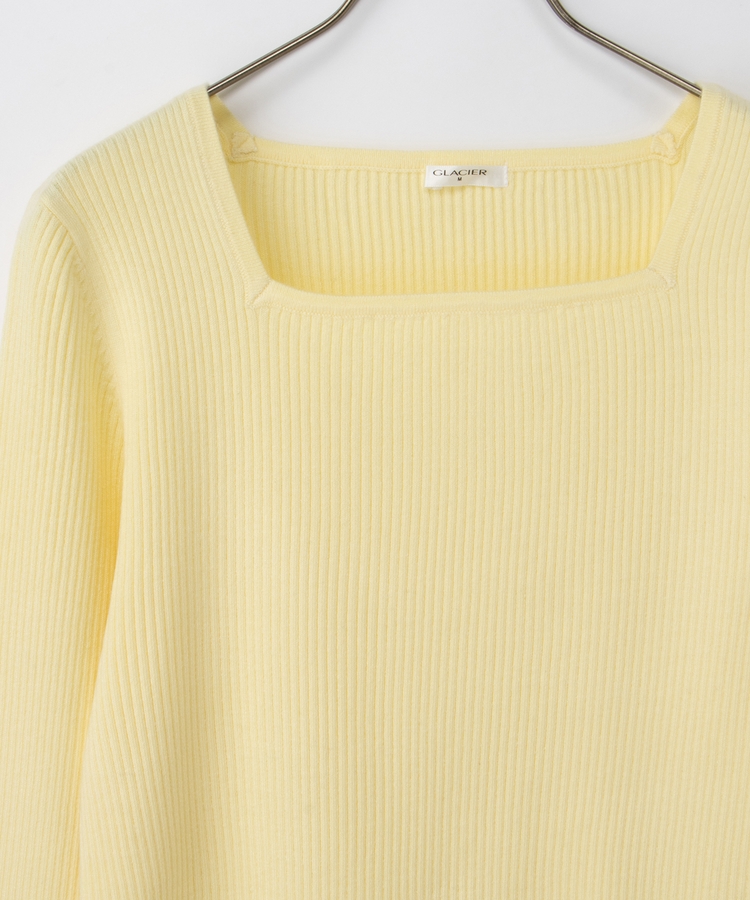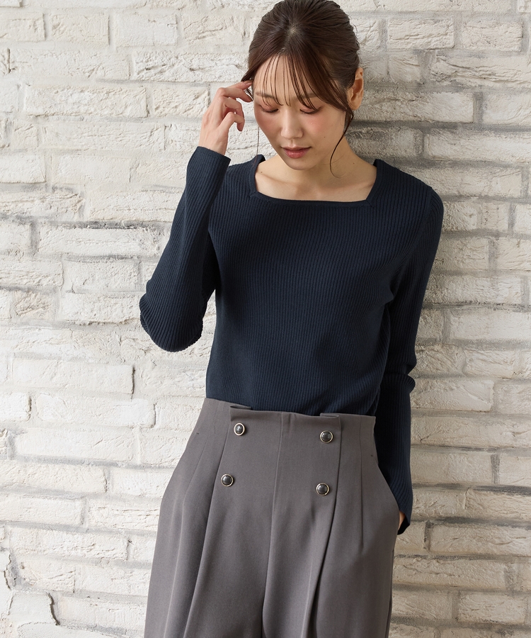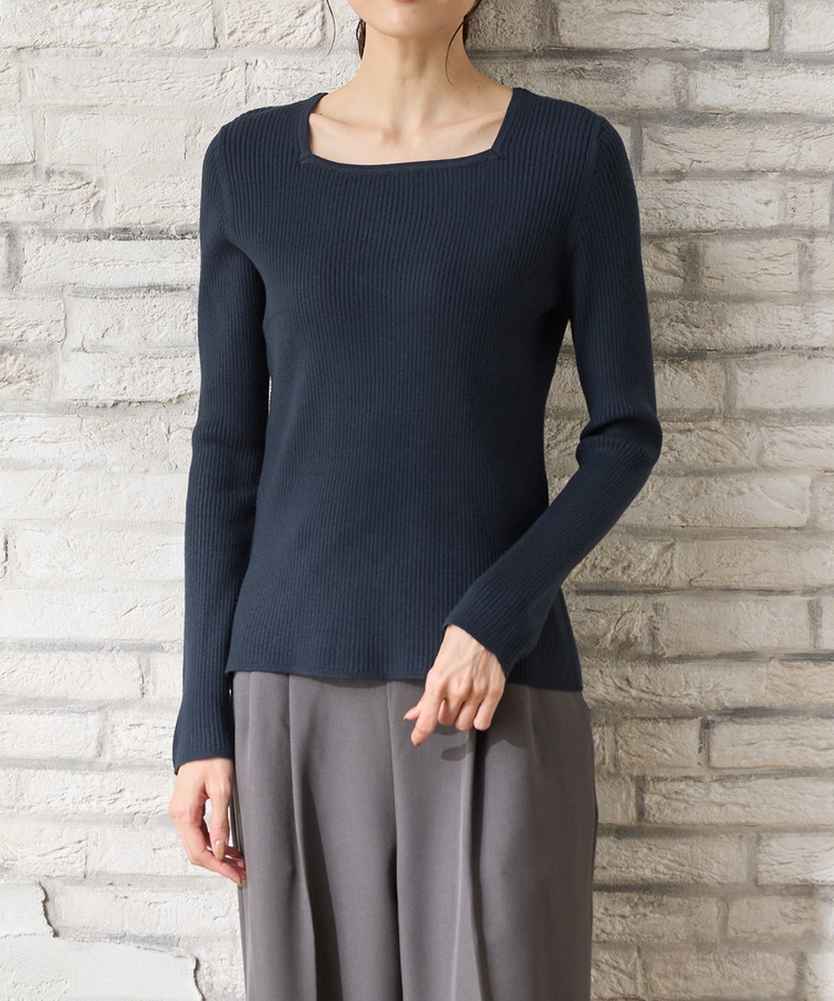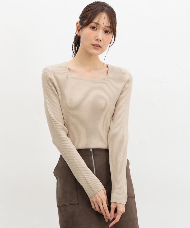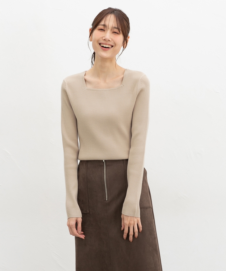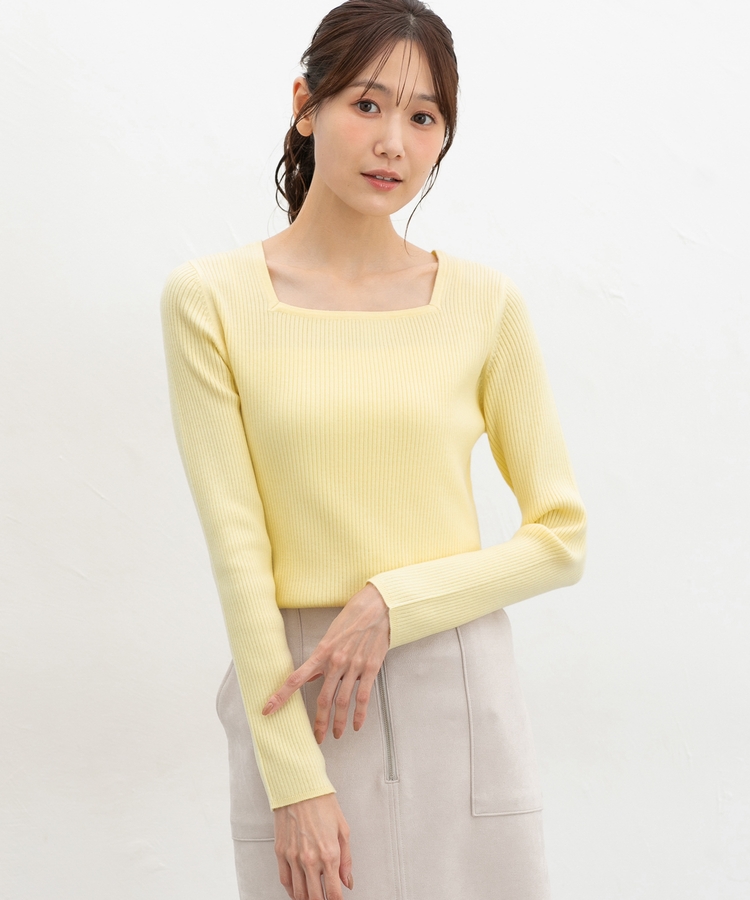 デコルテを華奢に見せて上品な印象のスクエアネックデザイン。